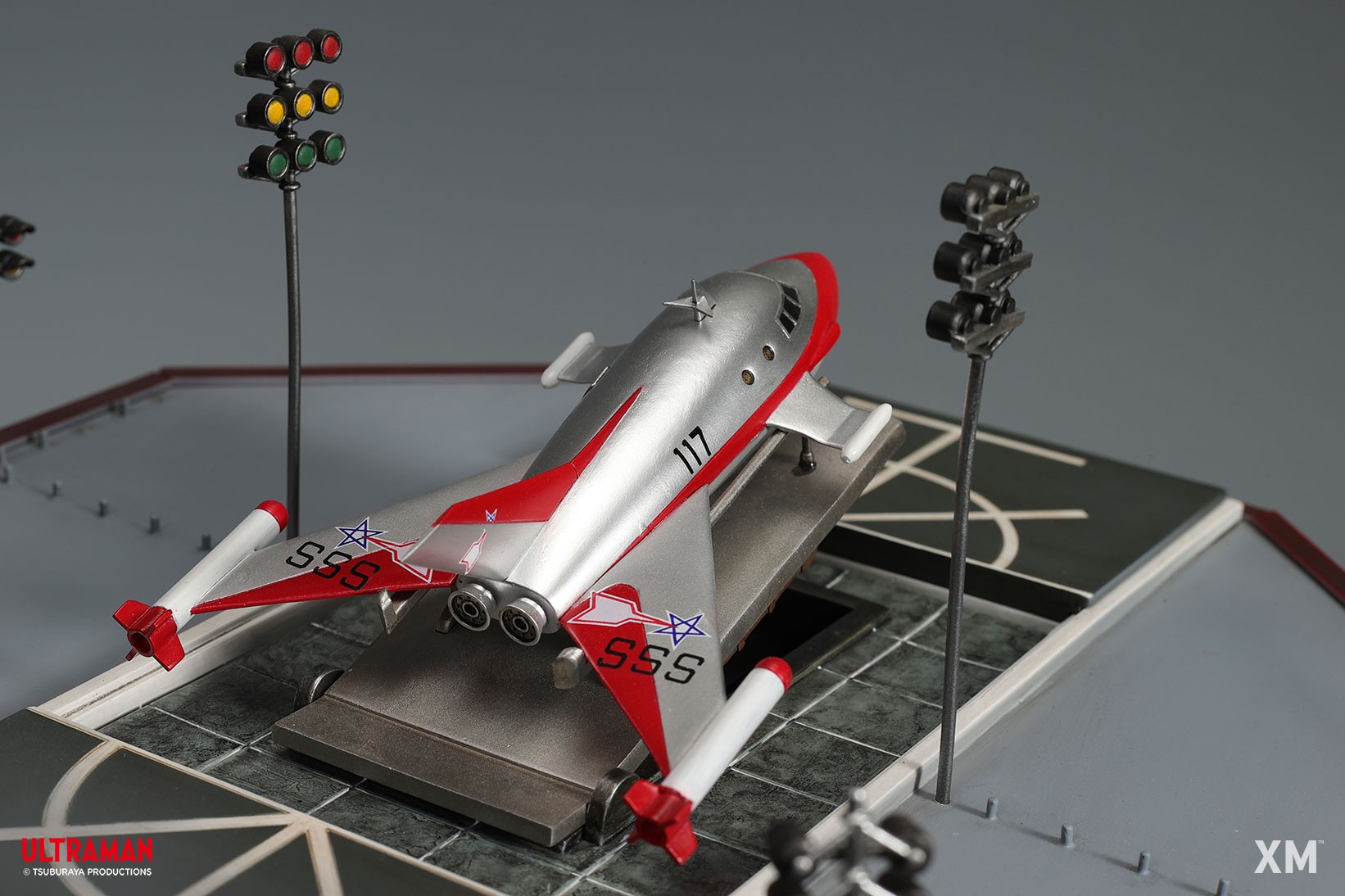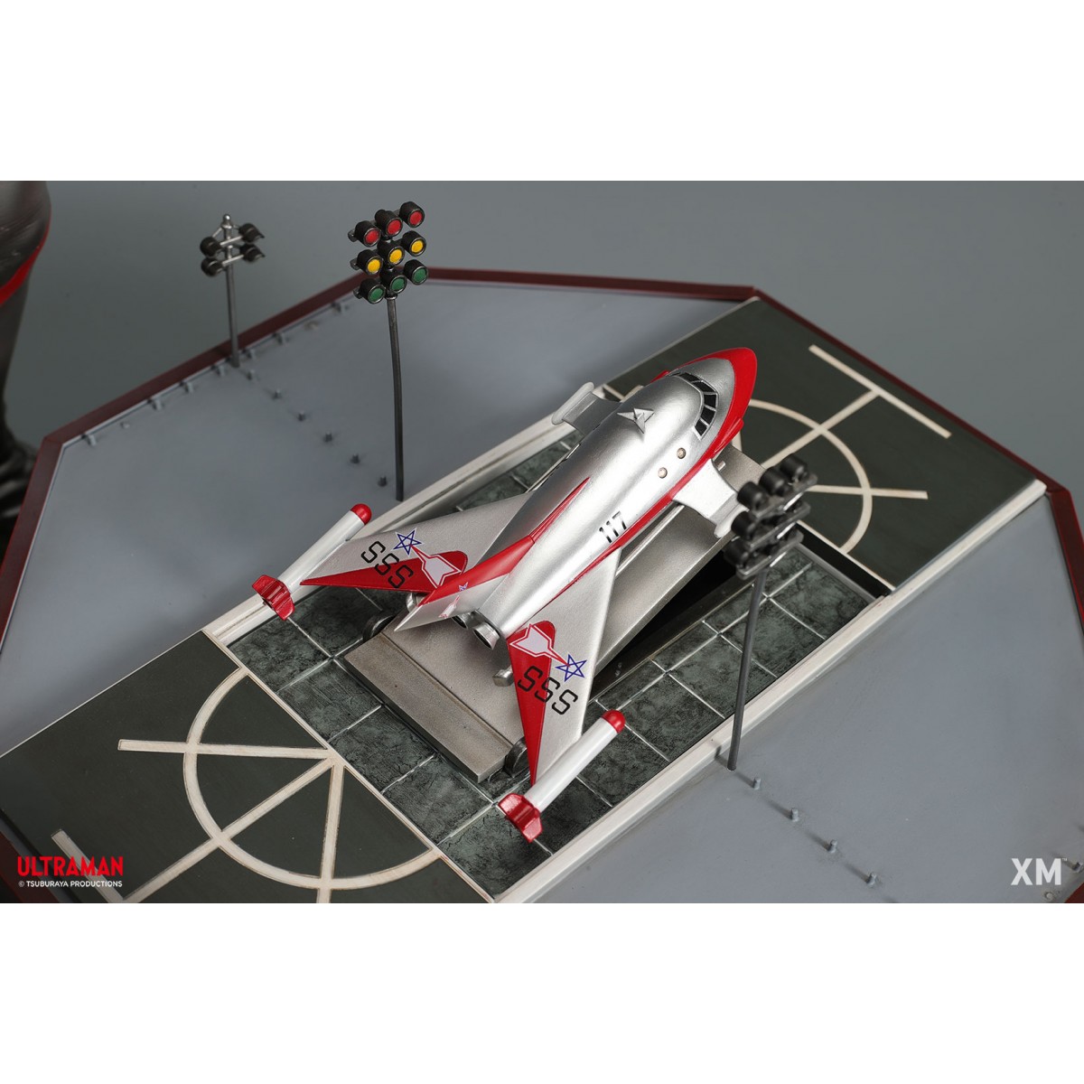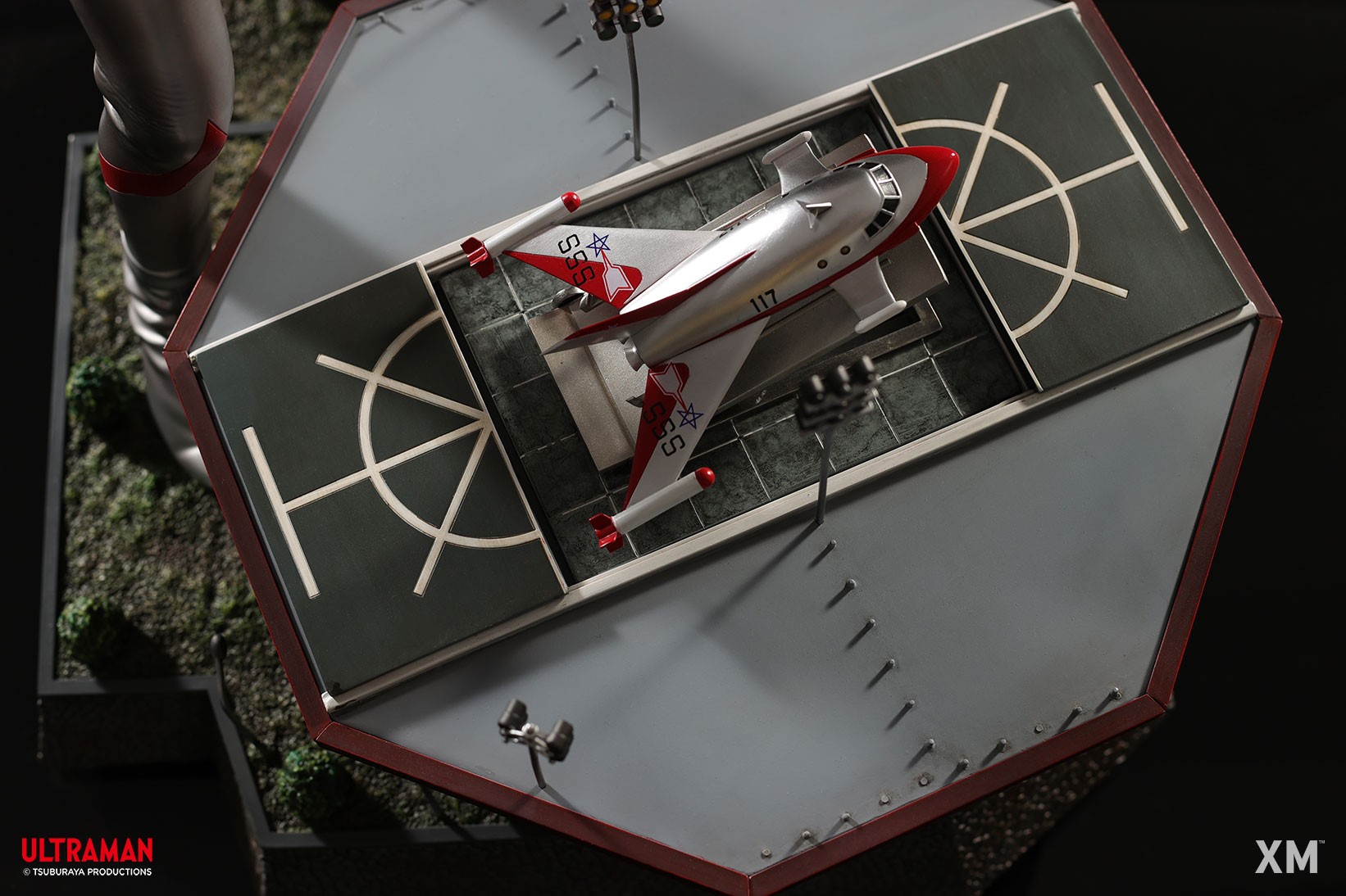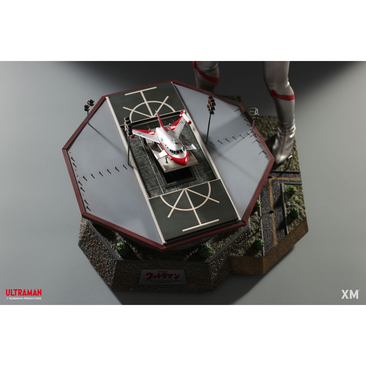 Highly detailed sculpt featuring Ultraman standing in a defensive pose over the SSSP base and the Jet VTOL