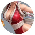 During nearly every King of Fighters tournament, Mai pesters Andy to enter and form a team with her. Upset at his refusals and choice to join a separate team, she forms an all women team with the help of Yuri and King. In the following years, her teammates change, but she remains firm to enter the tournament to help encourage King and her fellow team members and to prove to Andy the error of his ways. In King of Fighters 99, she is finally able to join the tournament in the same team as Andy. However, in the following tournament was asked to step out to allow Blue Mary to investigate a case. Denied again, she is angered by the request and joins the Women’s team again and has remained a reoccurring member ever since. In the various team endings, she is often celebrating the team’s victory at King’s bar or fantasizing about Andy.