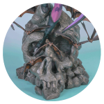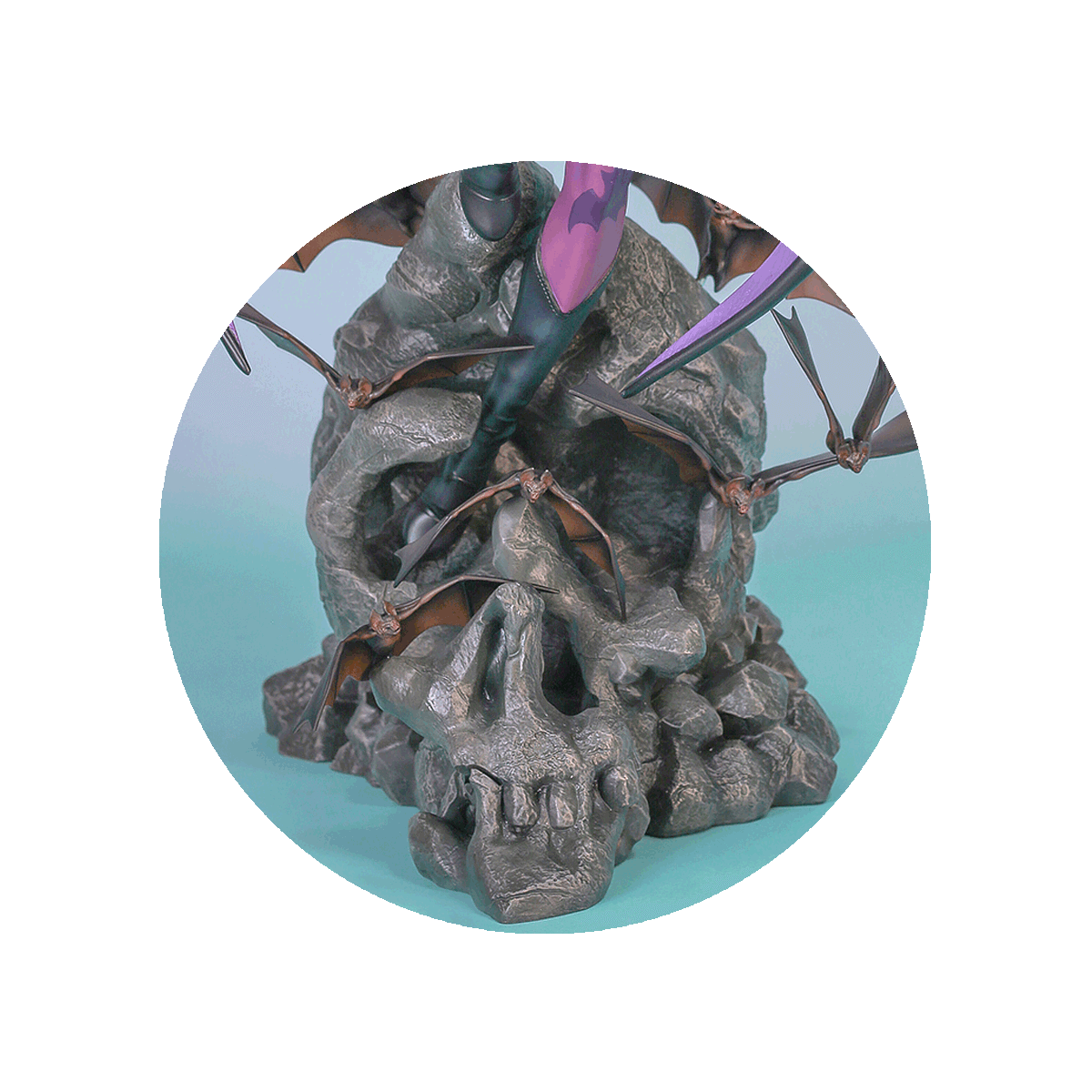 We know what you want… Designed solely for your viewing pleasure, Morrigan features a stunning portrait with incredible life-like eyes realized by HMO’s Realeyes (patent pending) technology. Never before has an HMO female statue looked so beautiful. For you, the appreciator of immortal dynamic scenes, the statue is brought to life with bats taking flight all around Morrigan, like a demon ascending to the heavens. The base itself is a display marvel. As you rotate the base slowly, a skull greets you from the front of Morrigan.