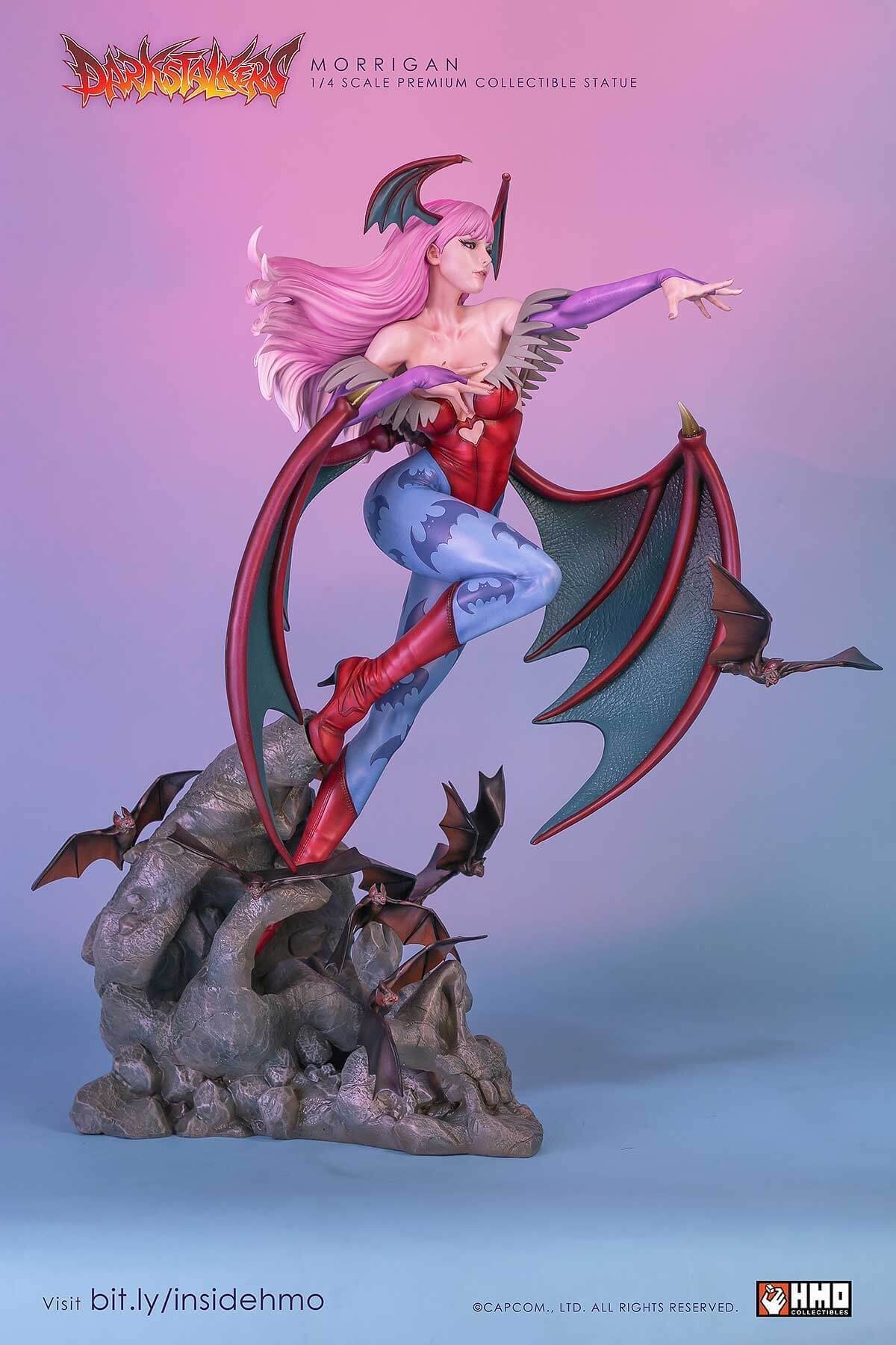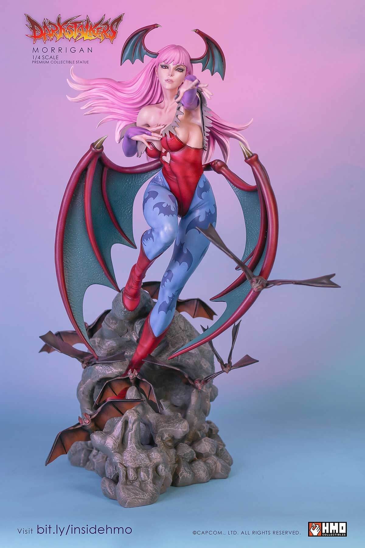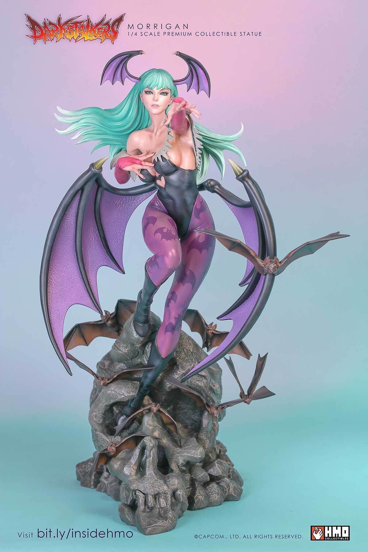 HMO presents to you, an amazing and unprecedented depiction of the Queen Succubus Morrigan Aensland in stunning 1:4 scale. If you would like to find out why this statue stole the show and eclipsed products at conventions, read on.
