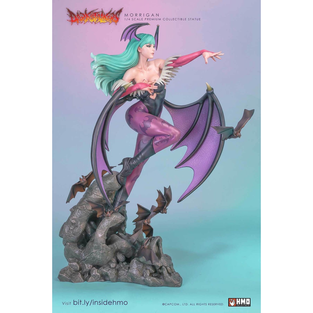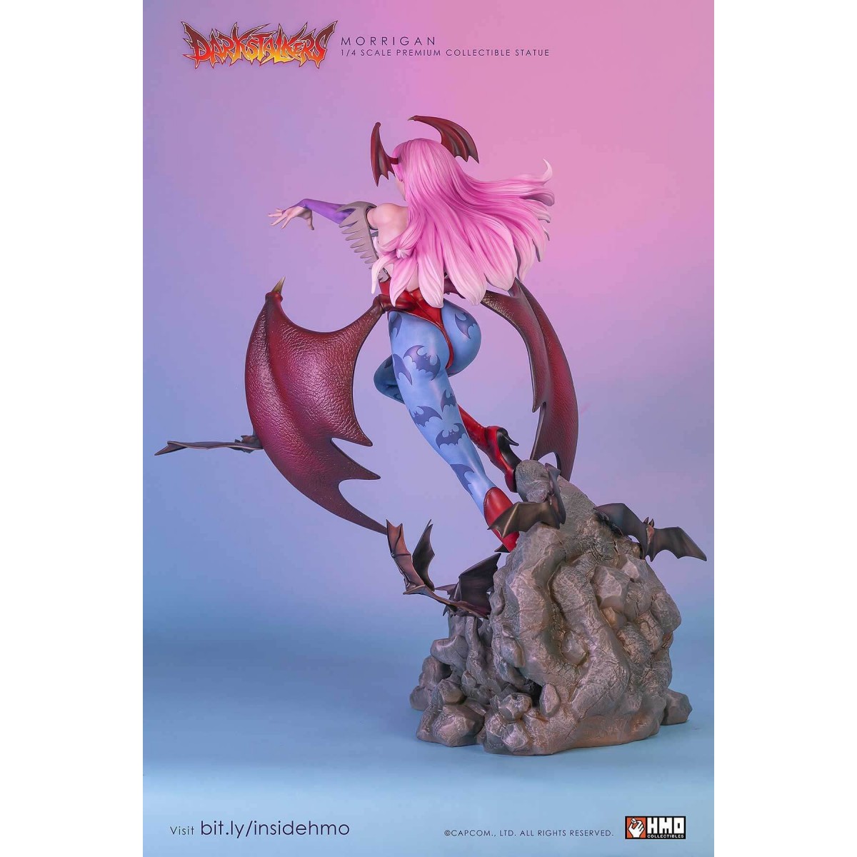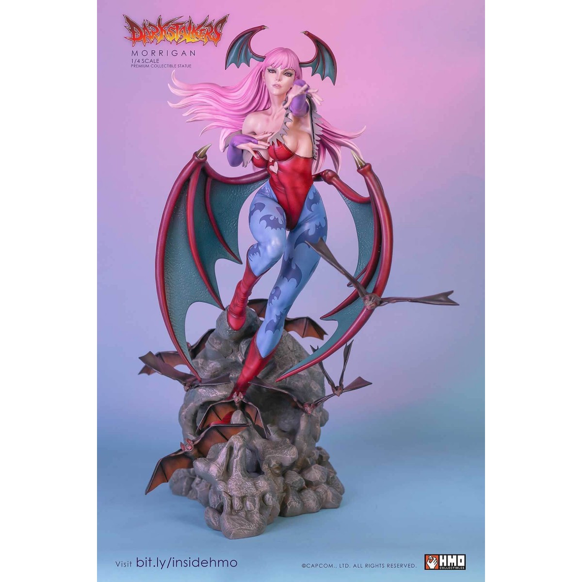 HMO presents to you, an amazing and unprecedented depiction of the Queen Succubus Morrigan Aensland in stunning 1:4 scale. If you would like to find out why this statue stole the show and eclipsed products at conventions, read on.