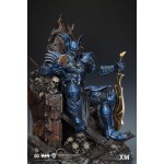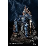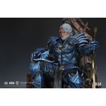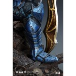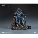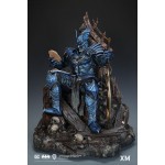 In this art statue collectible, The Merciless an imposing iron-willed figure, sits on his throne, armed with the Godkiller sword. He can be seen ruminating over the portrait of Diana carved in stone, worn around the edges from the number of times he has looked upon this keepsake.