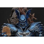 The Merciless comes in 2 versions, each spotting a colour variation of his armour. Ver A features the blue armour while Ver B features the red colour variation, which is also the first and initial colour scheme created by Riccardo Federici (Riccardo designed the concept for The Merciless in the Dark Nights: Metal comics. He also designed The Merciless concept for this piece)