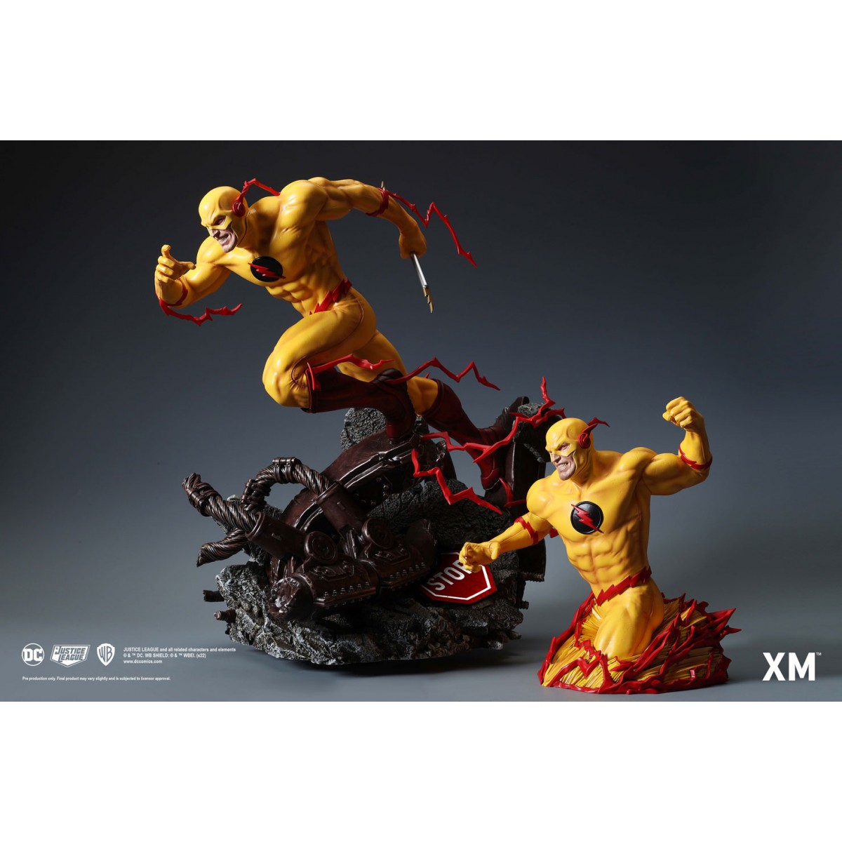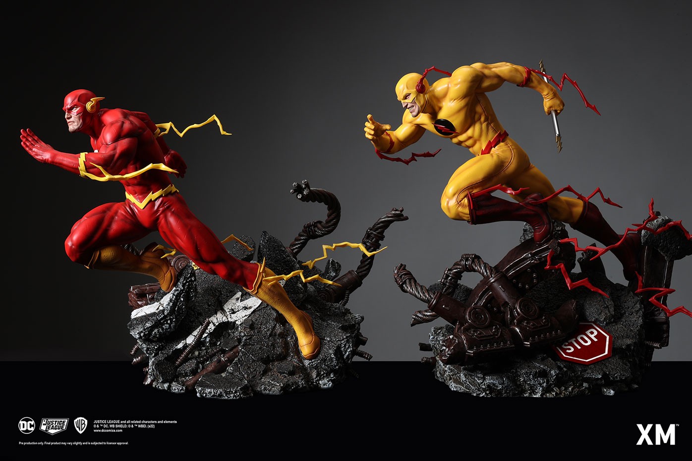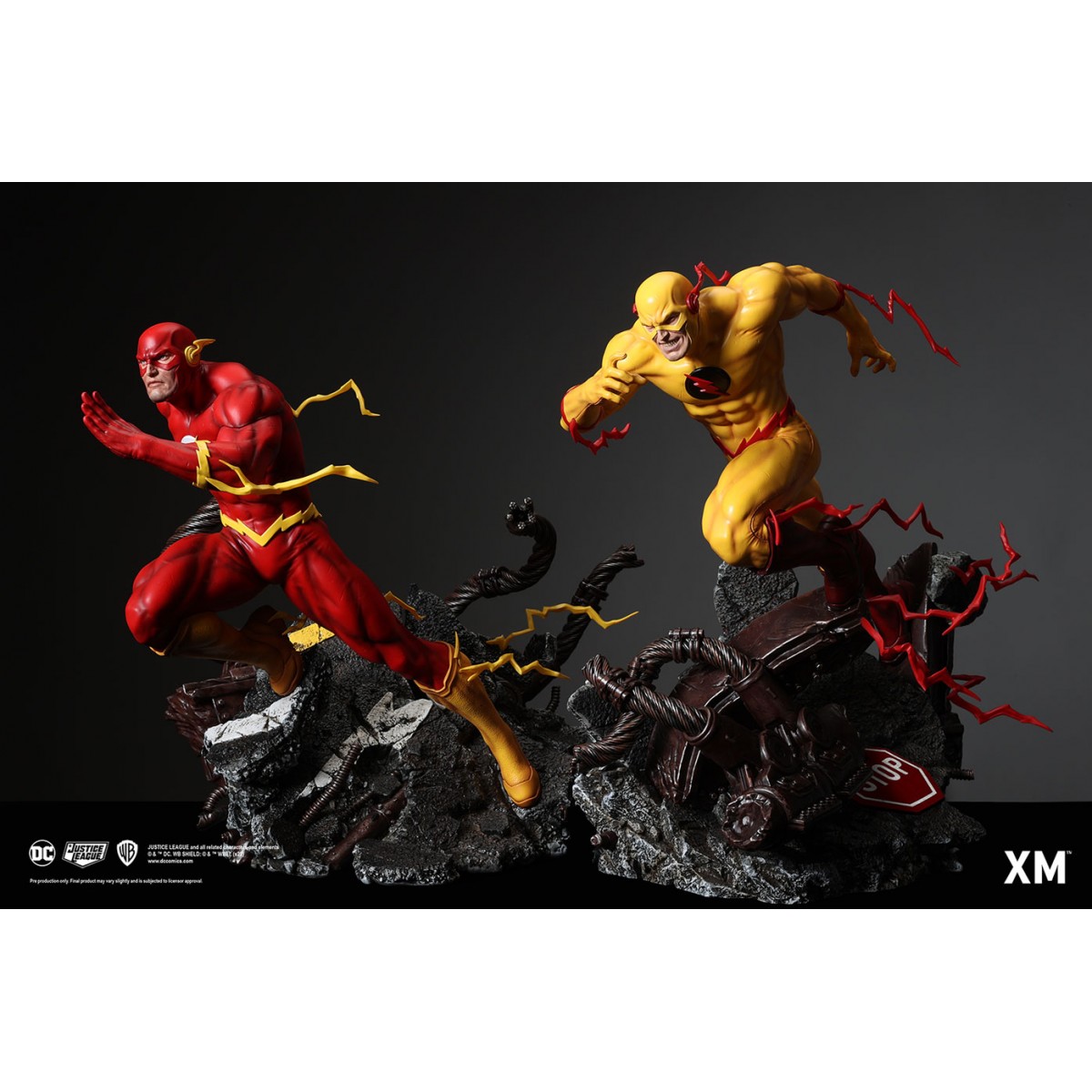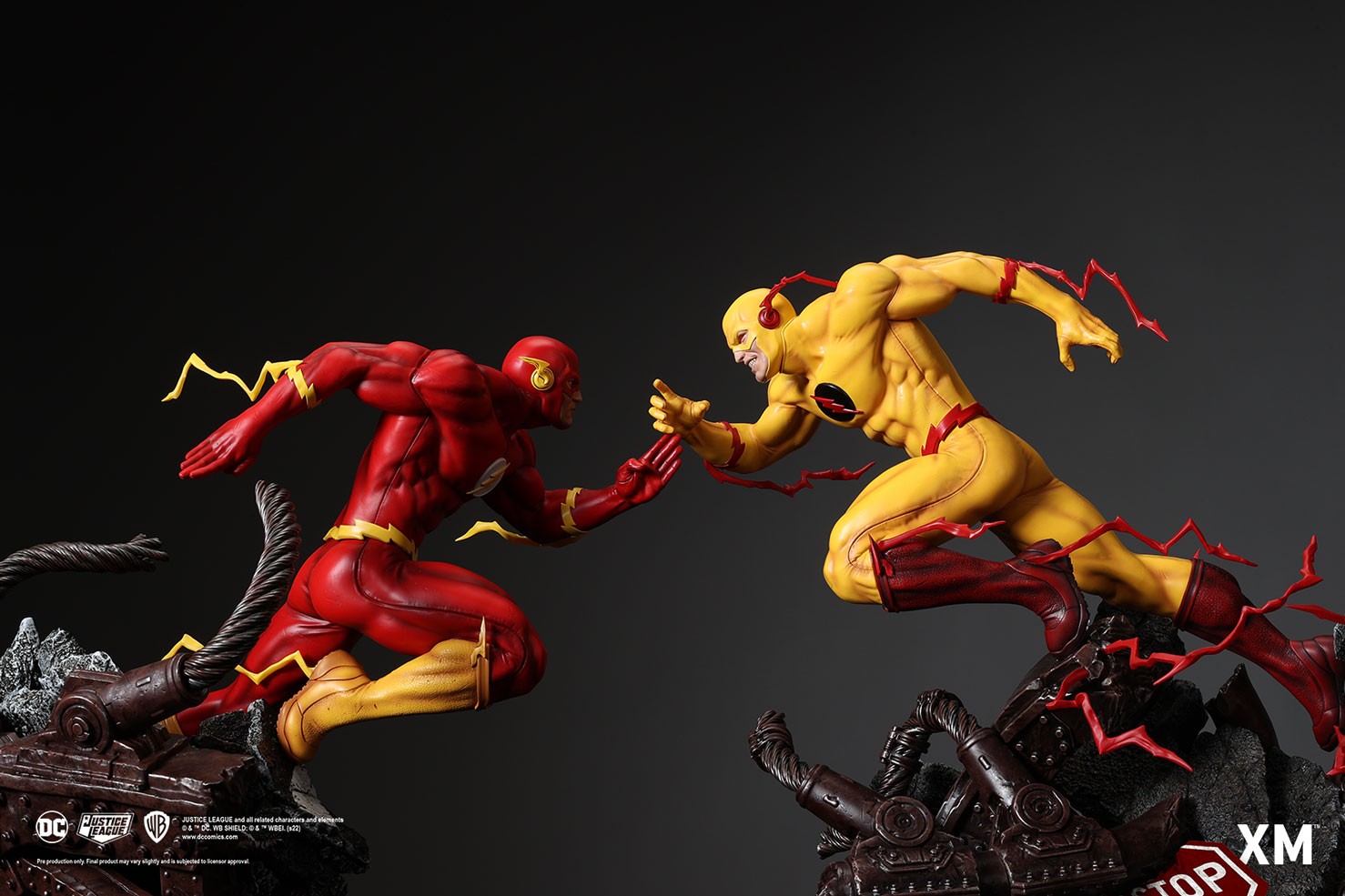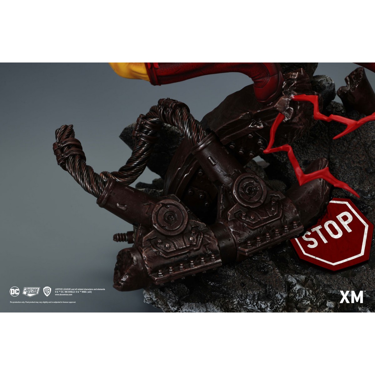 Highly detailed sculpt featuring the Flash on a destroyed and mangled highway bridge