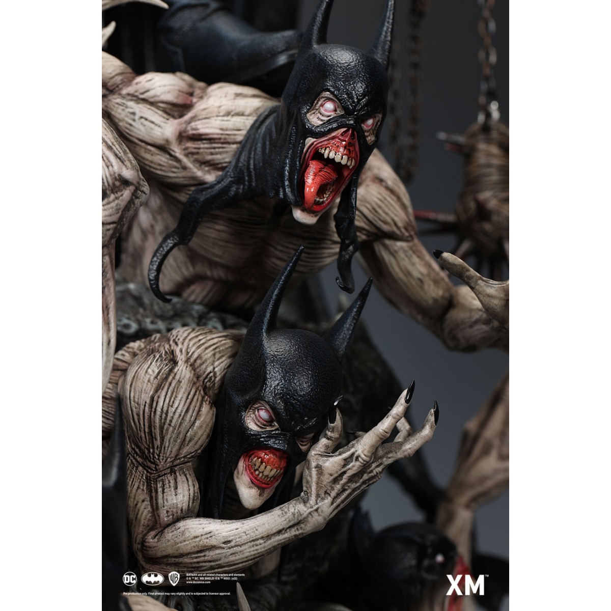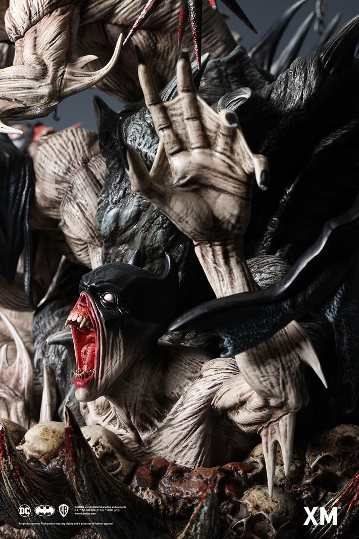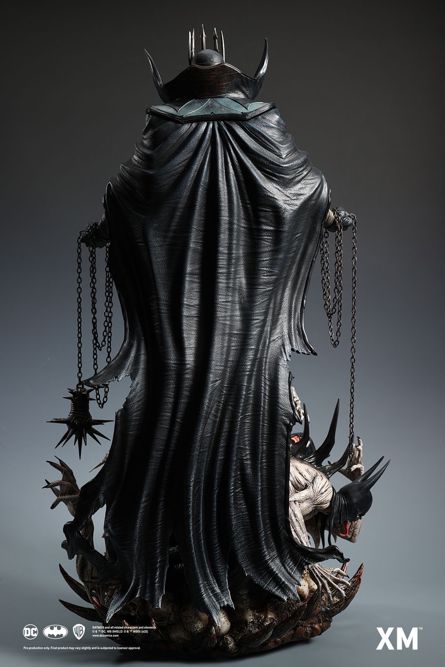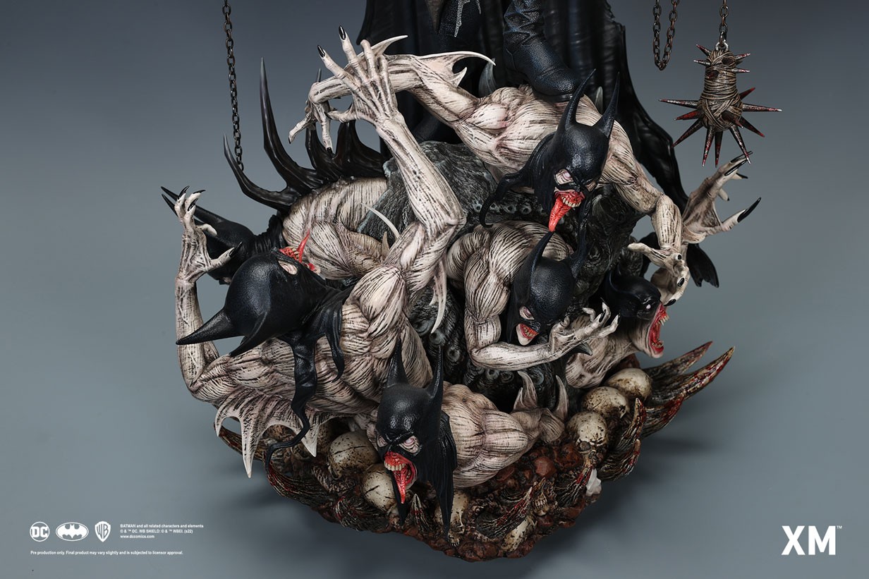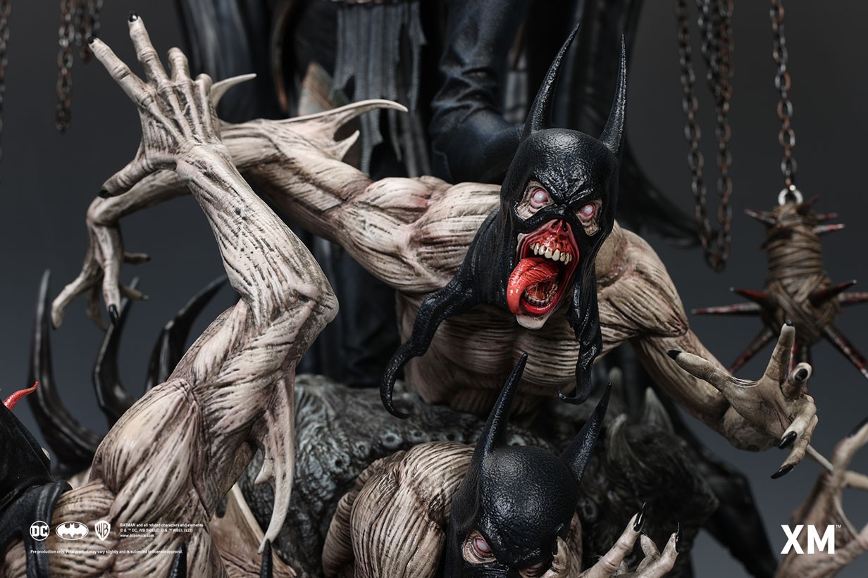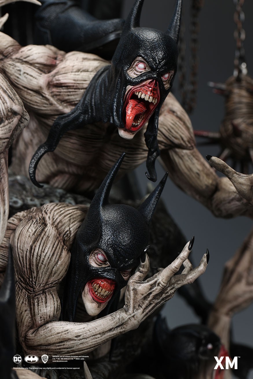 Coupled with Jesse Sandifer’s clever use of texturing to interpret the concept drawing with unformed skin and muscle sinews on the minions and realistic fabric textures on The Batman Who Laughs, this interpretive piece is brought to life by XM in this 1:4 scale art statue collectible – a treat for pop culture and fine art collectors alike.