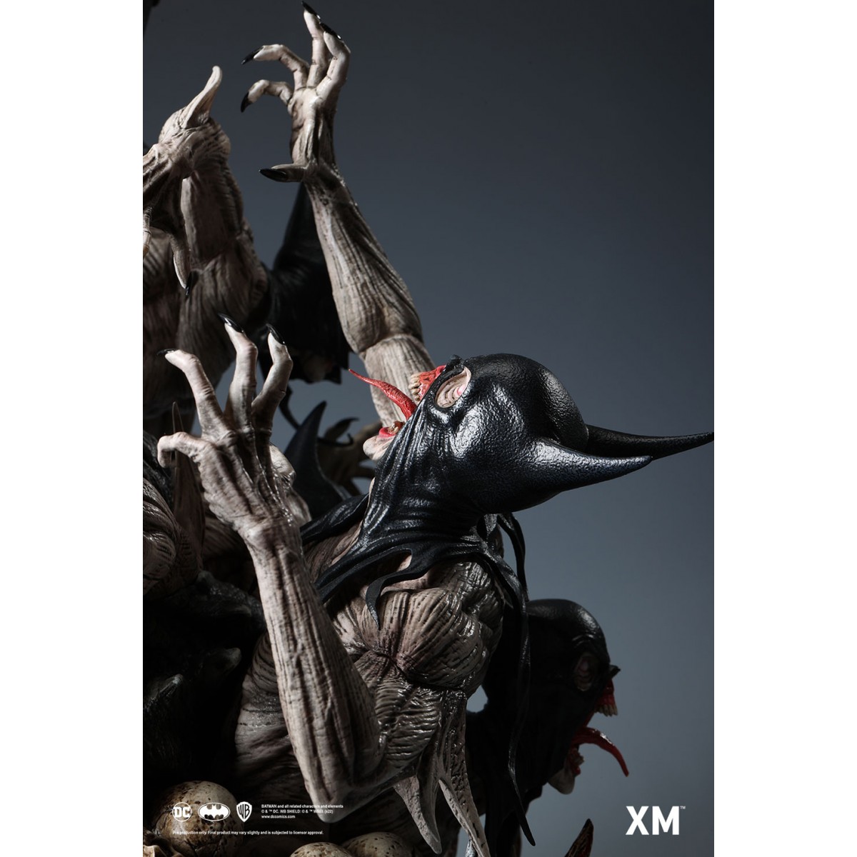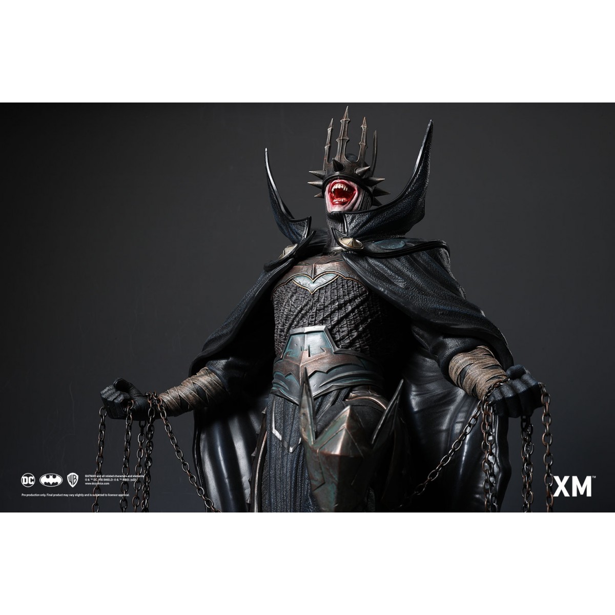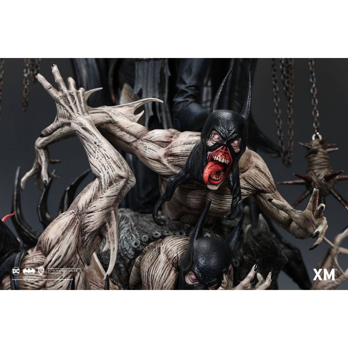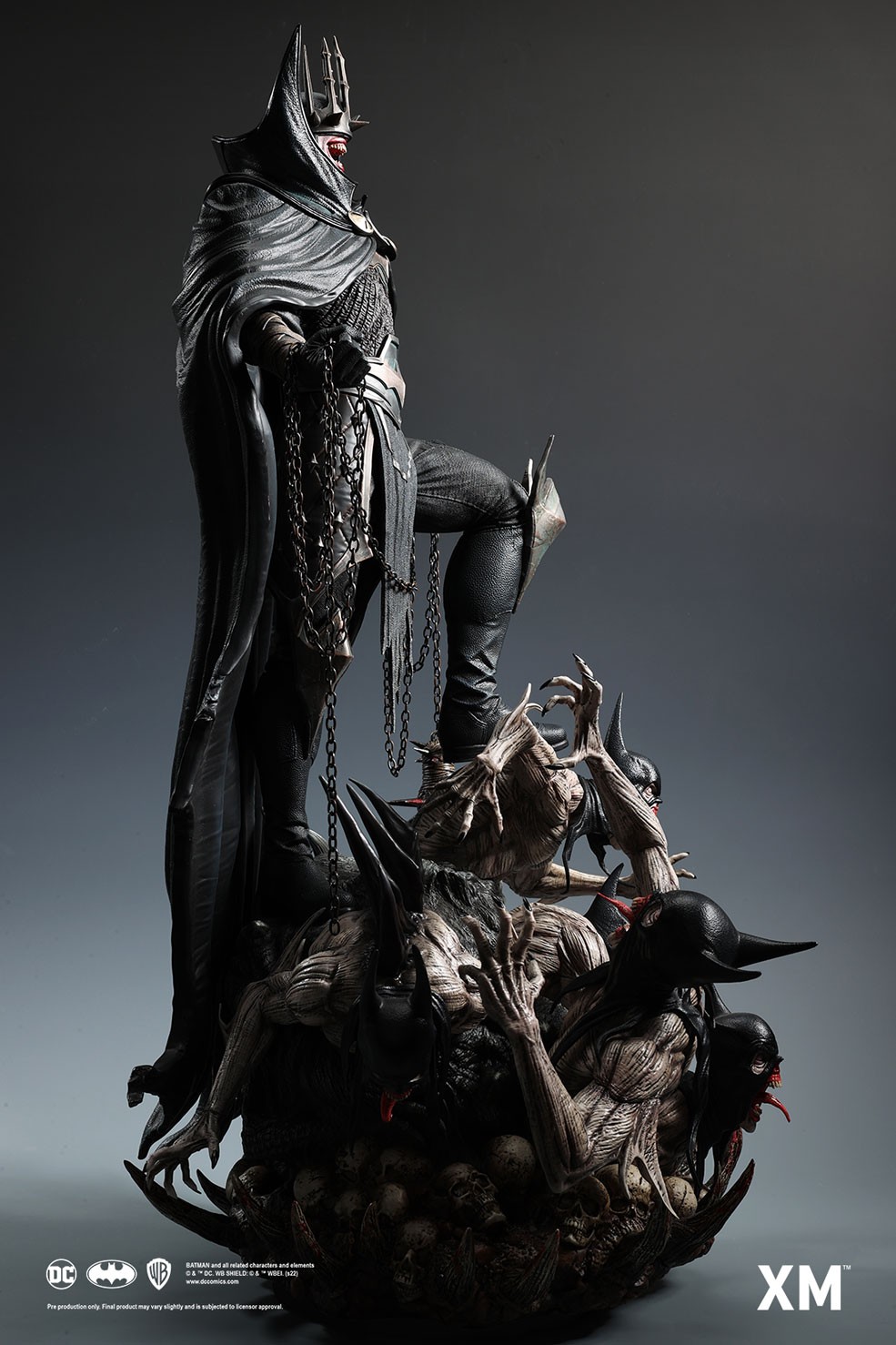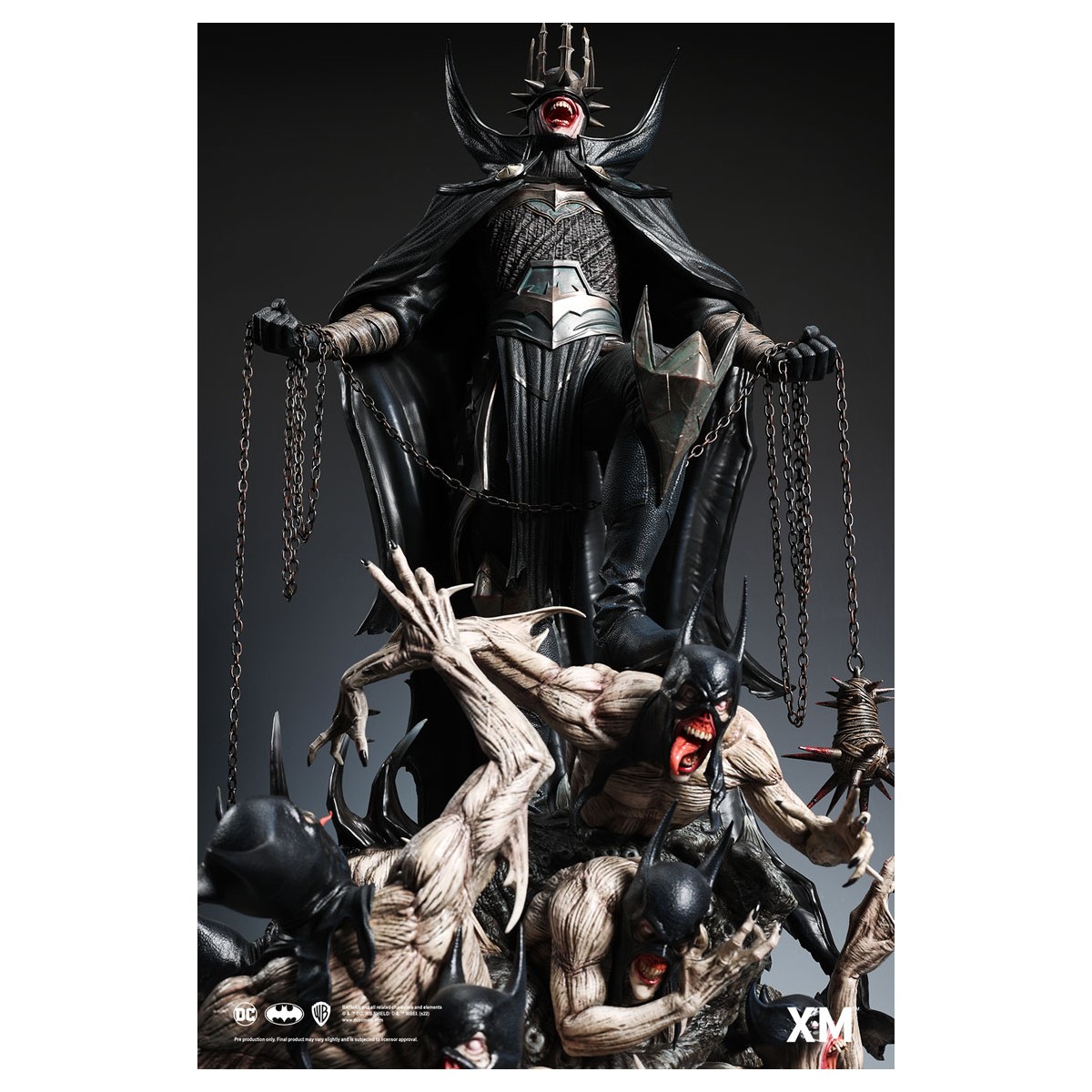 Coupled with Jesse Sandifer’s clever use of texturing to interpret the concept drawing with unformed skin and muscle sinews on the minions and realistic fabric textures on The Batman Who Laughs, this interpretive piece is brought to life by XM in this 1:4 scale art statue collectible – a treat for pop culture and fine art collectors alike.
