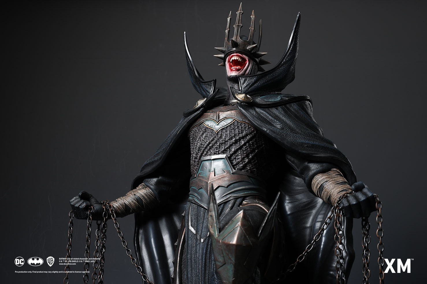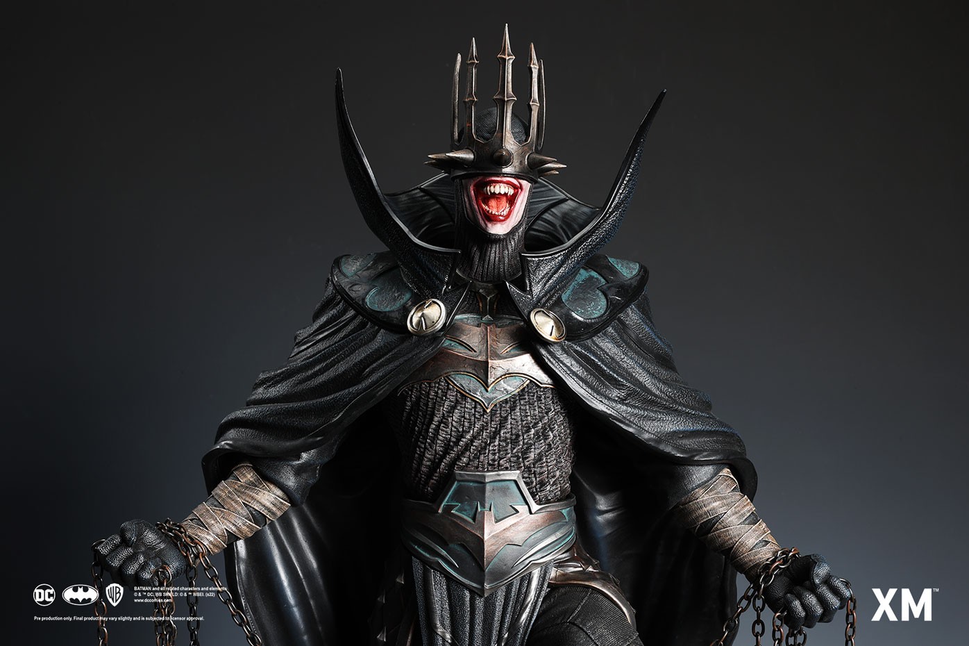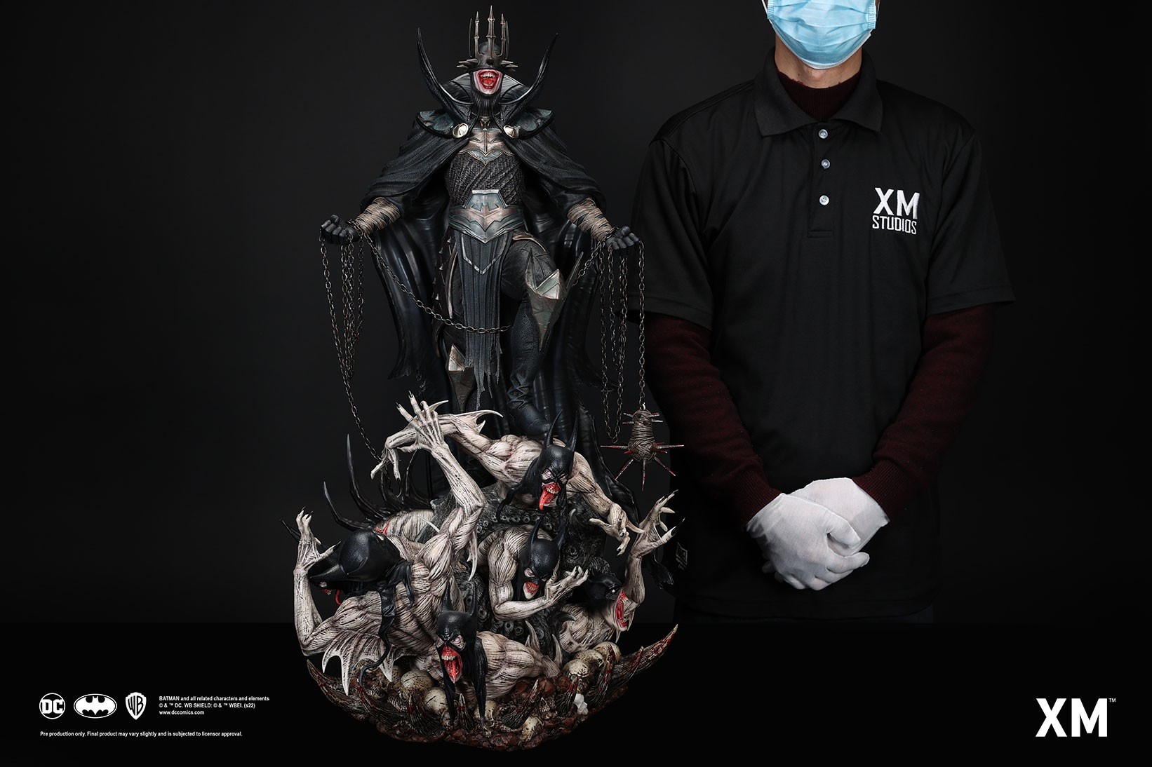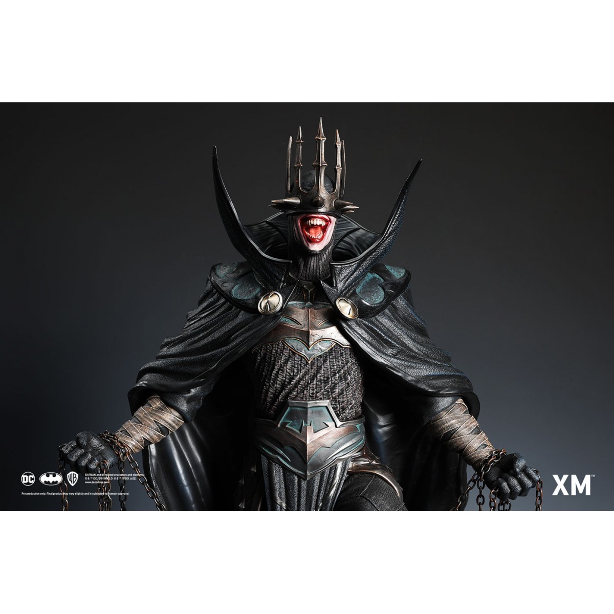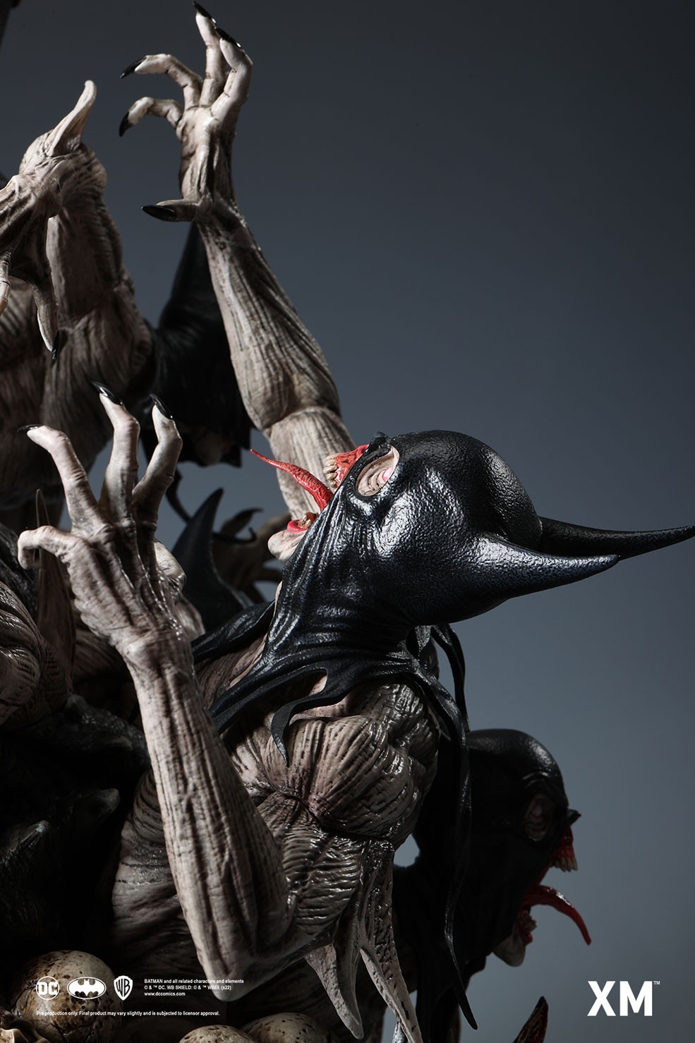Coupled with Jesse Sandifer’s clever use of texturing to interpret the concept drawing with unformed skin and muscle sinews on the minions and realistic fabric textures on The Batman Who Laughs, this interpretive piece is brought to life by XM in this 1:4 scale art statue collectible – a treat for pop culture and fine art collectors alike.