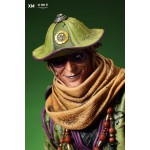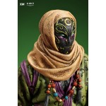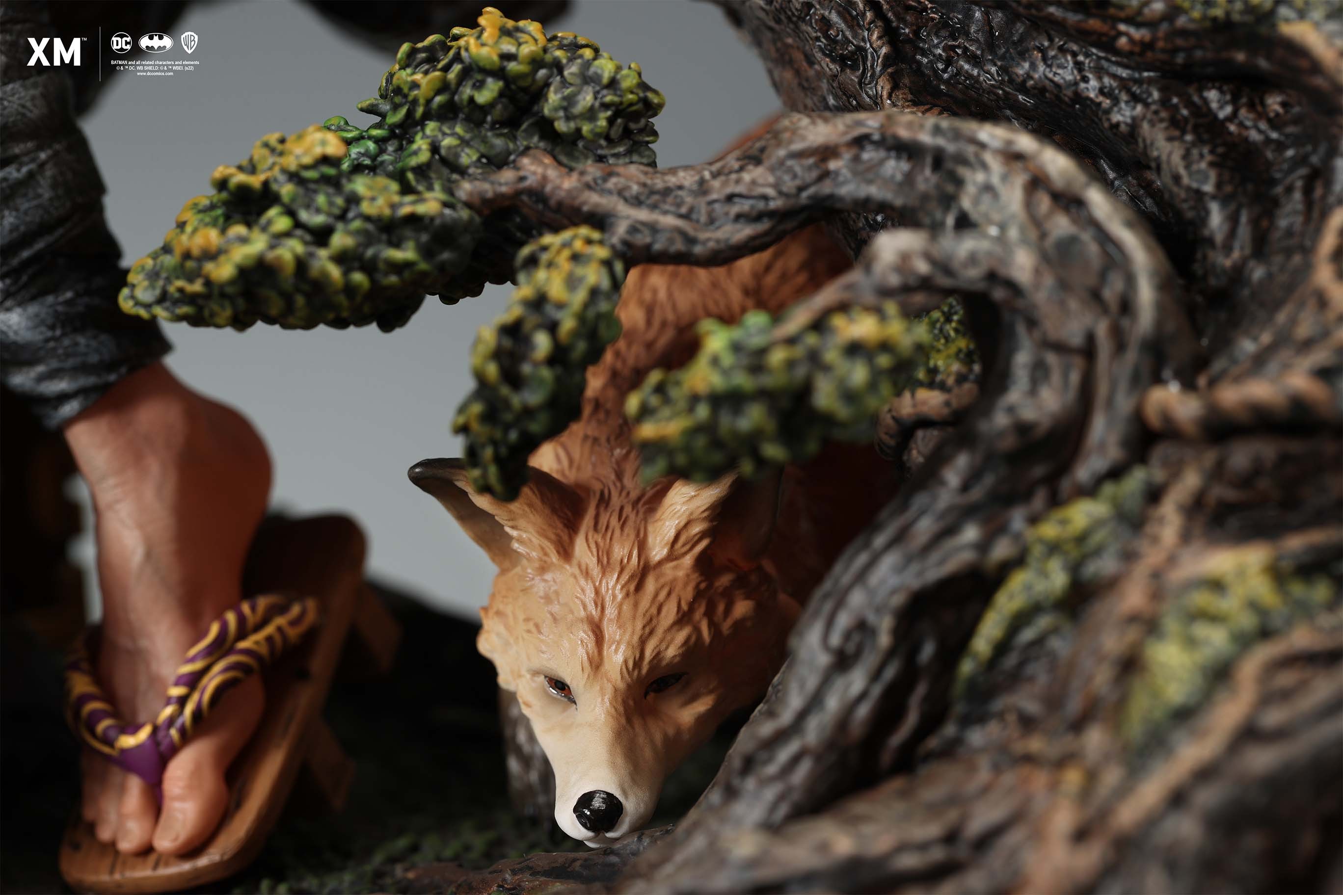 Though masquerading as a seemingly innocent peddler with his Gyosho Bako (peddler’s chest) full of wares - if one were to peer within the intricately carved wooden box - they will find, to their abject horror, various assassination tools. Seen holding on to a Shakujo (a pilgrim’s staff), The Riddler is accompanied by a little red fox hiding diminutively beneath a tree branch.