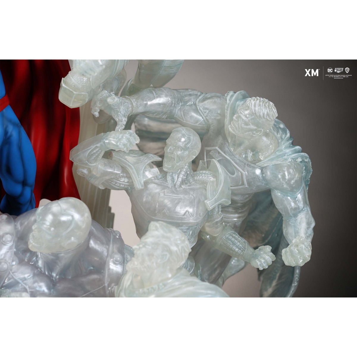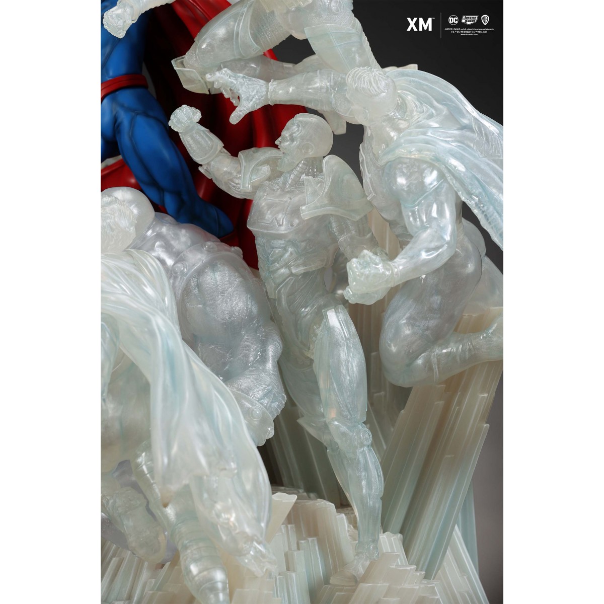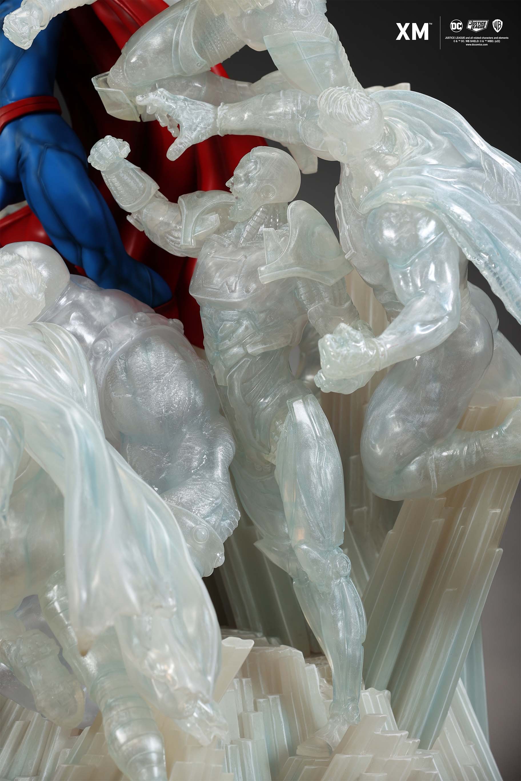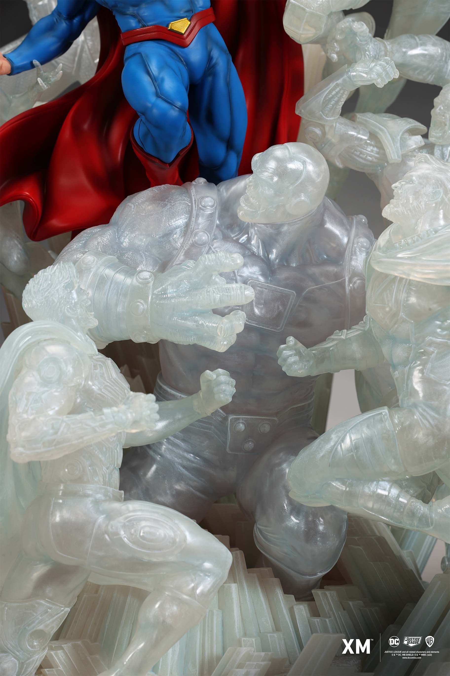 The ice crystal version features his foes painted in the iconic colors of The Fortress of Solitude, providing an alternative reading of the statue, in which Superman’s foes are recreated as a memoir and representation of his many battles against them.