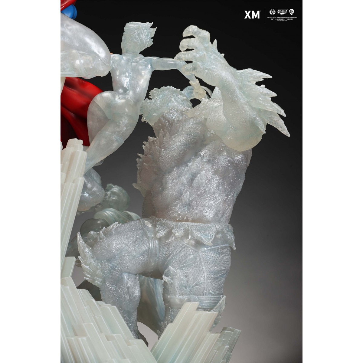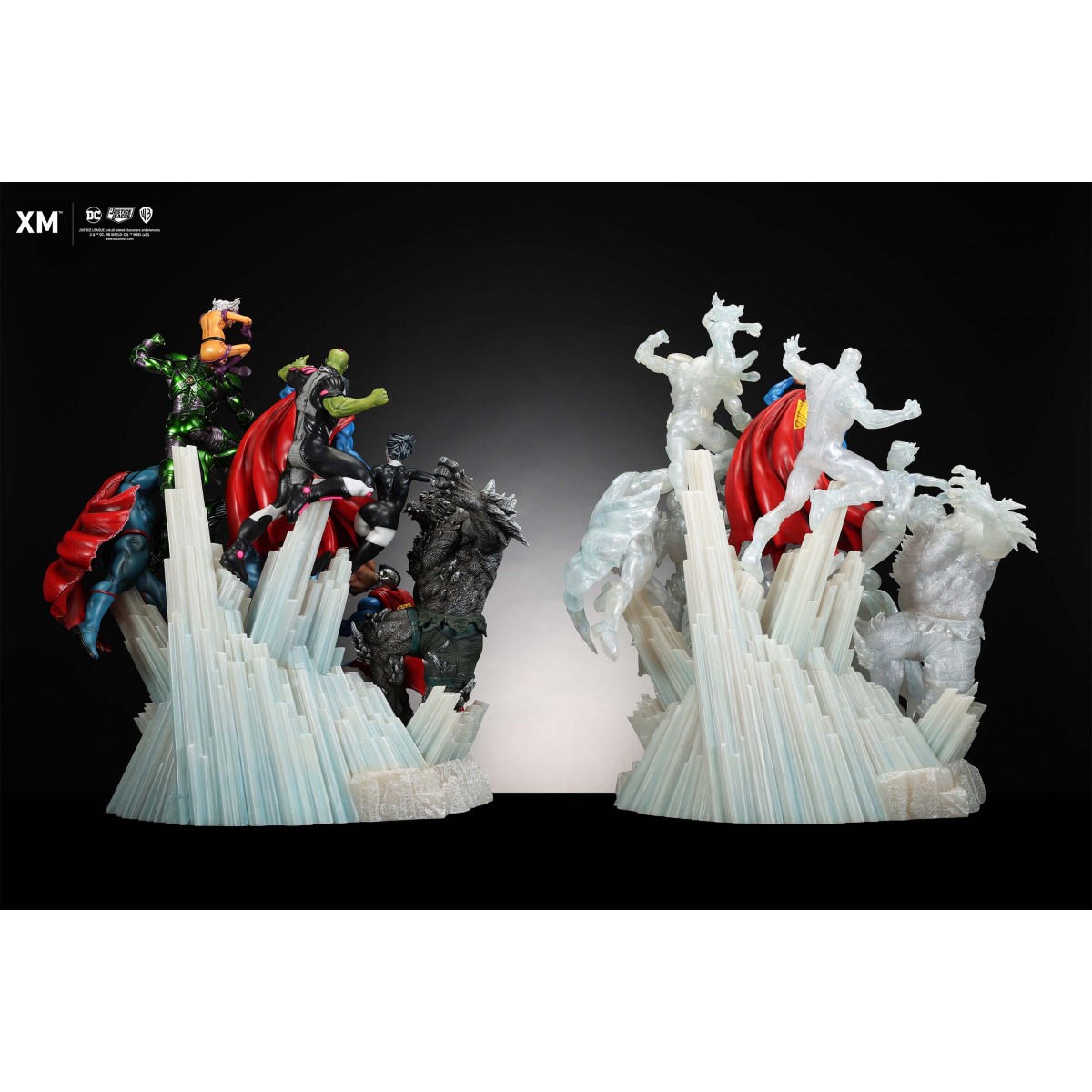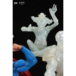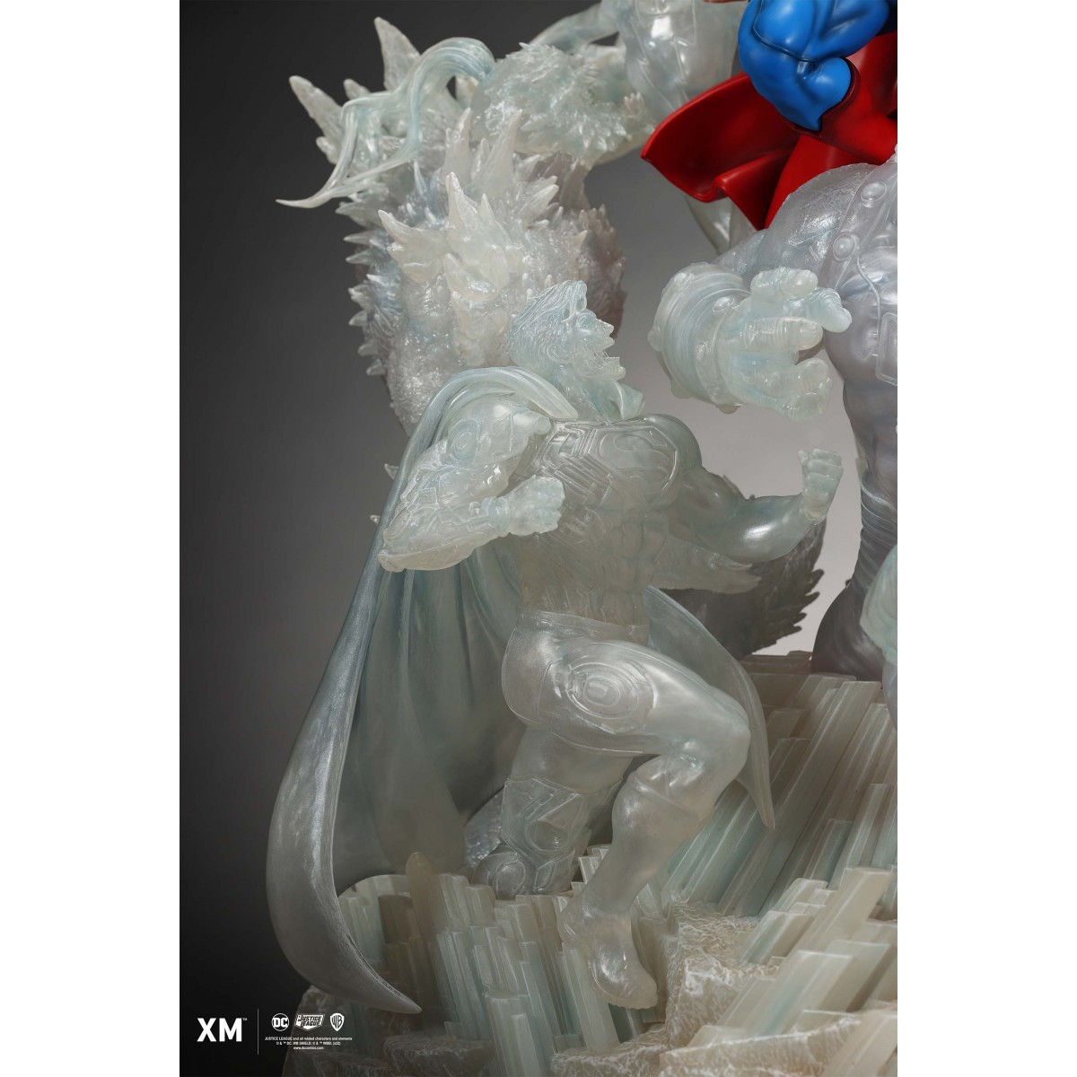 The ice crystal version features his foes painted in the iconic colors of The Fortress of Solitude, providing an alternative reading of the statue, in which Superman’s foes are recreated as a memoir and representation of his many battles against them.