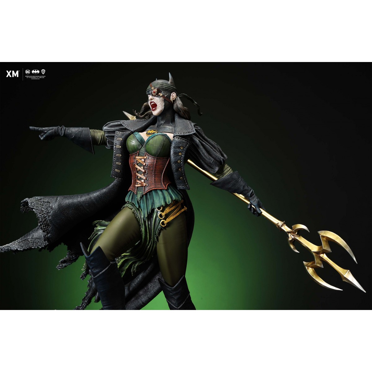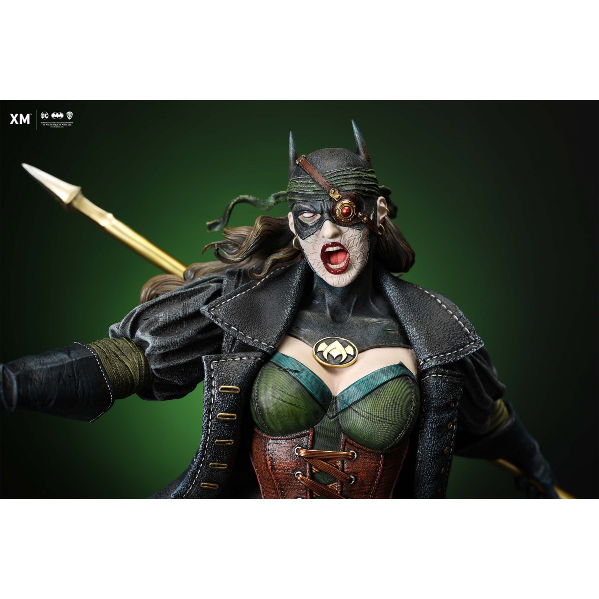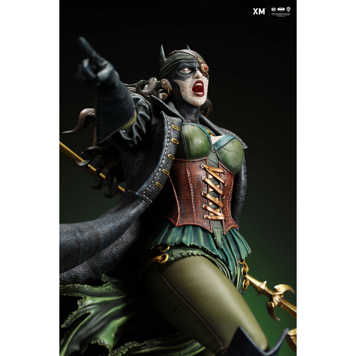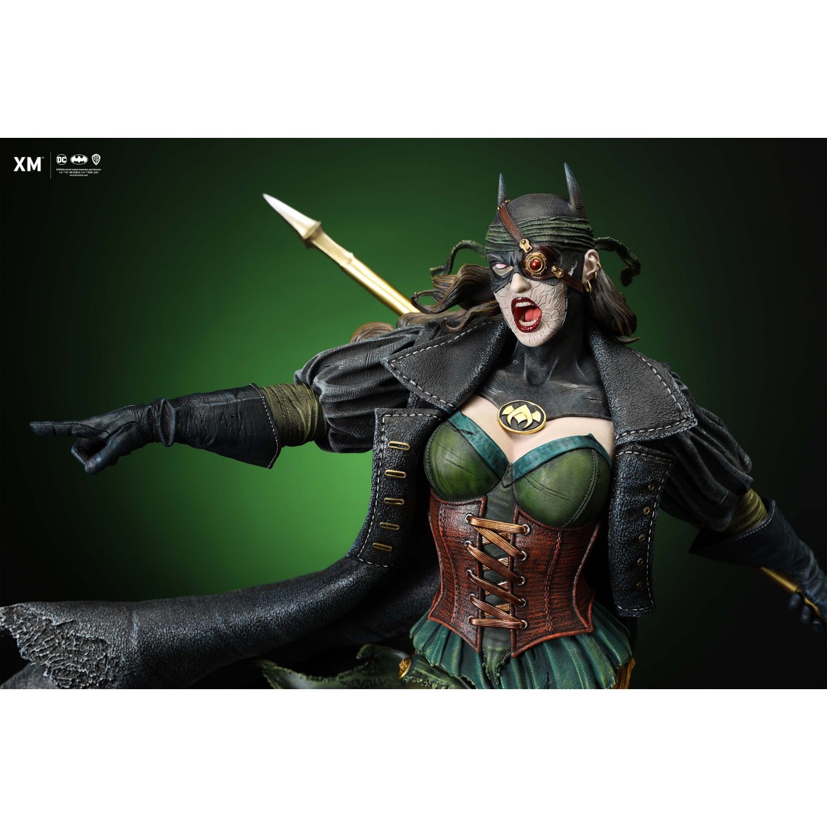 The statue features: