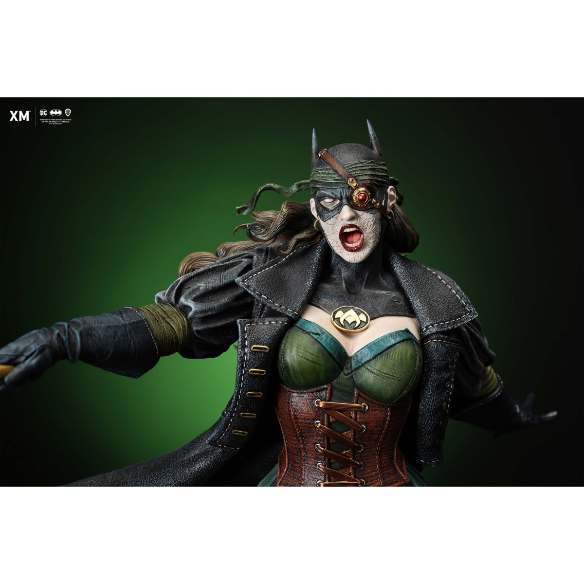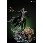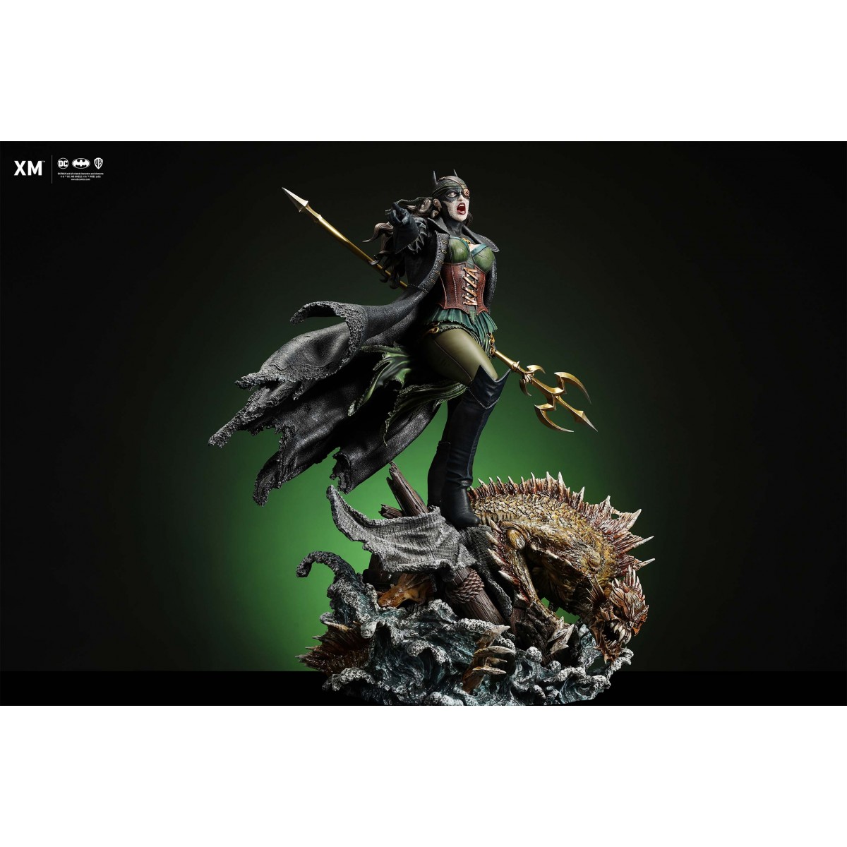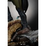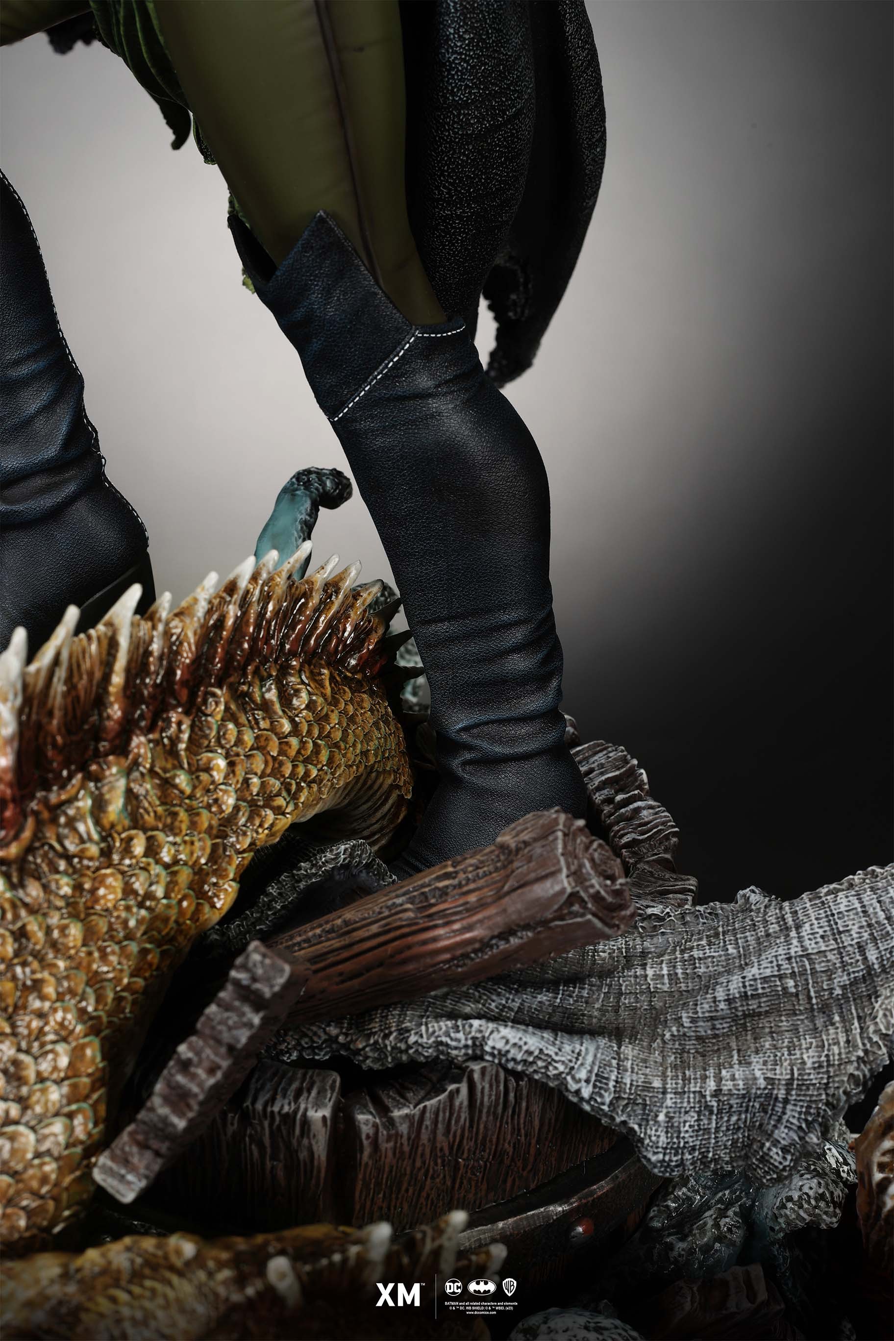 The statue features: