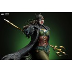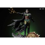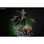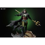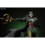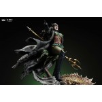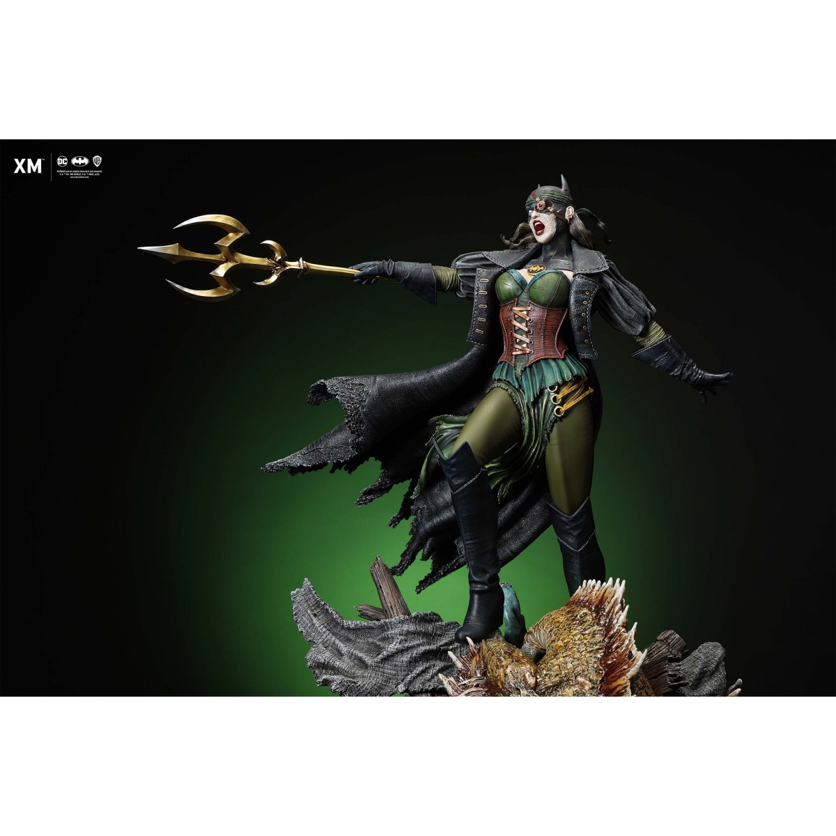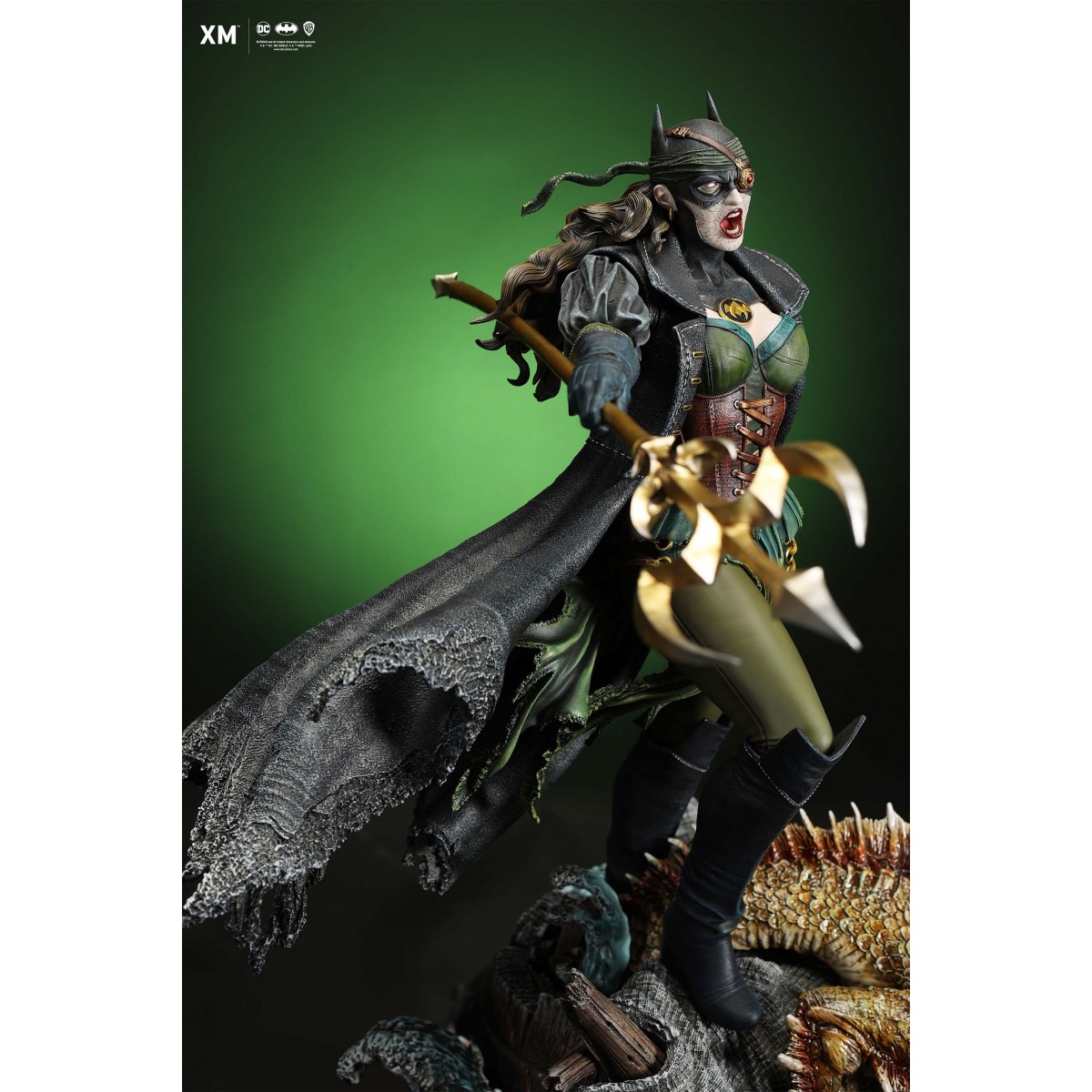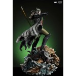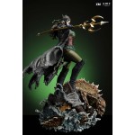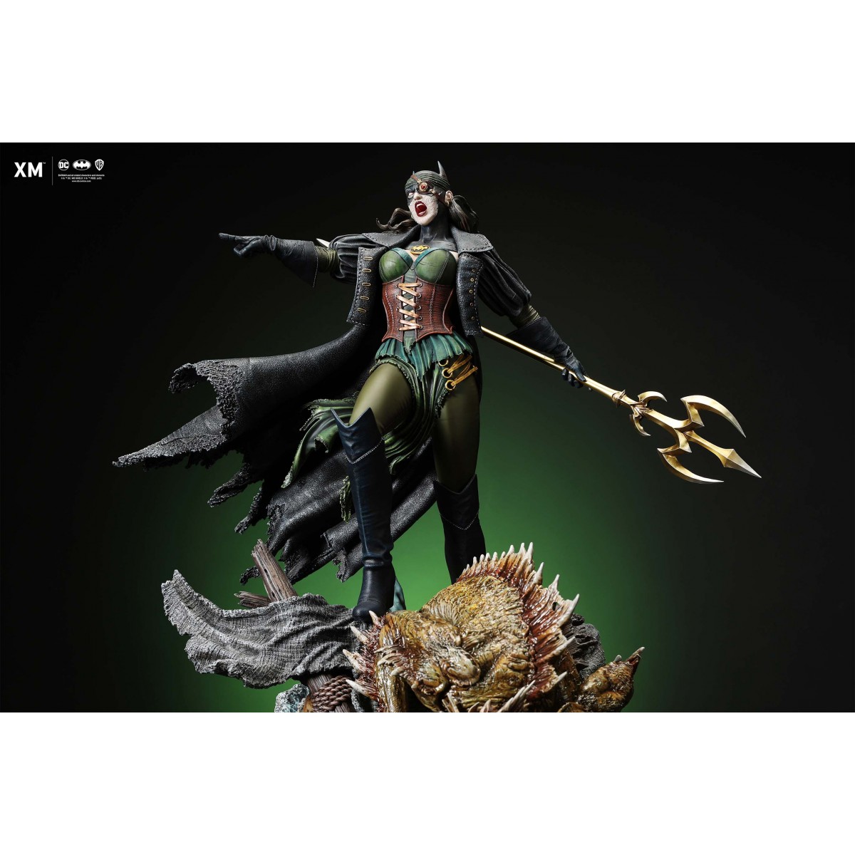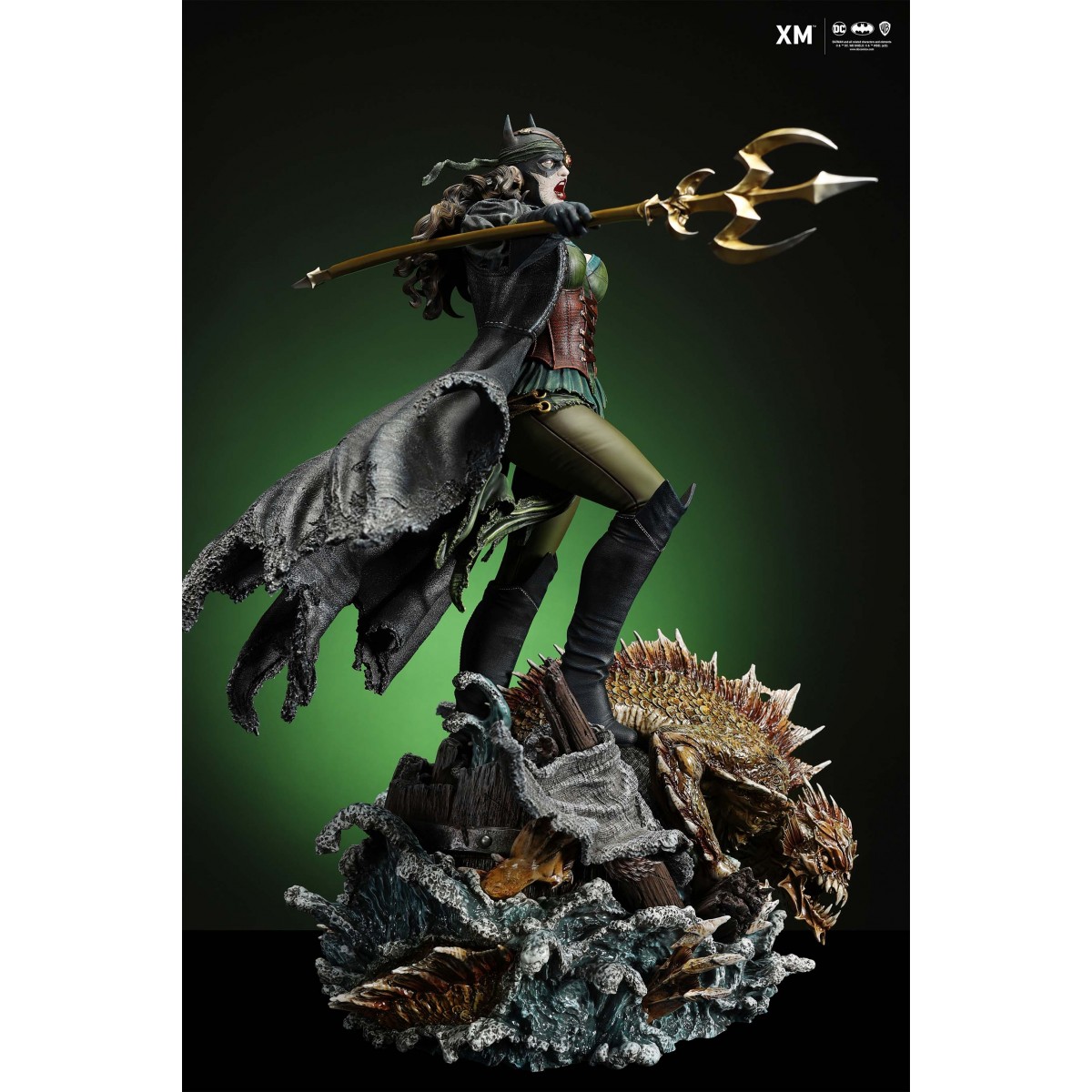 The statue features: