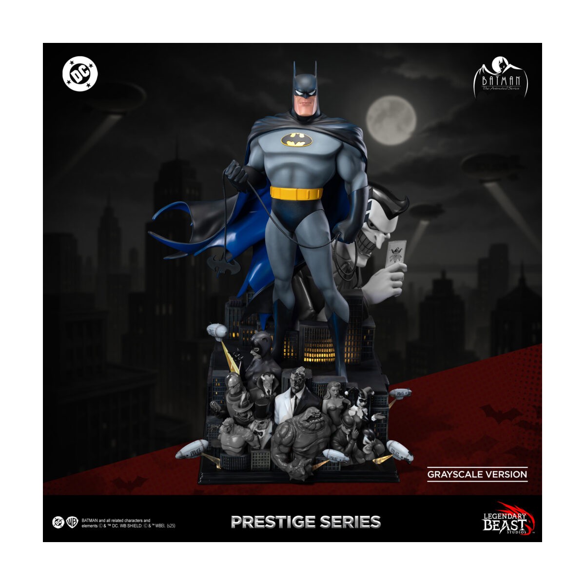 Our Batman: The Animated Series 1/3 Scale Prestige Series Statue captures the iconic protector of Gotham like never before—standing tall above a rogues’ gallery of his most legendary foes: Catwoman, Two-Face, Mr. Freeze, Scarecrow, Killer Croc, Harley Quinn, Ra’s al Ghul, Bane, Riddler, Clayface, Penguin, and Poison Ivy.