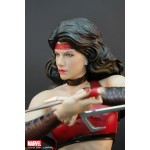 XM Studios is excited to present our next Marvel Premium Collectibles series statue, Elektra! The highly trained Greek Assassin is immortalized in amazingly detailed 1:4 scale cold-cast porcelain. Each painstakingly handcrafted statue stands at approximately 63 cm tall and every piece individually hand-painted with the highest possible quality finish. The love interest of Daredevil, Elektra is depicted in a graceful pose wielding a pair of bladed sai as her trademark weapon, interchangeable to Katanas for alternate display purposes. Her intricate base is designed to go well with our Daredevil statue. Collect ‘em both!