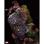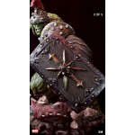 A traditionally hand-sculpted piece by artist Aaron Rey Perez (the same artist who hand- sculpted Red Hulk), Planet Hulk is definitely a key art piece in every Marvel collector’s collection. A unique Hulk piece that follows Hulk’s journey and storyline in Planet Hulk, collectors have the option to display Hulk as Gladiator Hulk and King Hulk with the available switch-outs. Details and textures from Hulk’s skin, the leather-clad pieces and straps, his distressed wood-like shield and the armour that encases Hulk, are all sculpted to life-like detail.