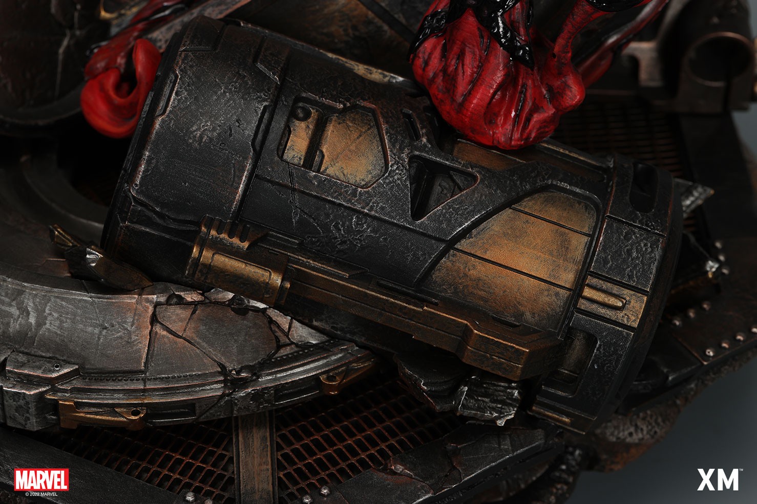 Bearing spiky teeth, clawed fingers and a huge gaping jaw, the XM Team has opted to flesh out intricate details within Absolute Carnage, with visible threads of red and black snake-like tendrils stretching across the character to form muscle tissue. The XM Team also strove to depict the alien symbiote in a dynamic yet inhuman-like manner that is not seen in most statues.