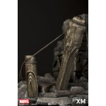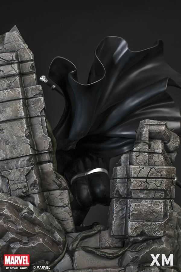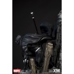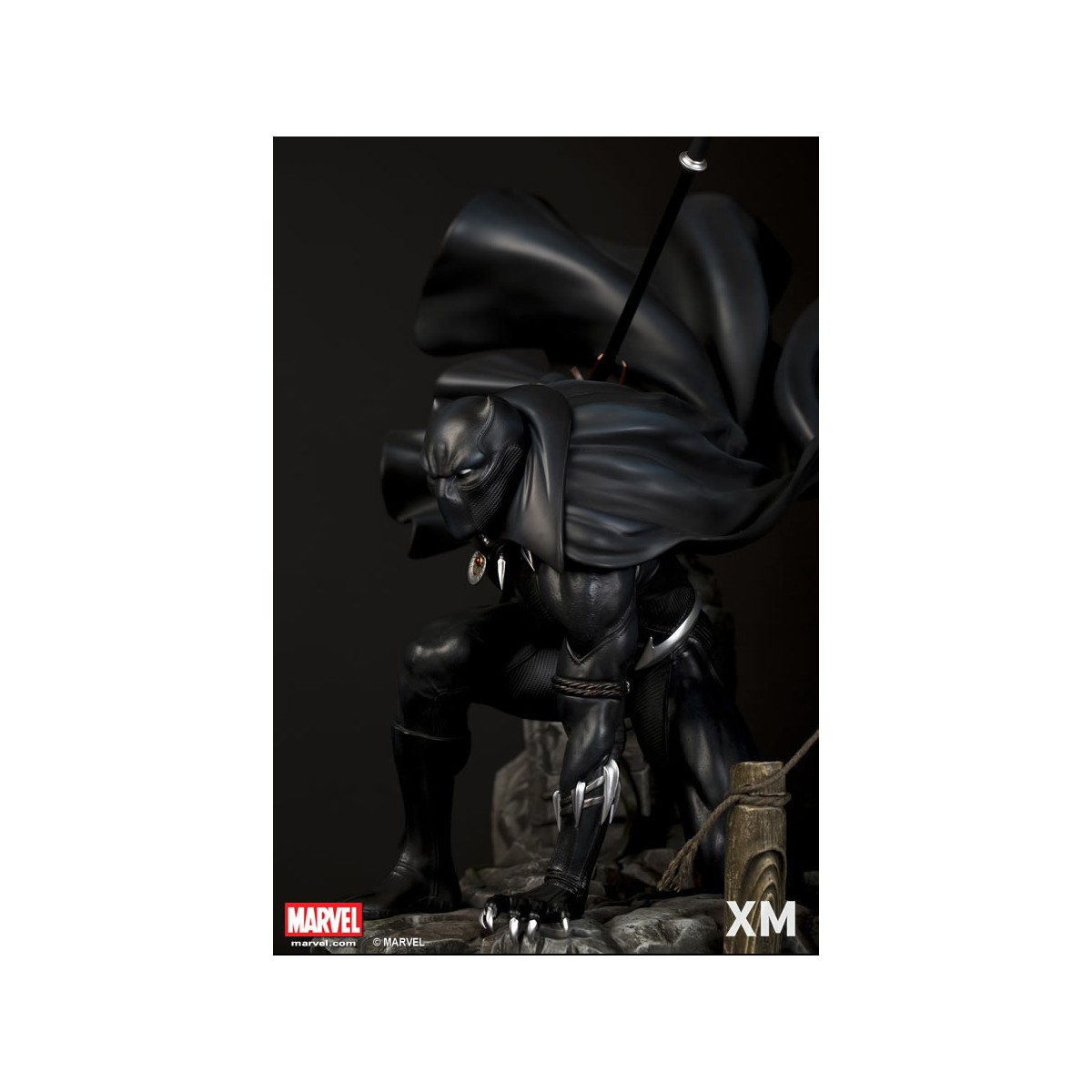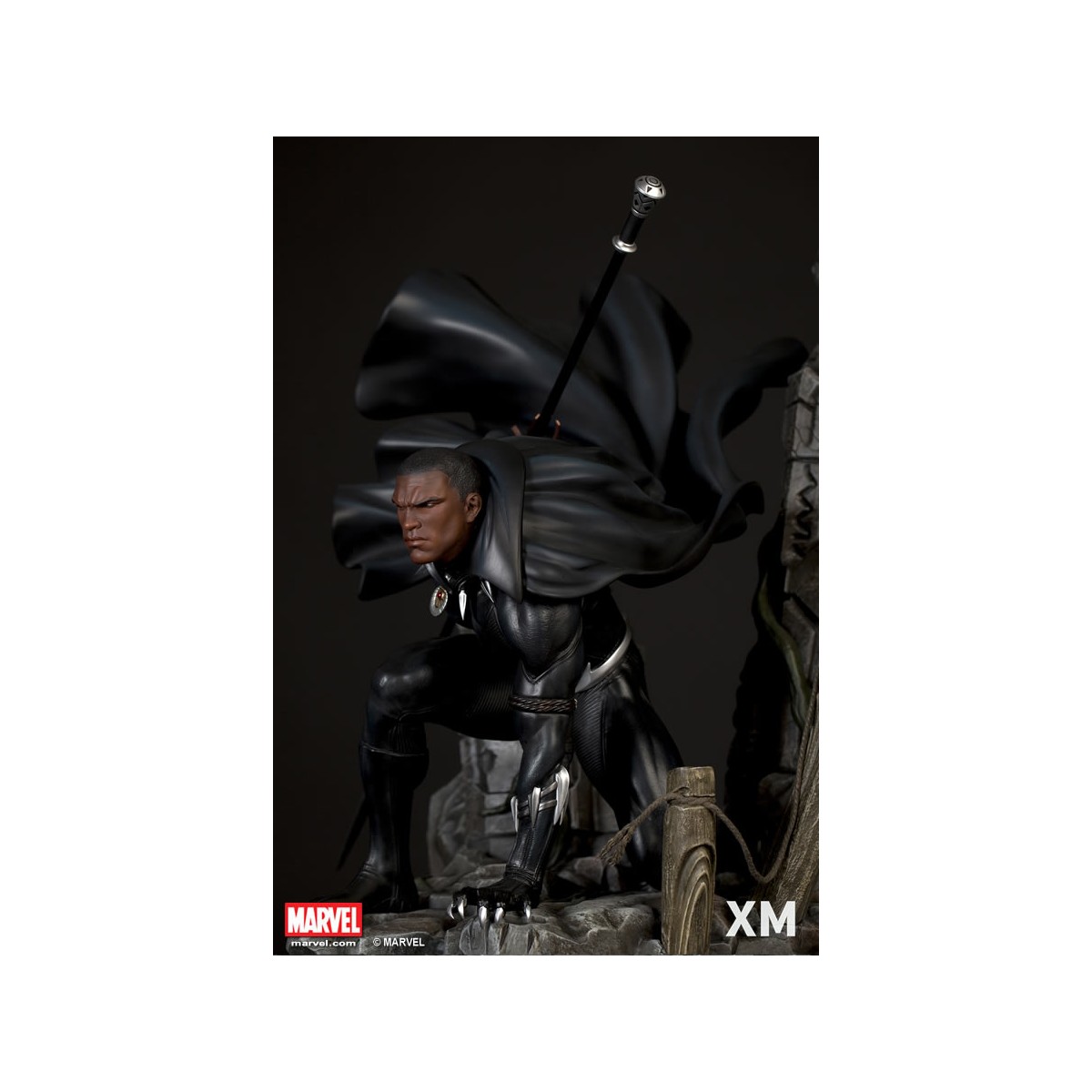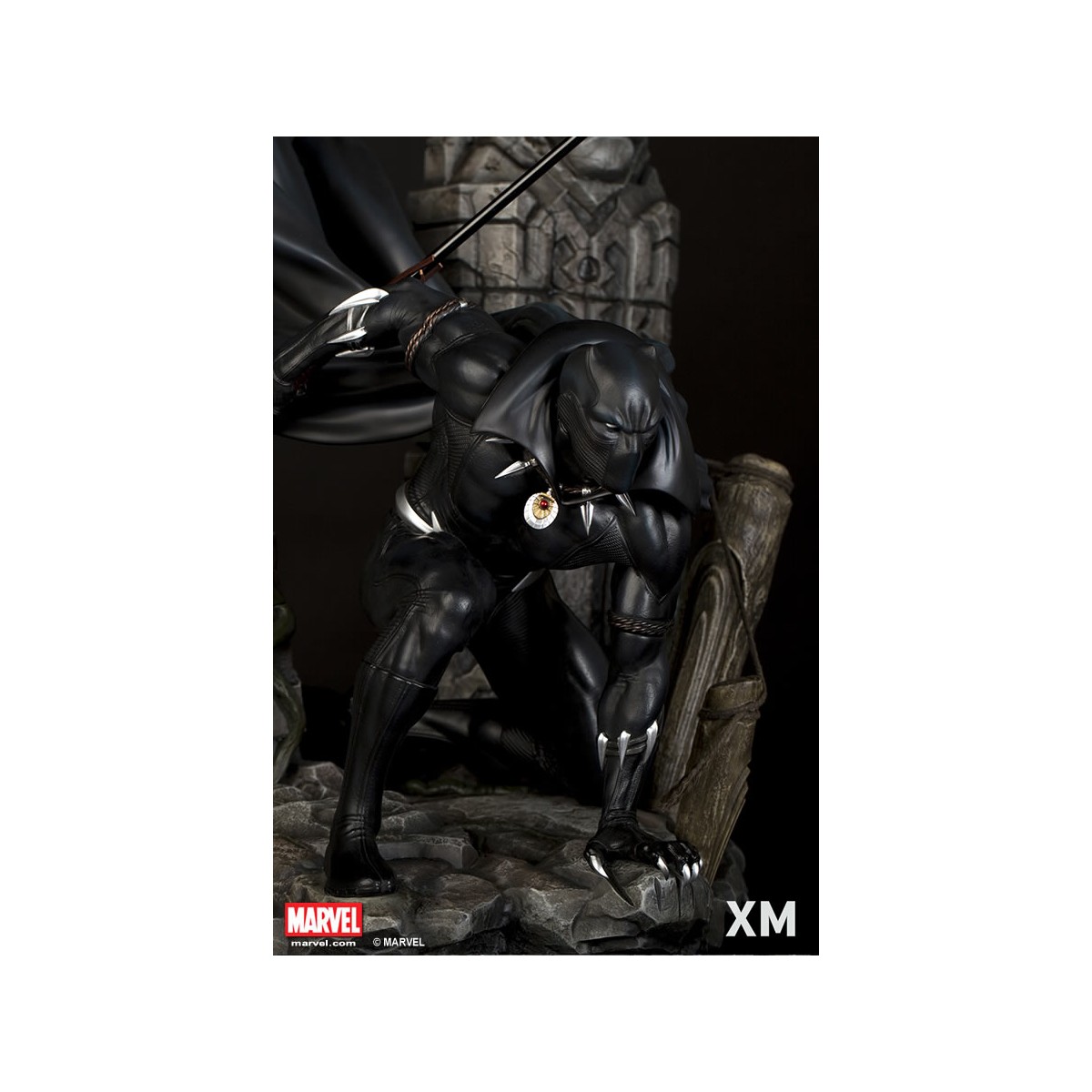 XM Studios is excited to present our next Marvel Premium Collectibles series statue, Black Panther! The King of Wakanda, also known as the Black Panther is immortalized in amazingly detailed 1:4 scale cold-cast porcelain. Each painstakingly handcrafted statue is individually hand-painted with the highest possible quality finish. Set against a Wakanda themed backdrop, Black Panther is depicted crouching ready for battle brandishing a Vibranium spear. The statue also comes with an alternate handsome unmasked portrait.