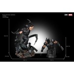 Wolverine’s X-Force black-themed costume is battered with scratches and battle damage dealt from the fight. Scars can be seen on the half-torn switchout head portrait. XM team modernized the costume with textured mesh details and panels and the team’s paint application further accentuates Wolverine’s musculature and the veins and hair on his arms.