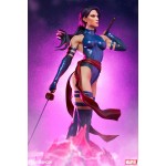 The psychic X-Men Psylocke measures 21.5” tall standing on top of a psionic energy base inspired by her famous butterfly aura. Painted in stunning purples and pinks, this psychic platform shows off the heights of Betsy Braddock’s omega-level strength.