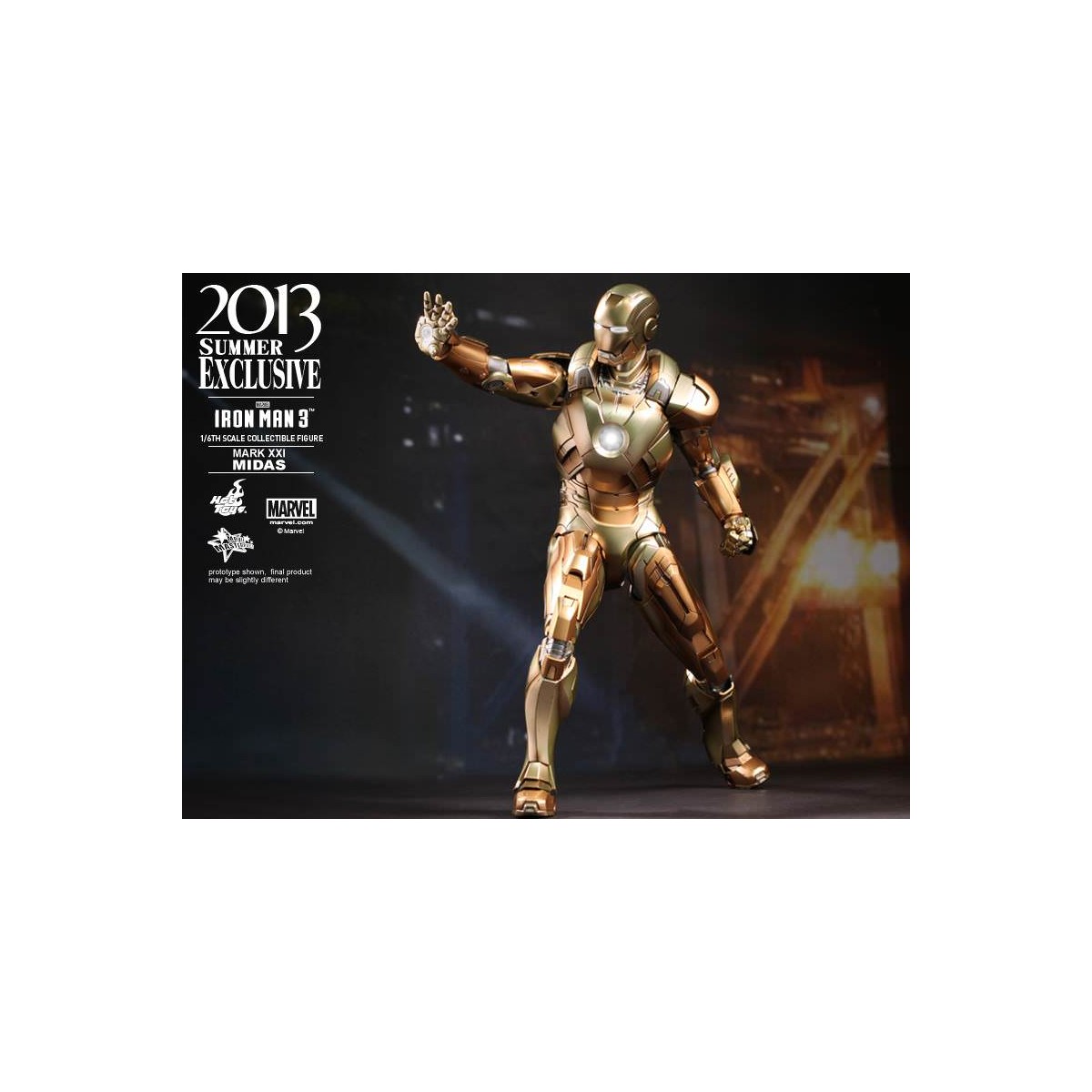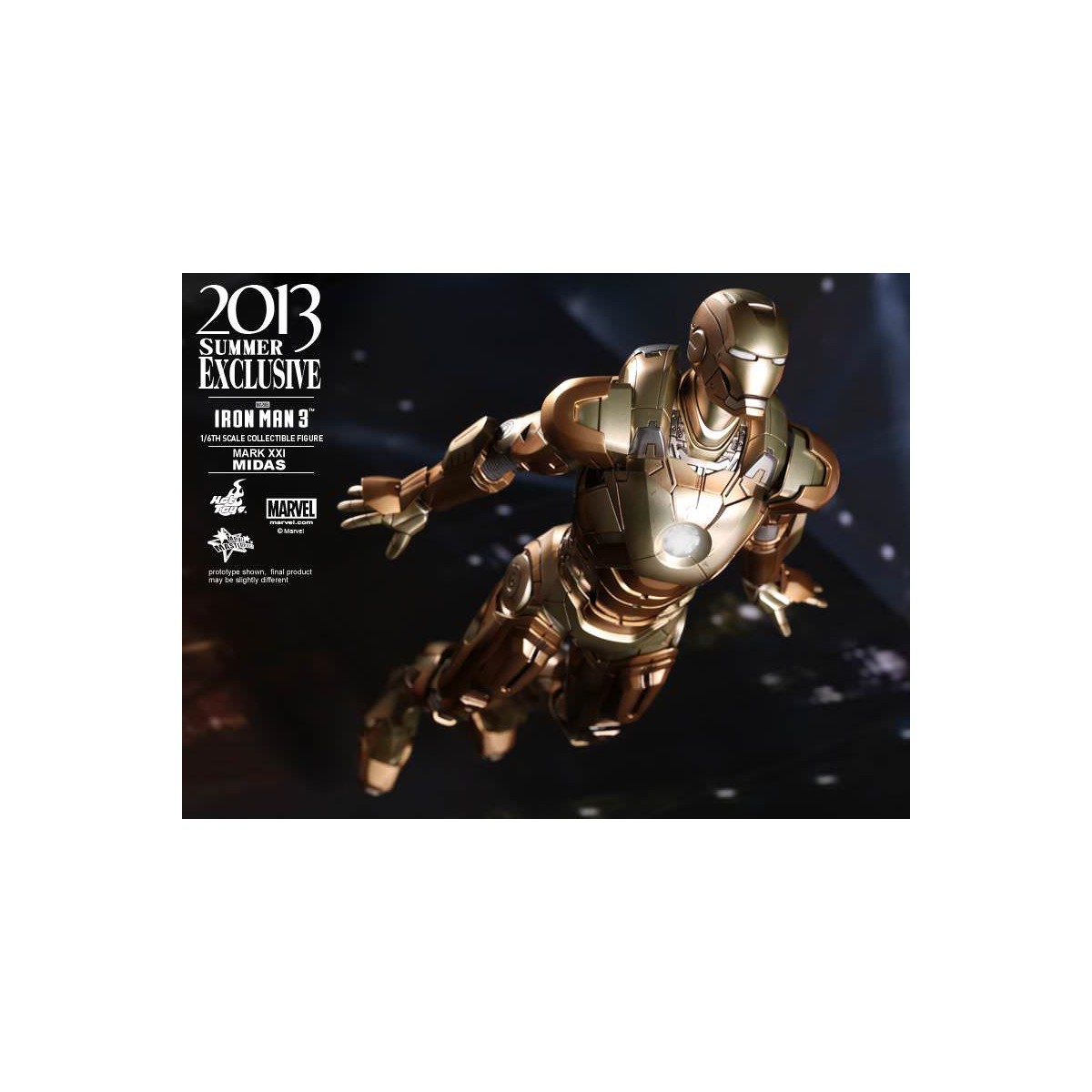 – Authentic likeness of Midas (Mark XXI), the high-altitude suit, in Iron Man 3