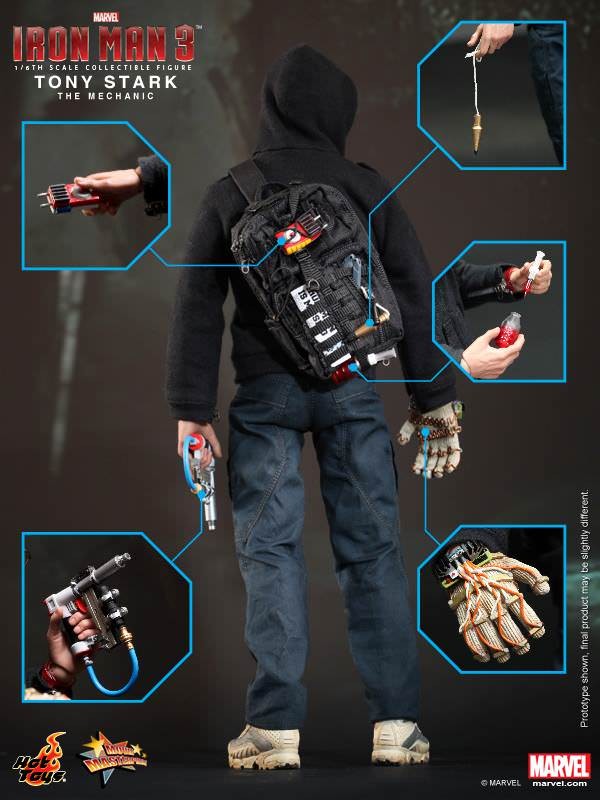Hot Toys is thrilled to introduce the Tony Stark (The Mechanic) Collectible Figurine after the exciting scene where Tony Stark creates homemade weapons to infiltrate The Mandarin’s mansion.