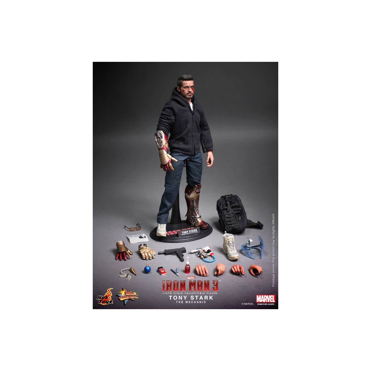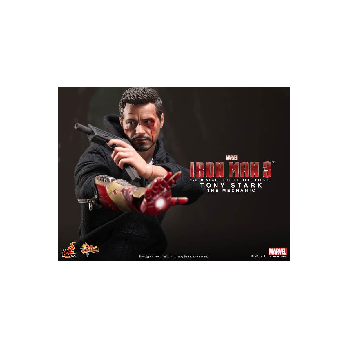 The movie-accurate Tony Stark (The Mechanic) Collectible Figurine is specially crafted based on the image of Robert Downey Jr. as the genius billionaire Tony Stark in his battle damaged civilian attire in the movie, highlighting the newly developed head sculpt, an advanced body with light-up chest light and greatly detailed weapons and accessories.