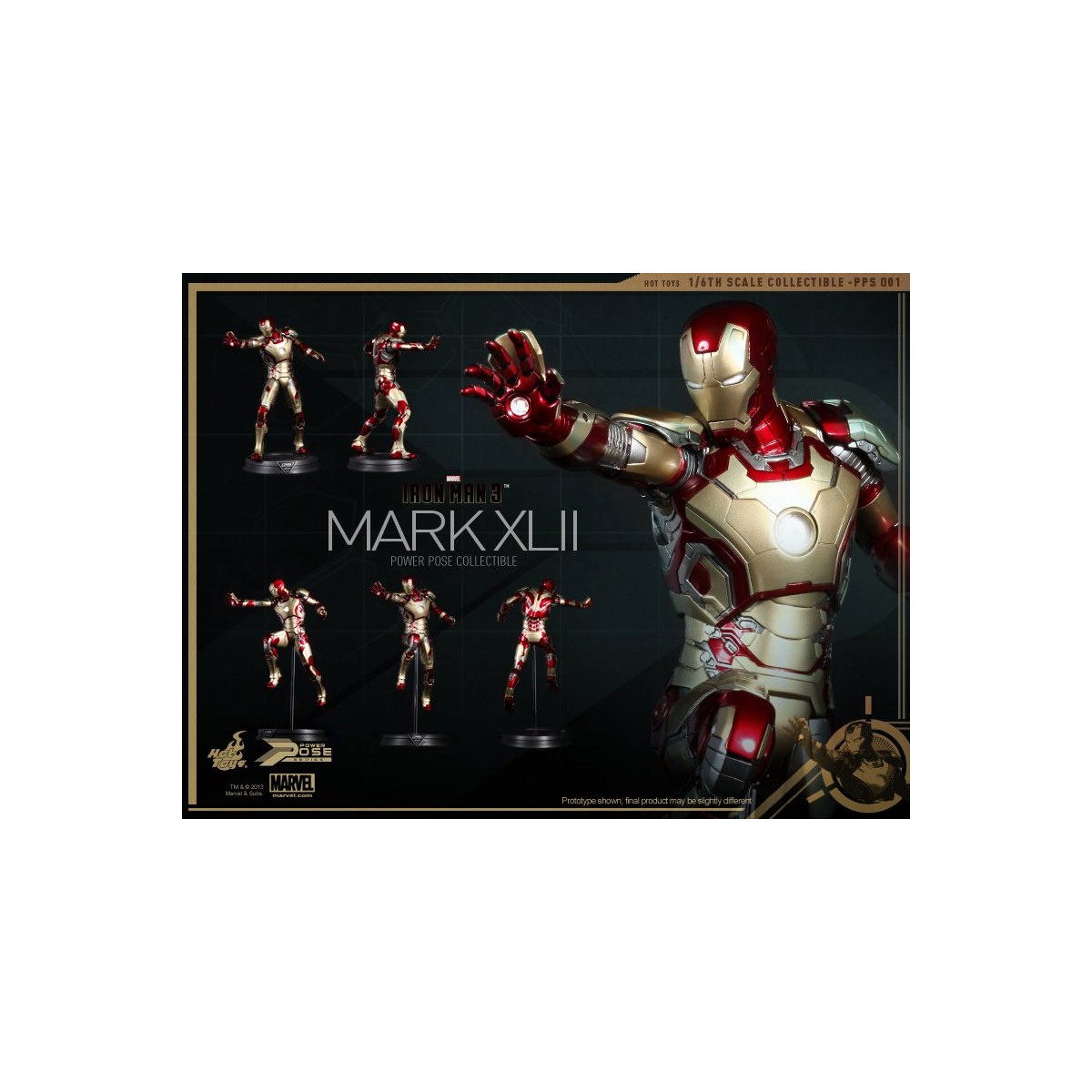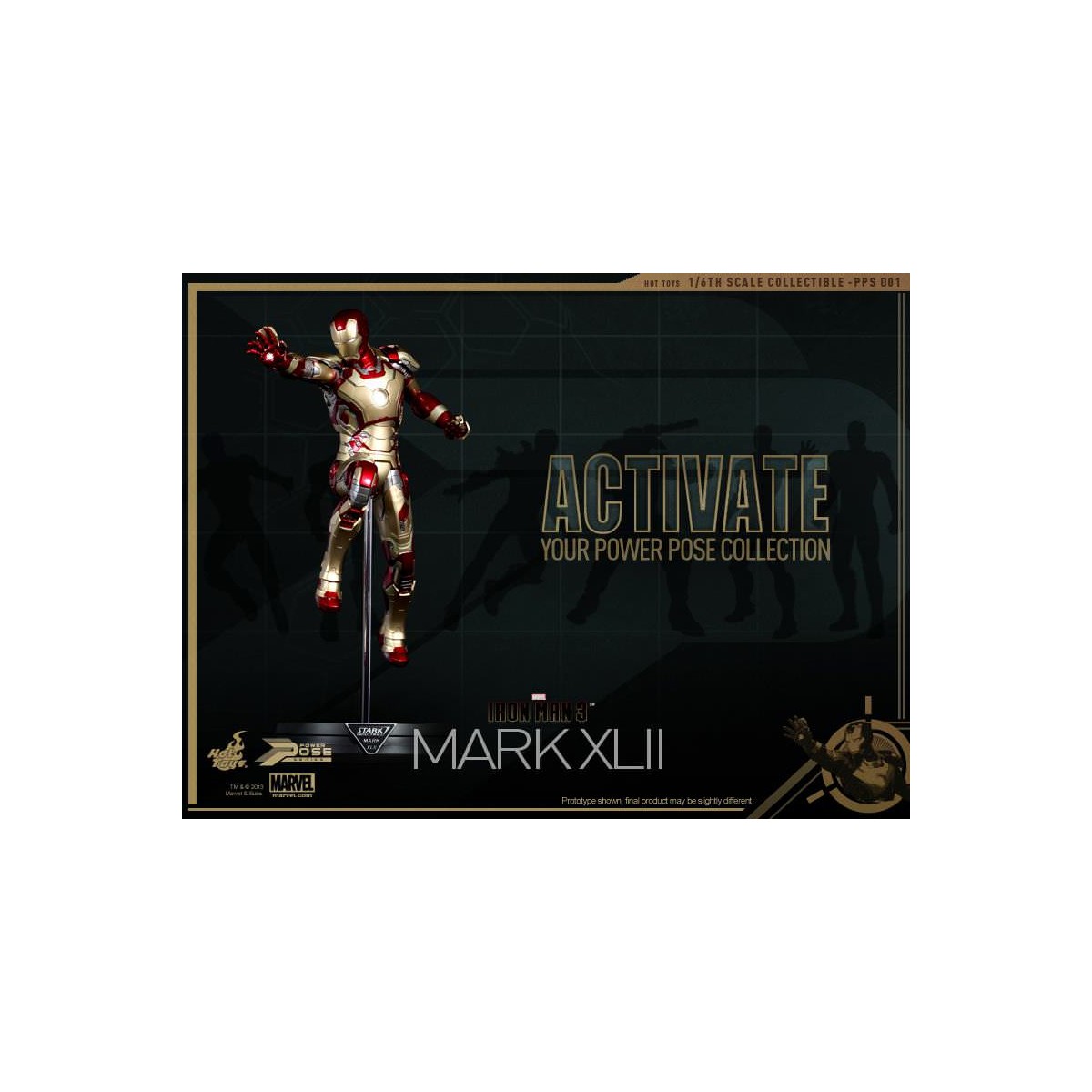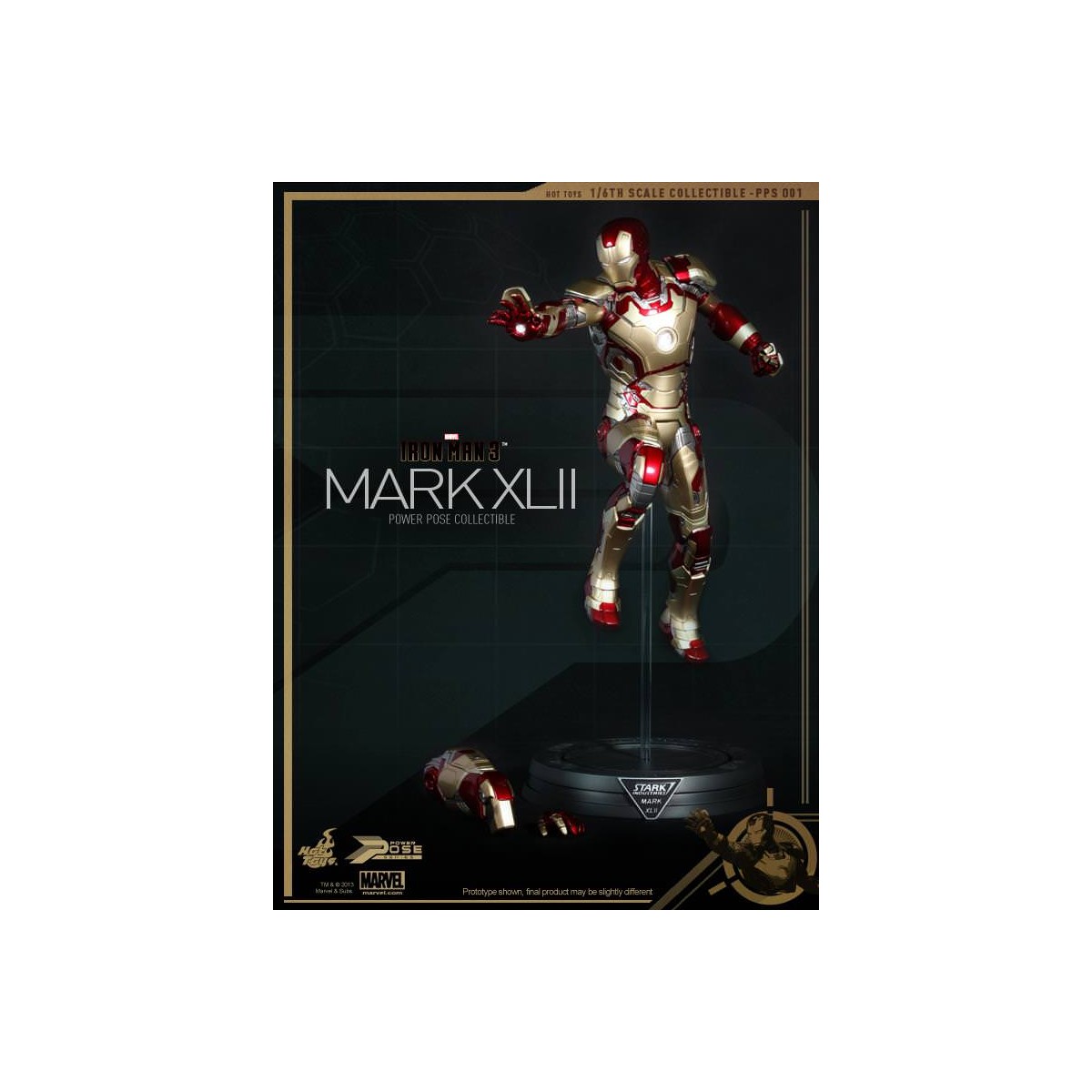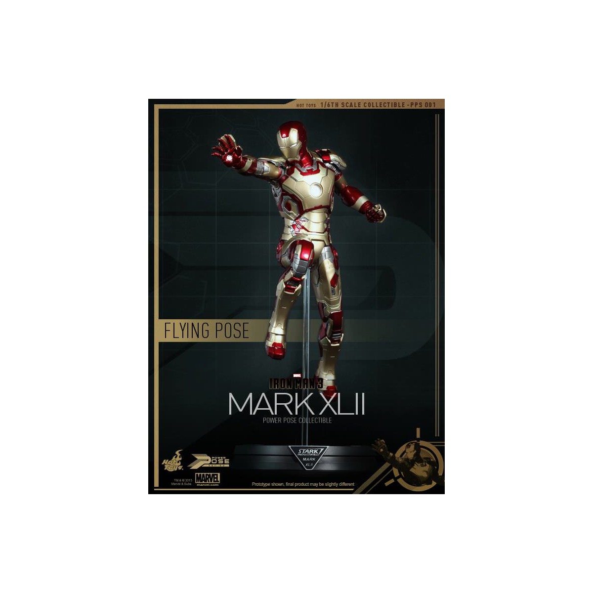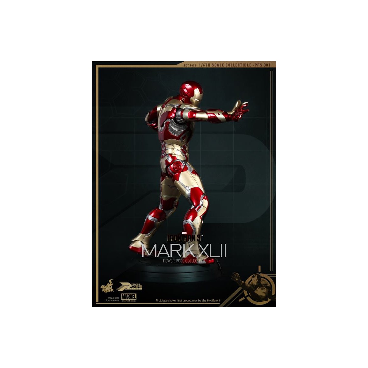Leading the Series is the highly anticipated 1/6th scale Power Pose Mark XLII Collectible Figurine which is semi-articulated, featuring the flying and battle poses, ability to perform waist and neck twist actions closed to that in the movie, LED light-up functions and figure stand with Mark XLII and the Stark Industries nameplate.