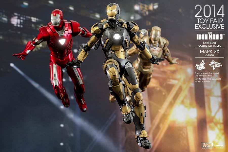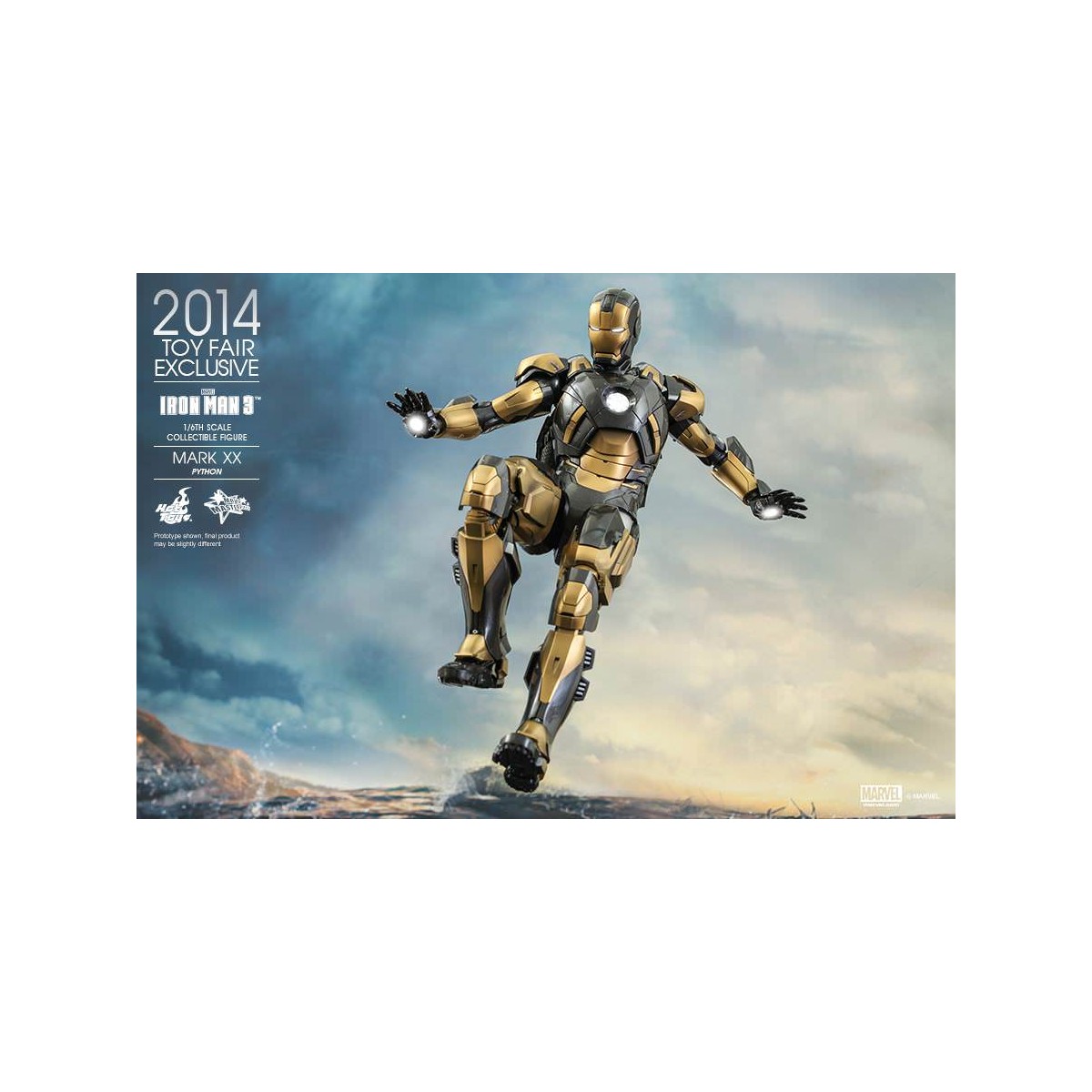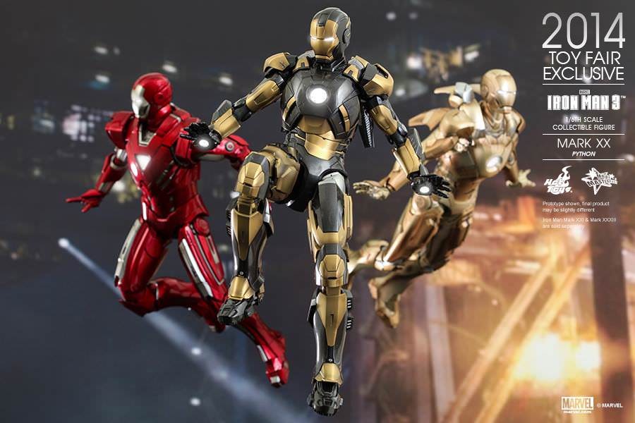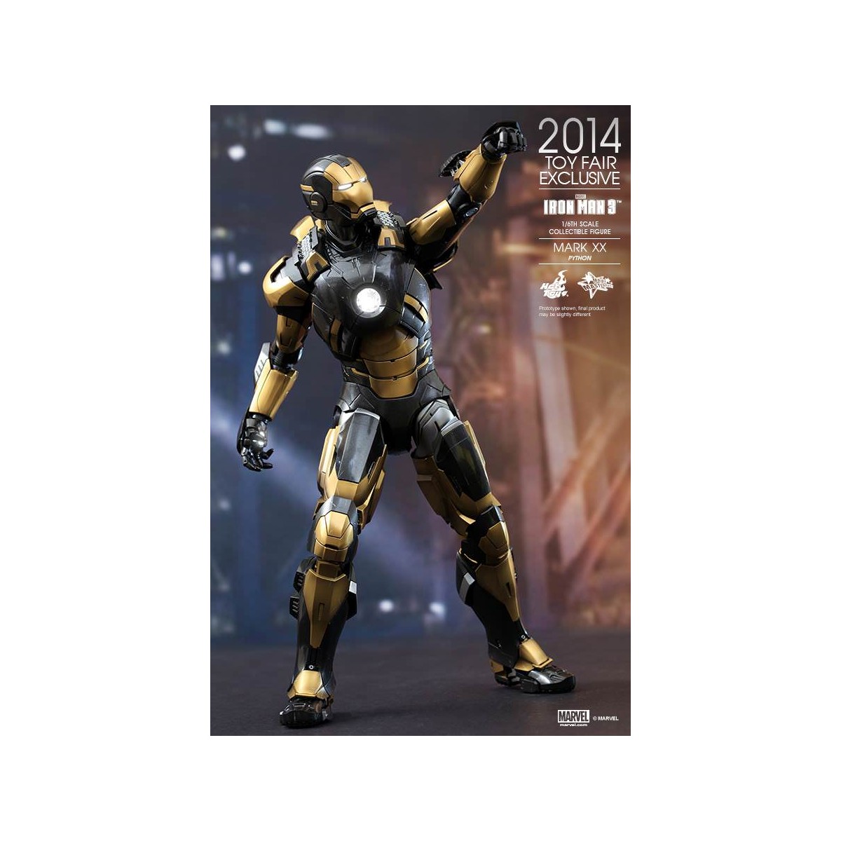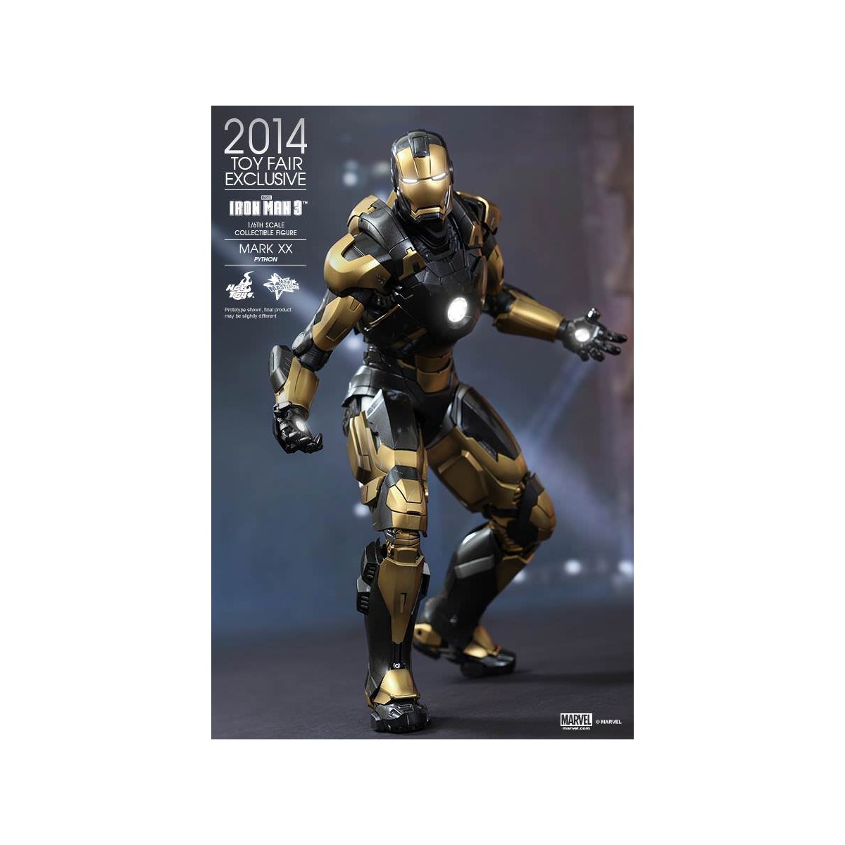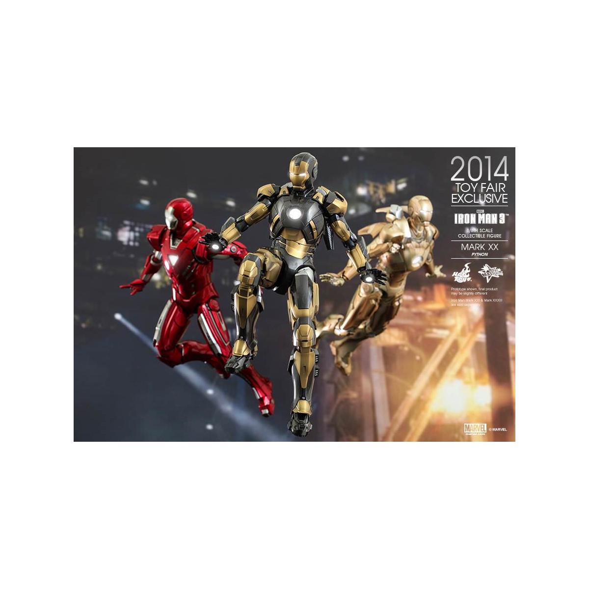 Hot Toys is happy to present the 1/6th scale Python (Mark XX) Collectible Figure, the Long Distance suit from the Iron Legion, as one of the 2014 Toy Fair Exclusive items. It features specially painted black and gold colored armor, LED light-up functions, interchangeable parts, and figure stand with flexible pillar for dynamic posing.