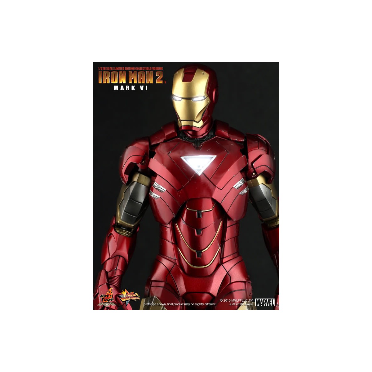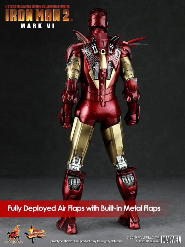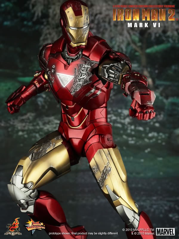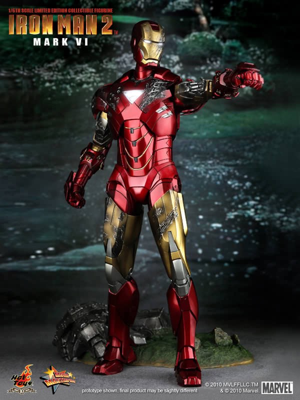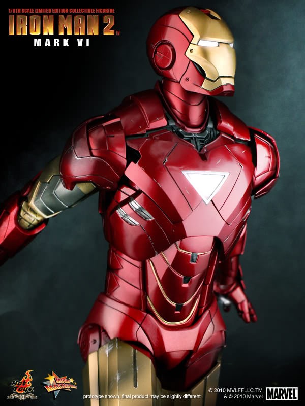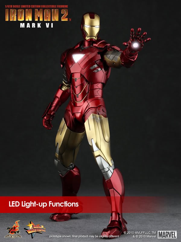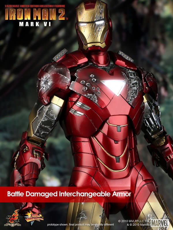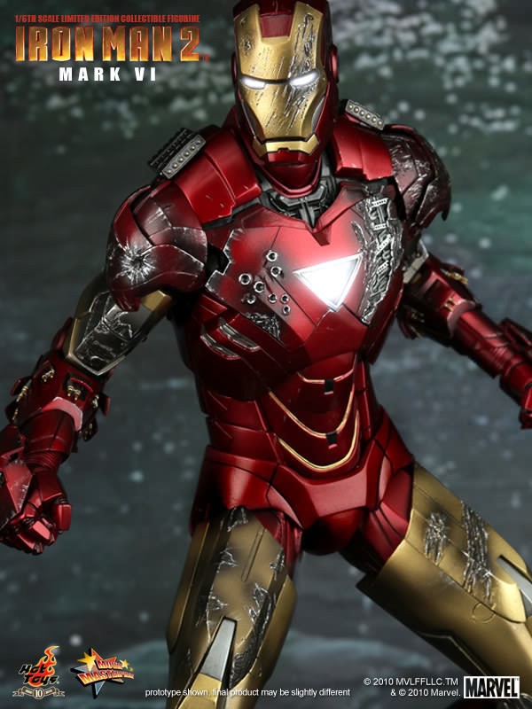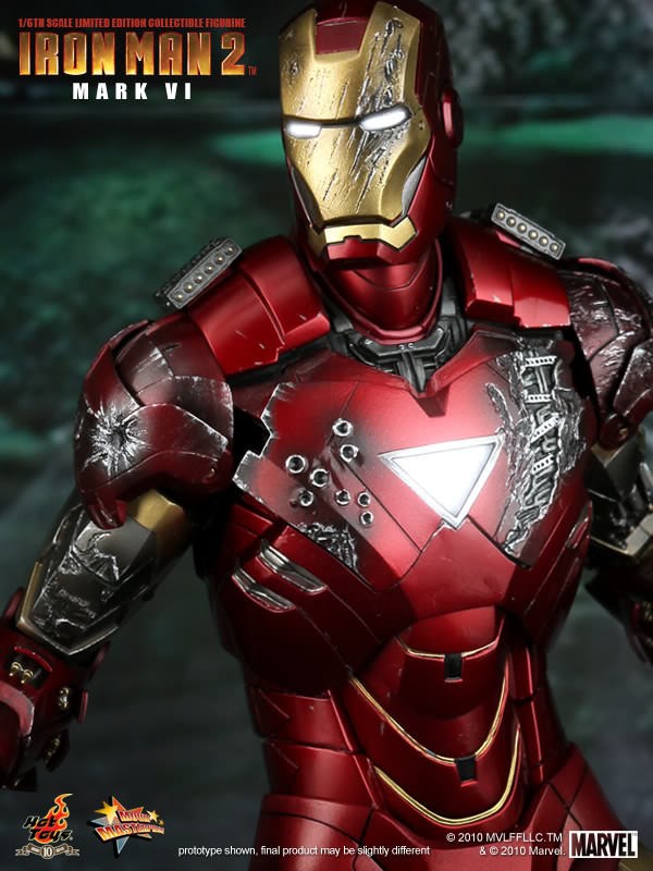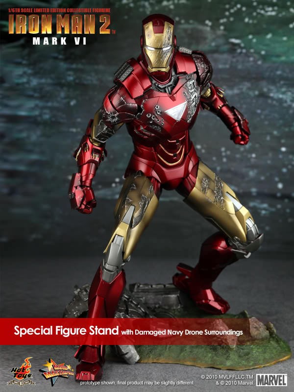 Hot Toys is proud to present the 1/6th scale Mark VI Limited Edition Collectible Figurine from the Iron Man 2 movie. The movie-accurate Mark VI collectible is highly detailed and fully deployed, specially crafted based on the image of Robert Downey Jr. as the iconic character Mark VI in the movie.