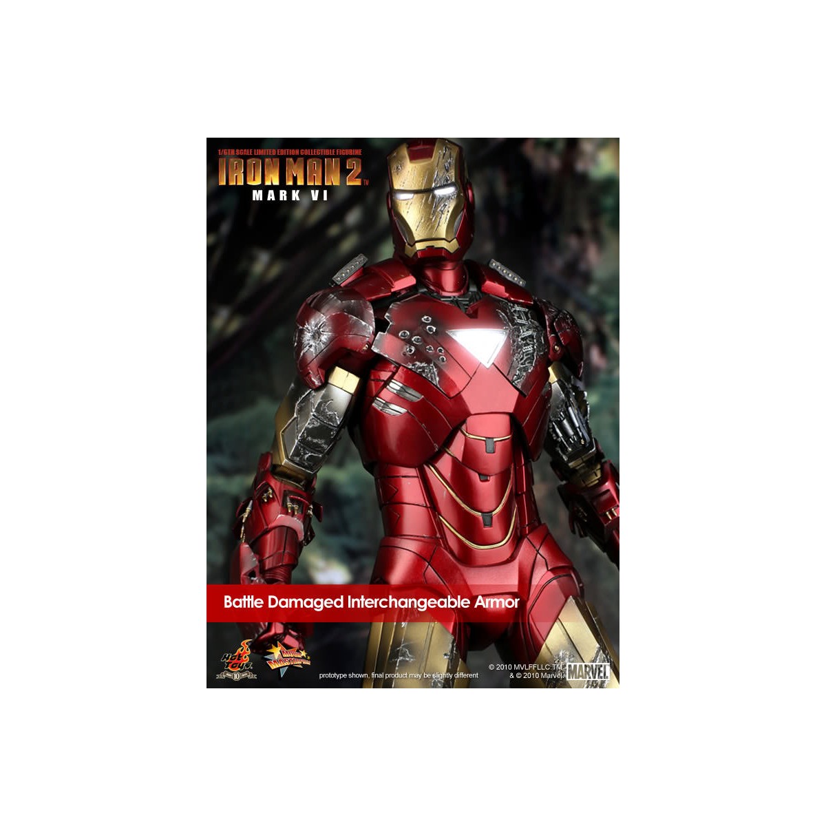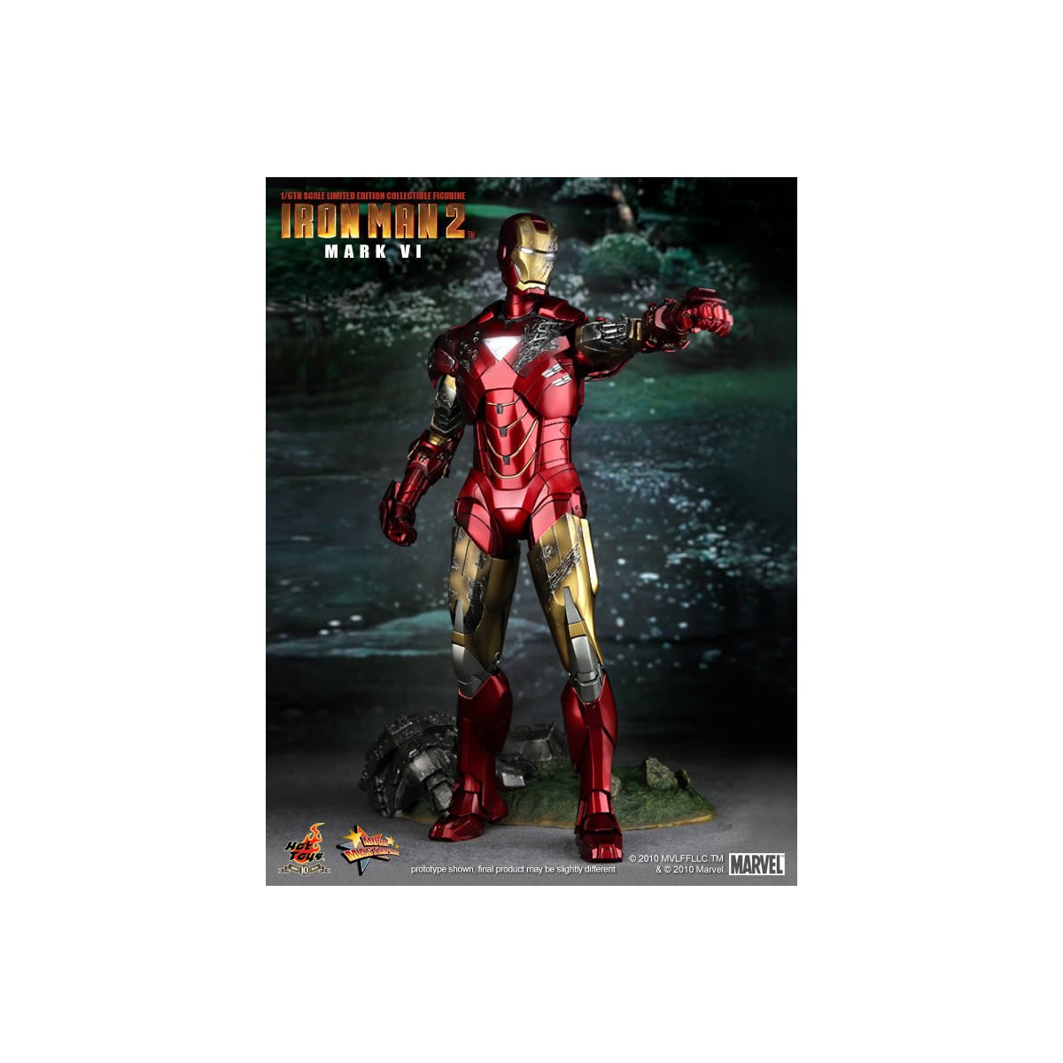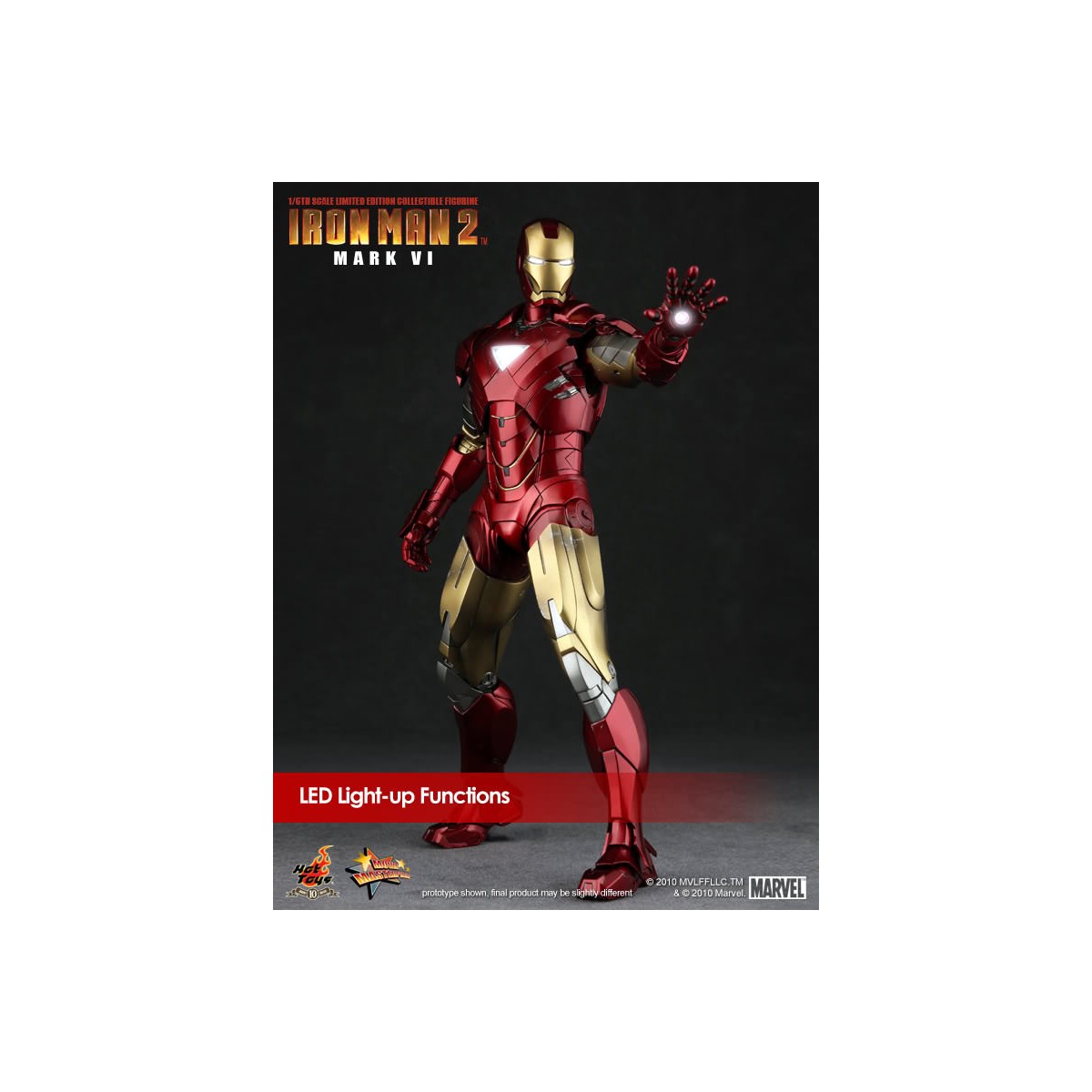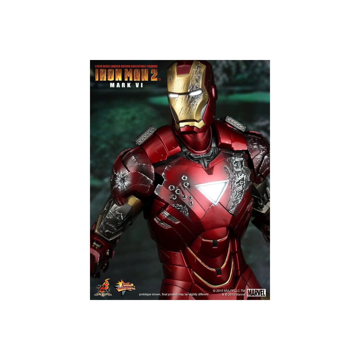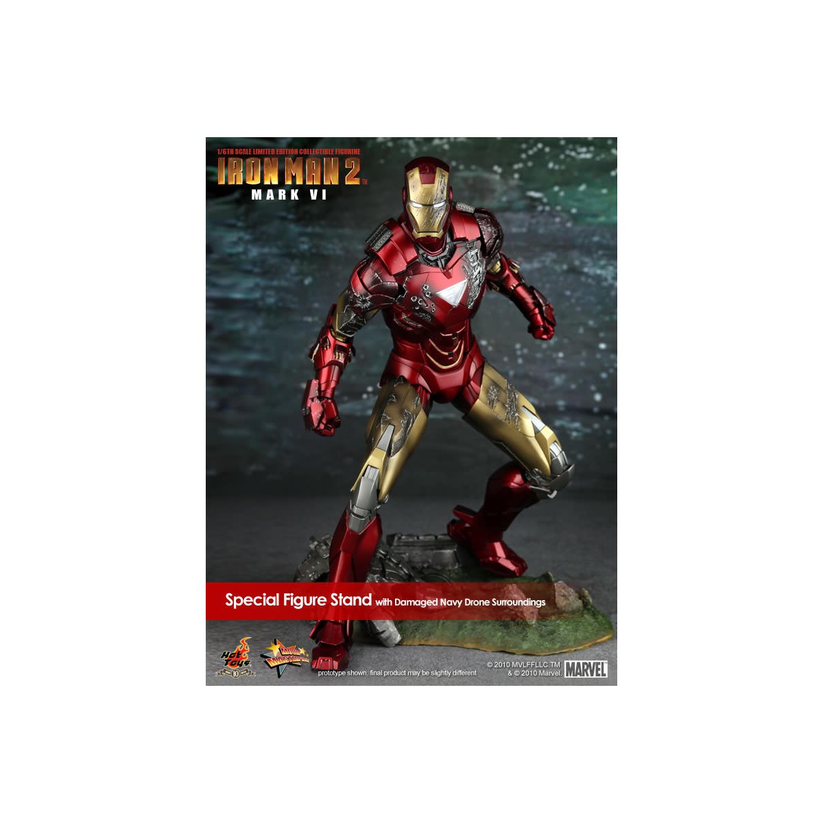 Hot Toys is proud to present the 1/6th scale Mark VI Limited Edition Collectible Figurine from the Iron Man 2 movie. The movie-accurate Mark VI collectible is highly detailed and fully deployed, specially crafted based on the image of Robert Downey Jr. as the iconic character Mark VI in the movie.