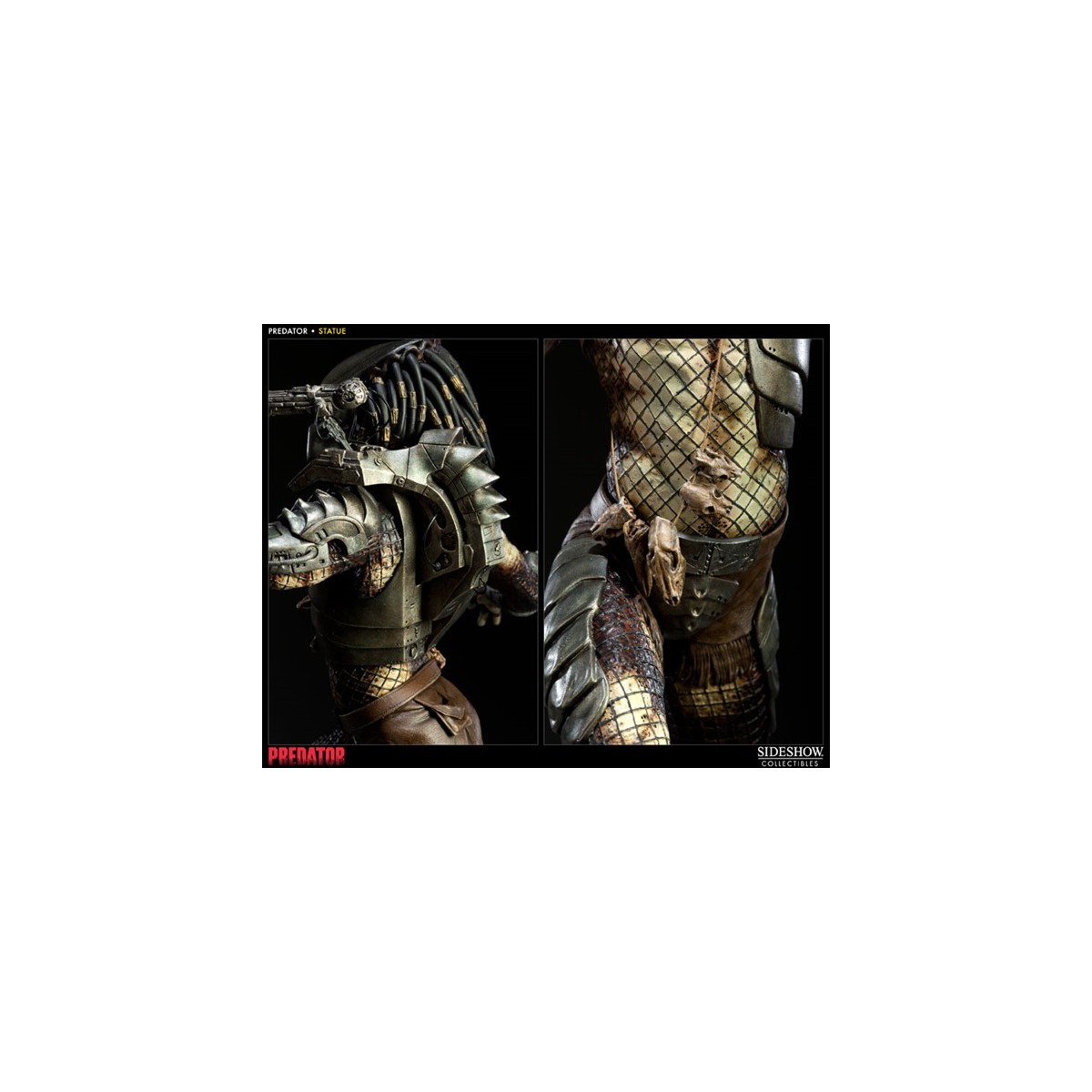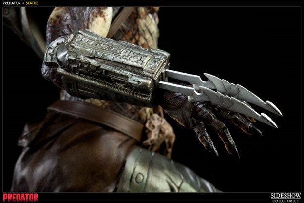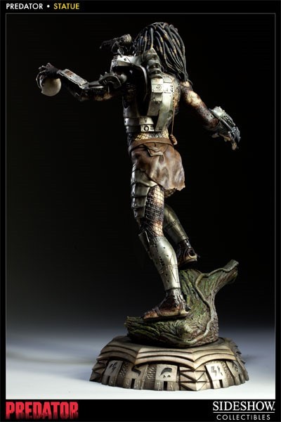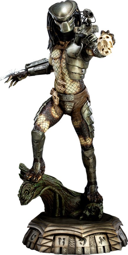 Joining Sideshow's show-stopping line of Predator collectibles is the Predator Statue, commemorating the first glimpse of the fearsome hunter from the classic 1987 film. Each piece measures approximately 20 inches tall and is individually painted and finished, each with its own unique quality and detail that is the trademark of a handcrafted Sideshow Collectibles product. Presented here in approximately 1:5 scale, featuring the signature Plasma Cannon and a human skull accessory, the Predator Statue is the perfect addition to any Predator legacy display.