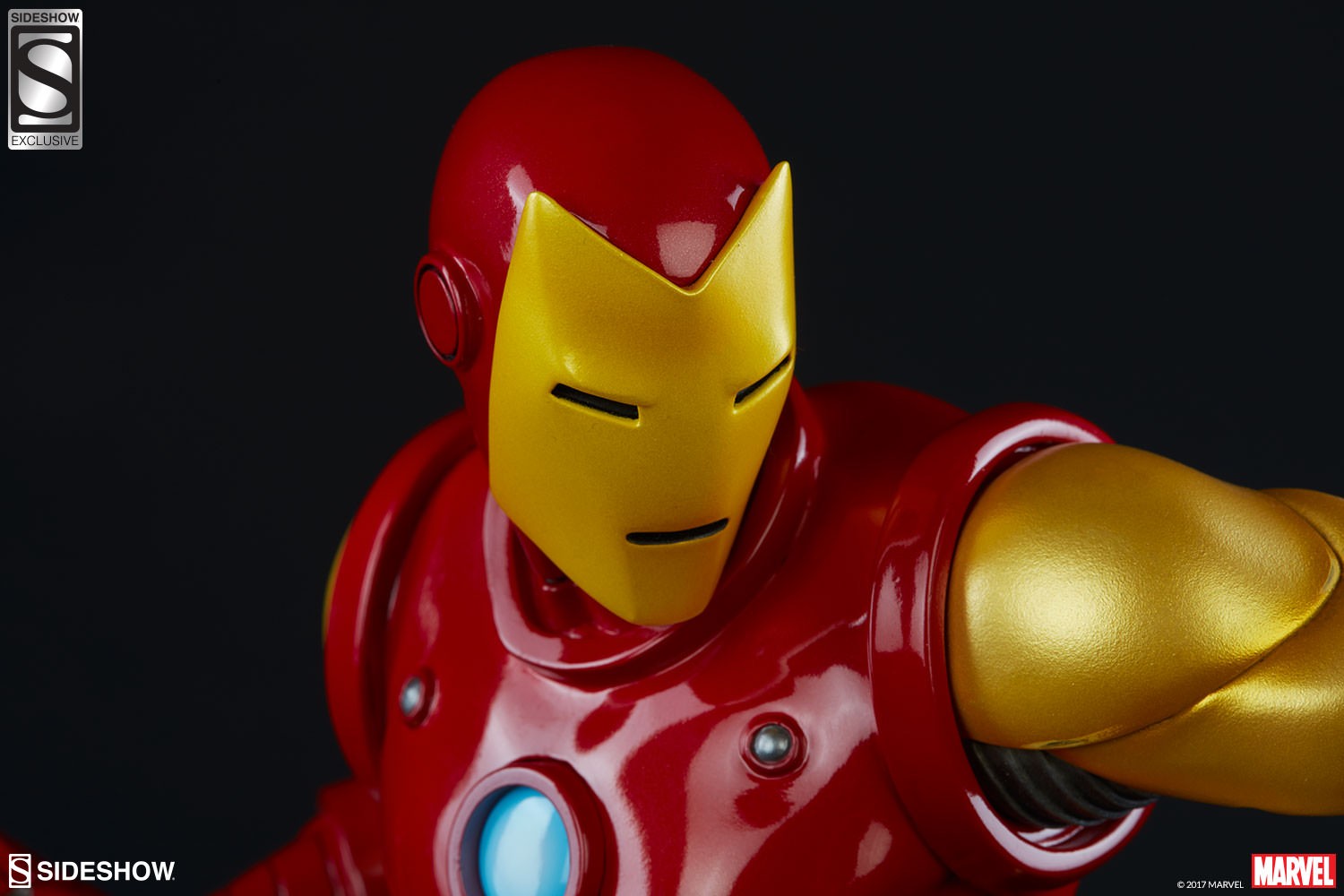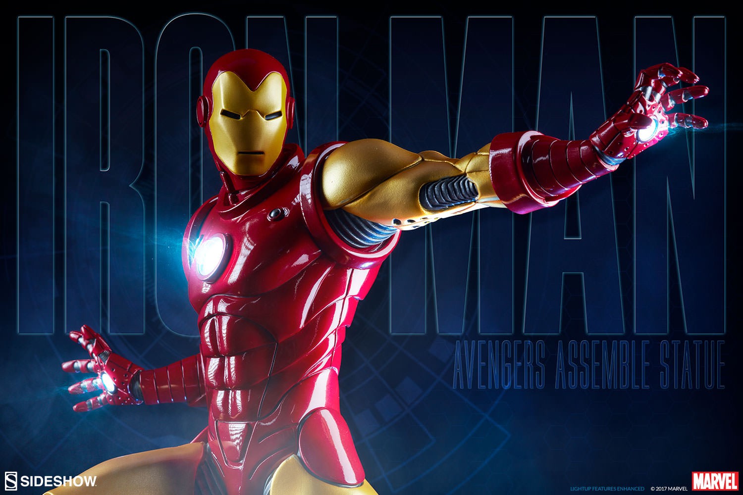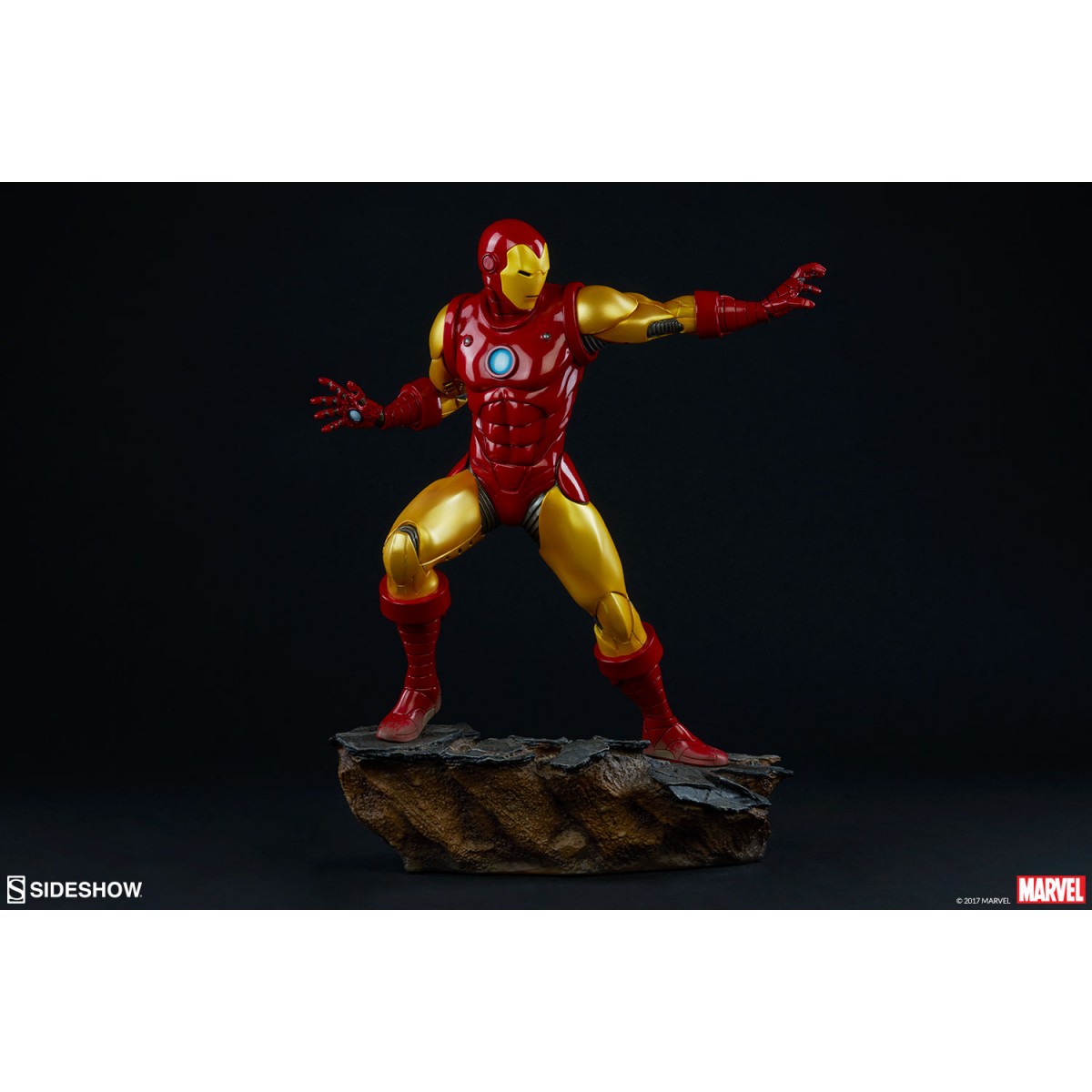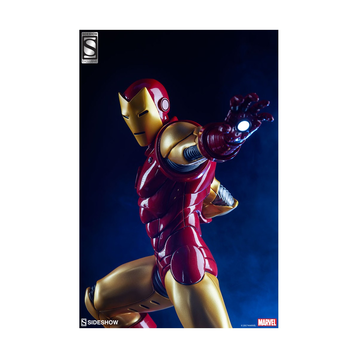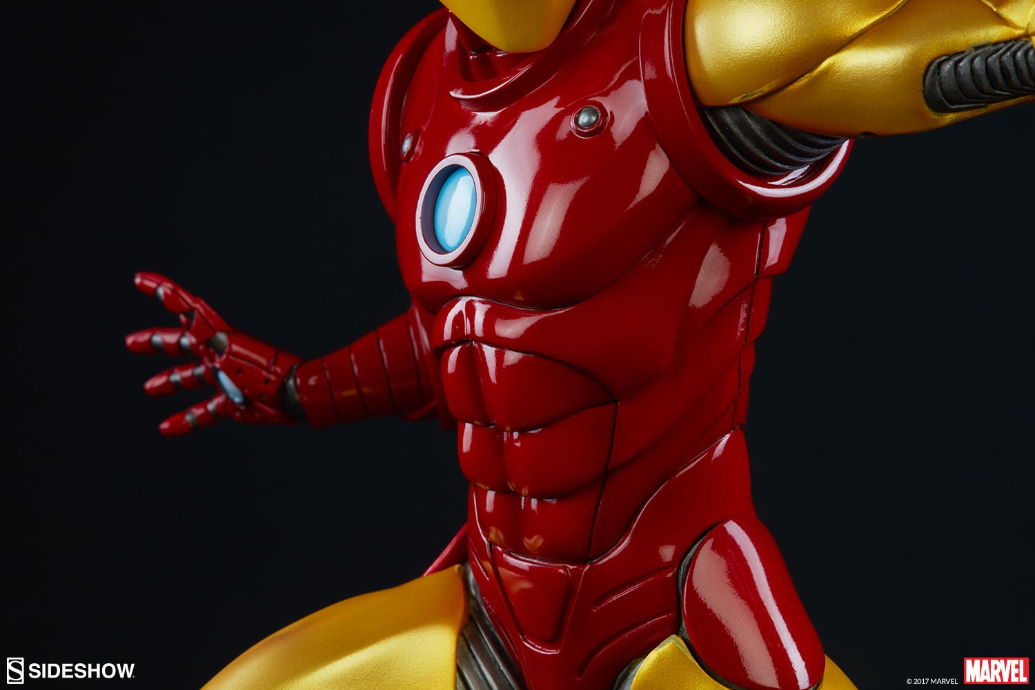Depicting the now instantly recognizable armor and standing at 15.75” tall, this 1:5 scale statue features light up hands and chest and is crafted out of resin. The Sideshow Exclusive variation includes the classic Iron Man portrait as a swap-out option.