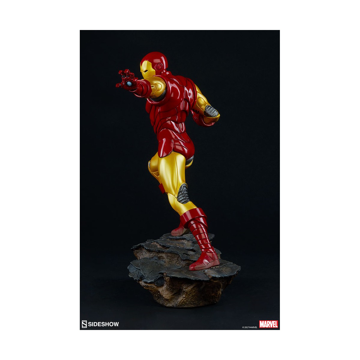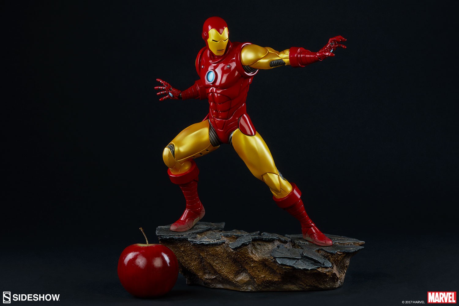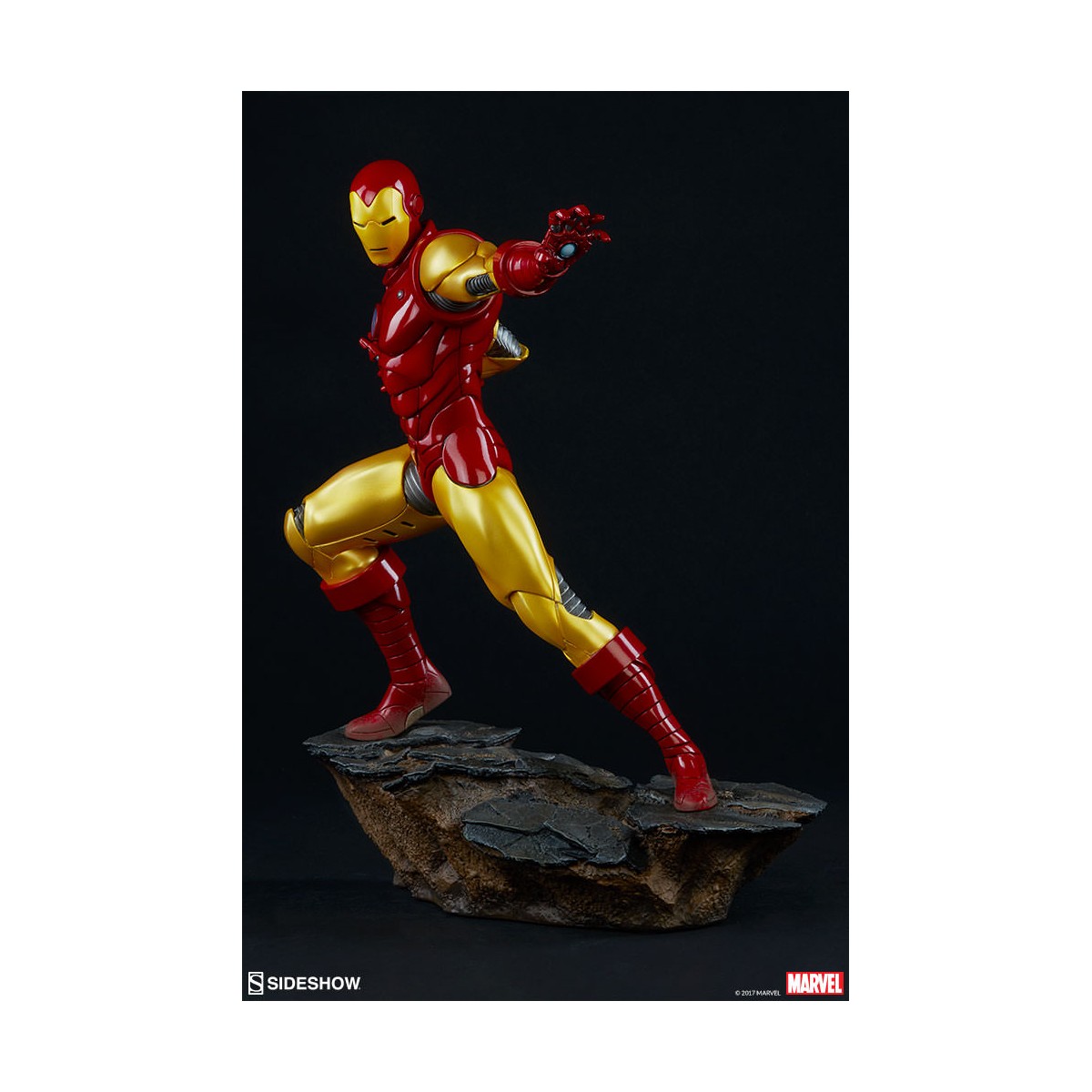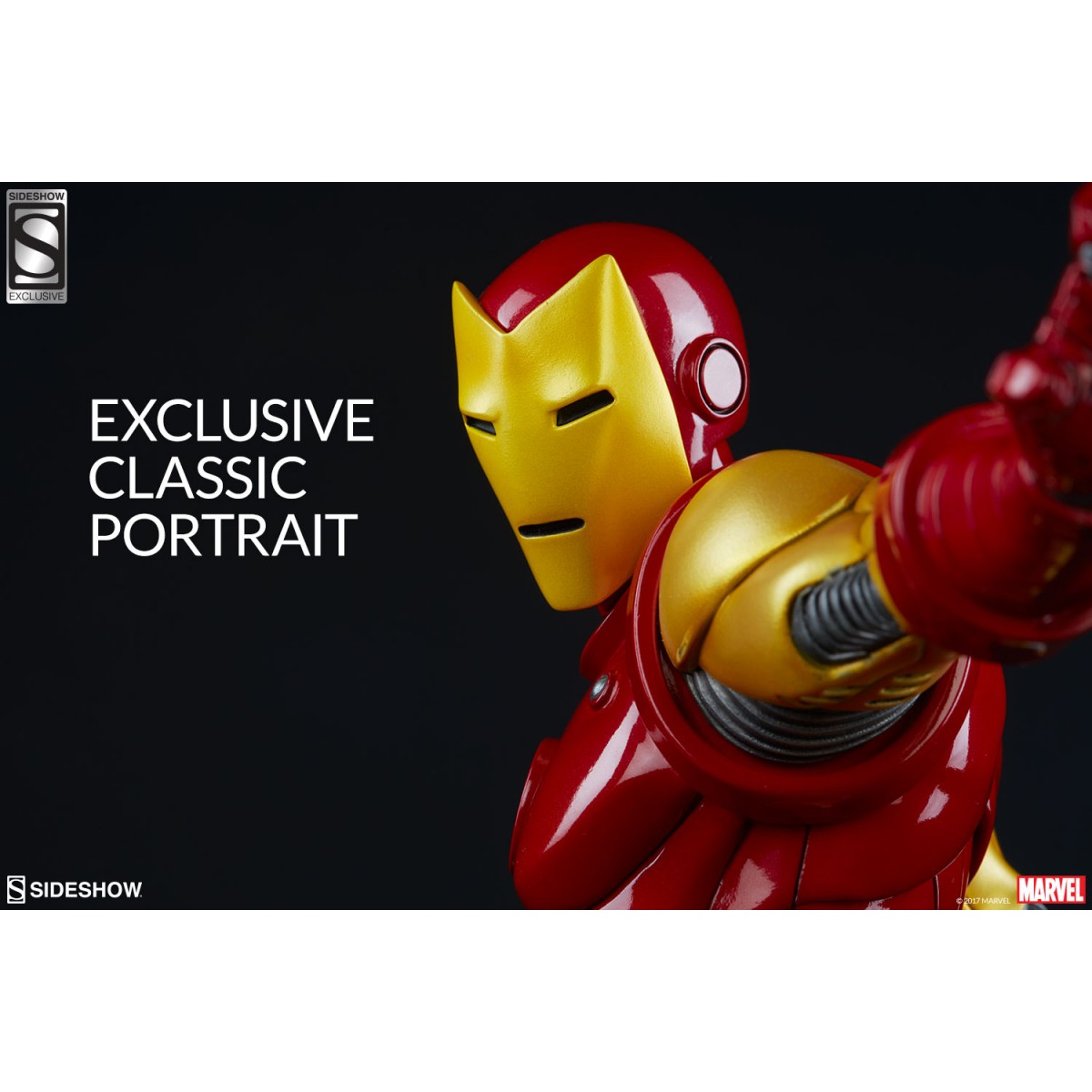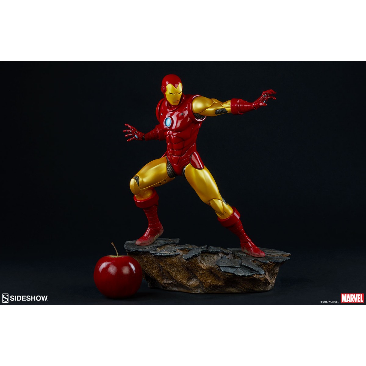 Depicting the now instantly recognizable armor and standing at 15.75” tall, this 1:5 scale statue features light up hands and chest and is crafted out of resin. The Sideshow Exclusive variation includes the classic Iron Man portrait as a swap-out option.