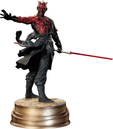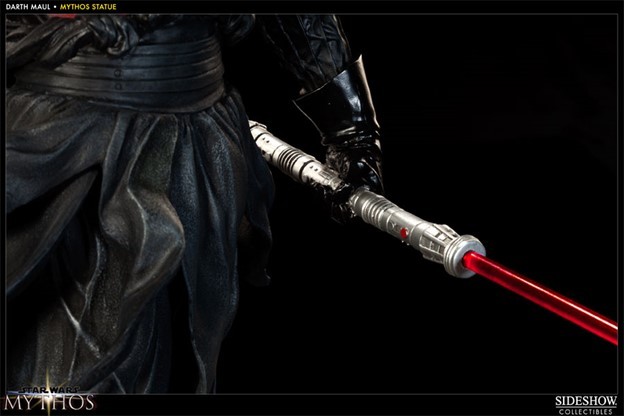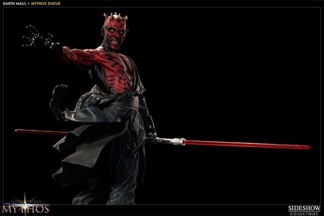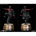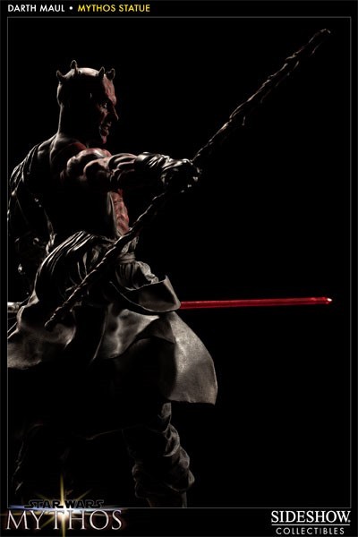 Sideshow Collectibles is proud to announce the Darth Maul Mythos Statue. Inspired by the Star Wars Tale 'Nameless', the powerful Sith is envisioned in a strong, almost meditative pose; incorporating design elements reminiscent of a Ronin warrior. Crafted in 1:5 scale with Sideshow's trademark attention to detail, the Darth Maul Mythos statue stands over 18 inches tall; a distinctive addition to any collection.