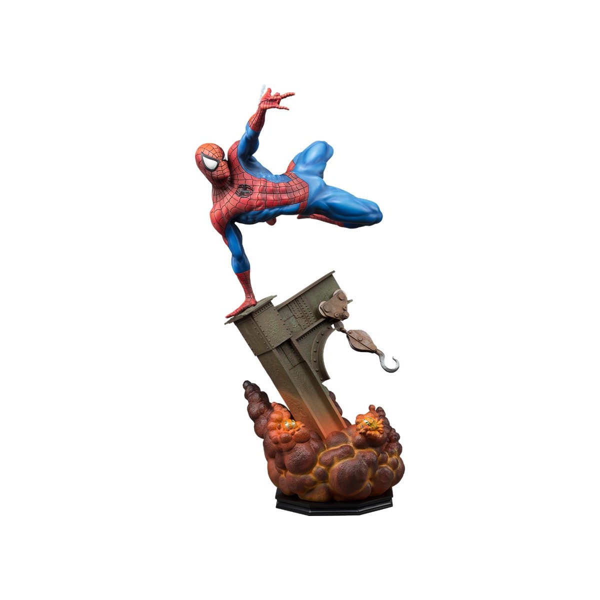 There’s never a dull moment for Peter Parker when he puts on his iconic red and blue costume to become the Amazing Spider-Man! Everyone’s favorite high-flying, wise-cracking web-head is at it again – out to save the day in this fantastically sculpted gravity-defying composition. Captured just moments away from certain doom, the acrobatic hero effortlessly launches himself above Green Goblin’s explosive pumpkin bombs and out of harm’s way. Featuring two expressive swap out portraits, you can see his Spidey senses tingling as the sharp-eyed web-slinger locates his next target and takes aim. A stunning tribute to his action-packed comic book legacy, this is the ultimate must-have for fans of Spider-Man!