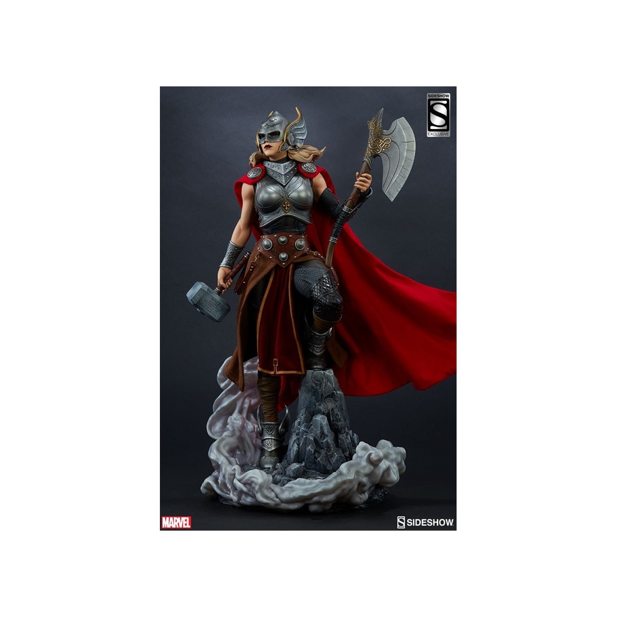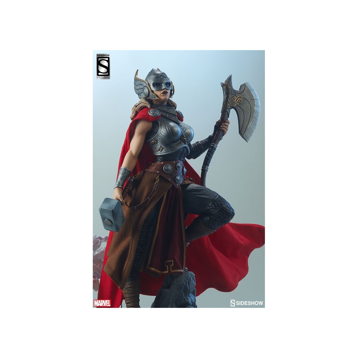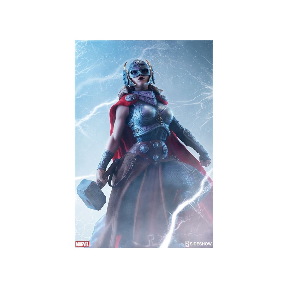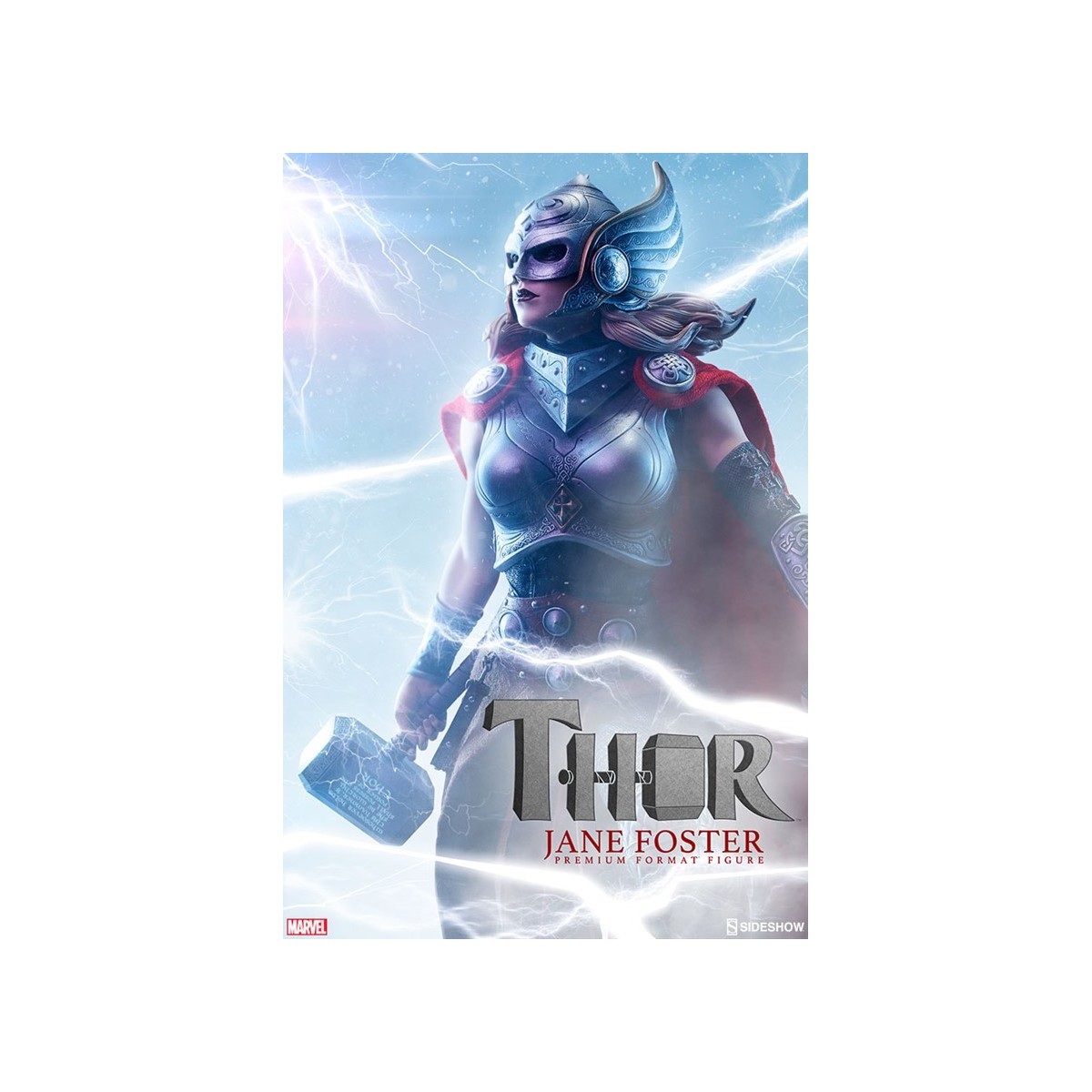 This new Thor: Jane Foster Premium Format™ Figure is an excellent representation of everything our fans have come to expect from our Premium Format™ sculptures. Combining highly detailed sculpts, dynamic composition, beautiful painting, and expertly tailored fabric elements to make museum-quality collectibles that are sure to be the proud centerpiece of any collection.