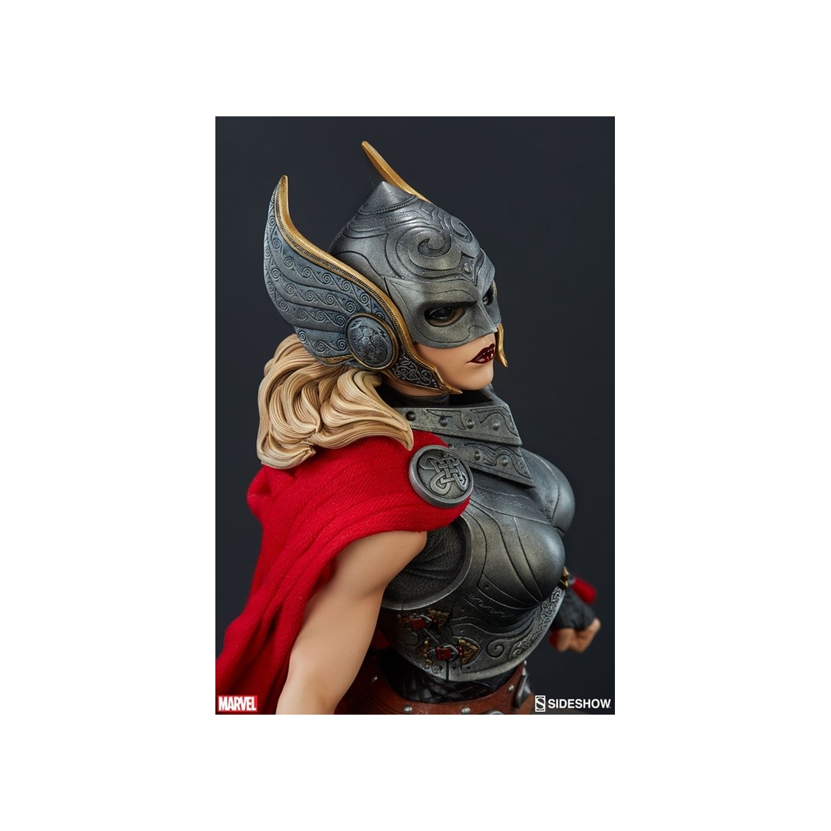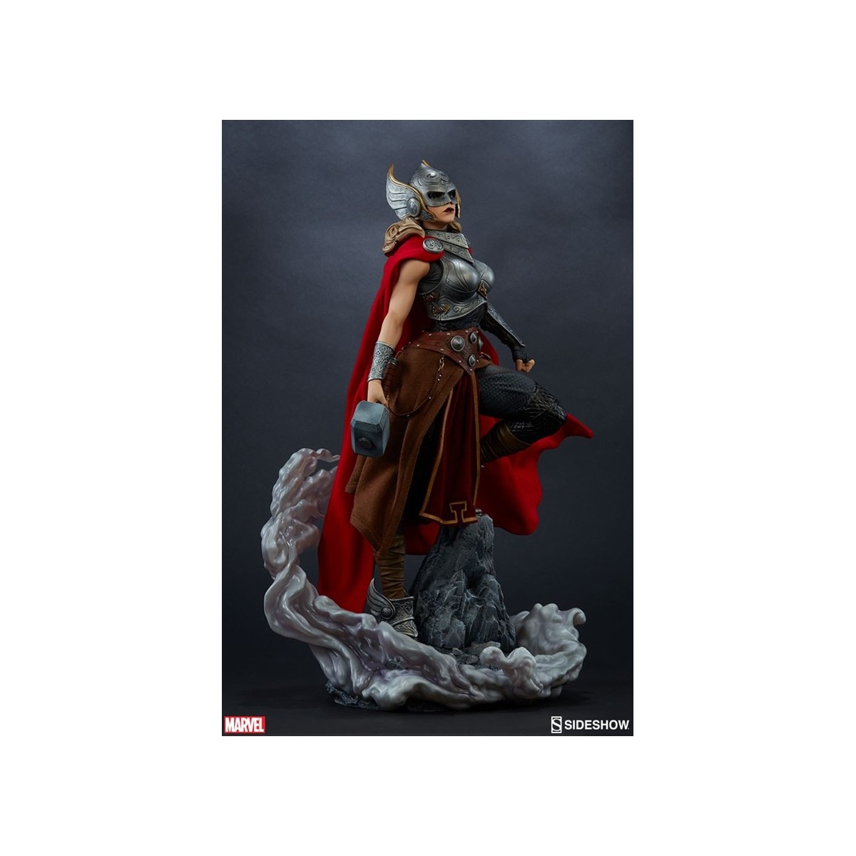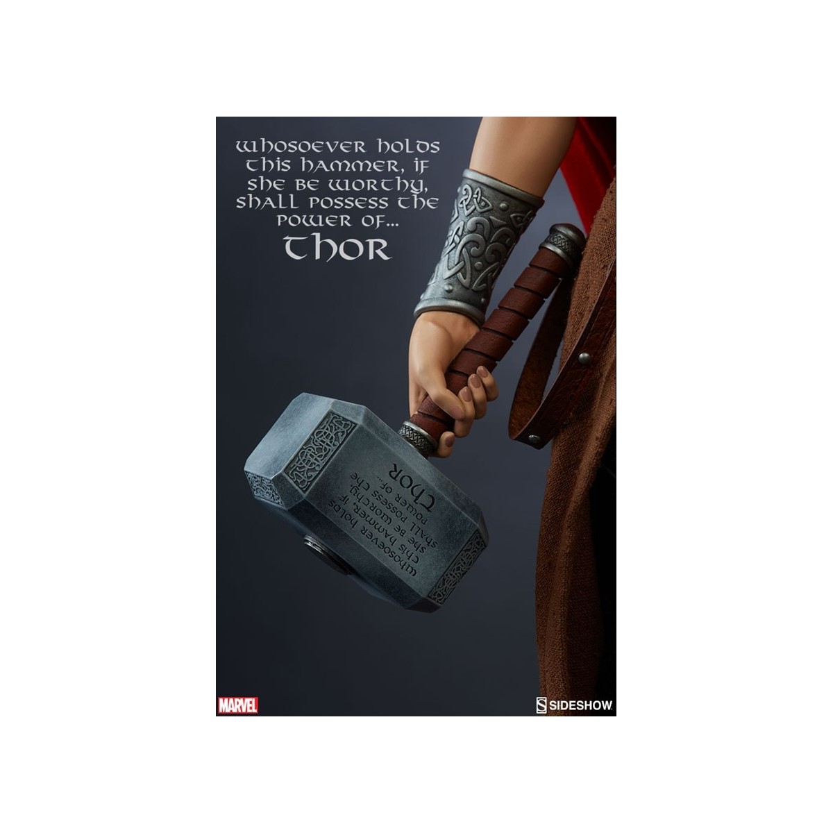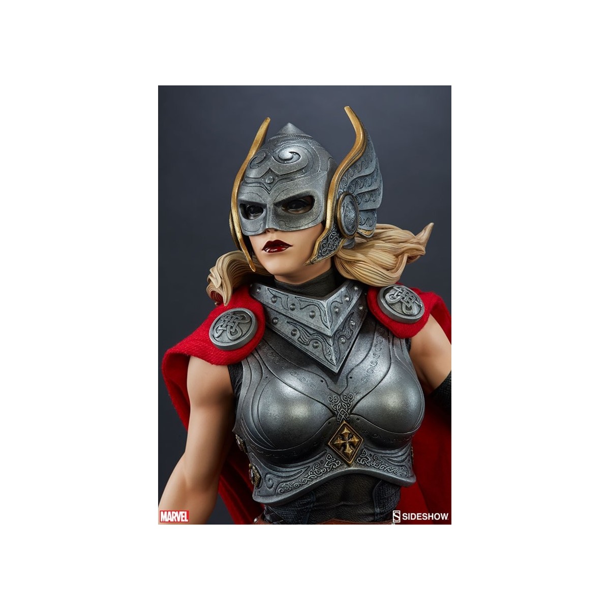 This new Thor: Jane Foster Premium Format™ Figure is an excellent representation of everything our fans have come to expect from our Premium Format™ sculptures. Combining highly detailed sculpts, dynamic composition, beautiful painting, and expertly tailored fabric elements to make museum-quality collectibles that are sure to be the proud centerpiece of any collection.