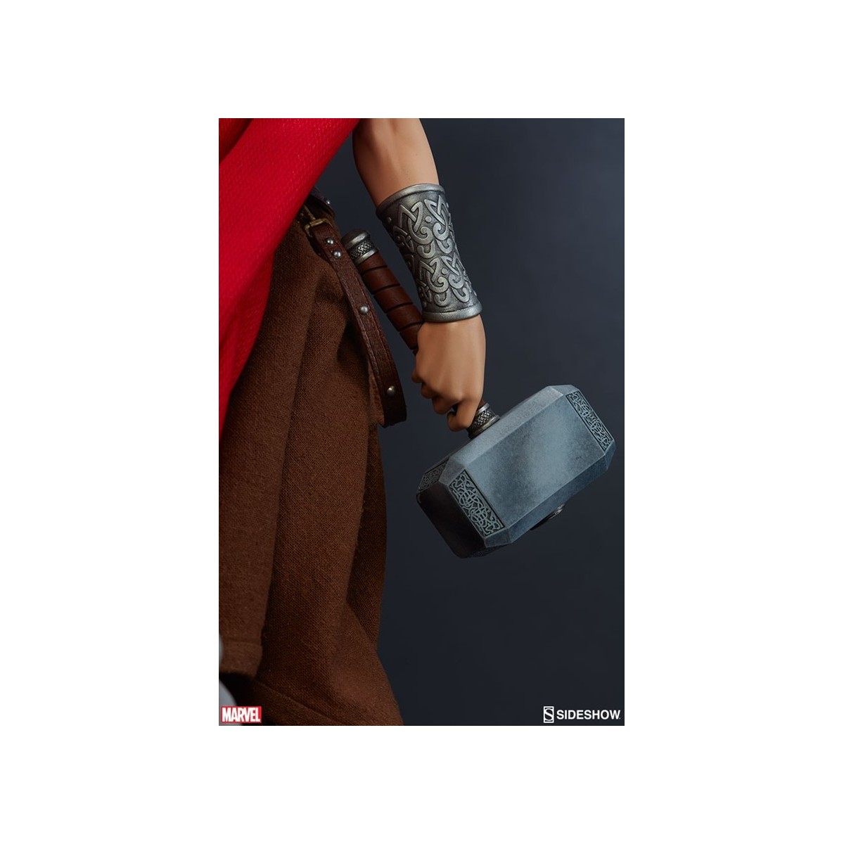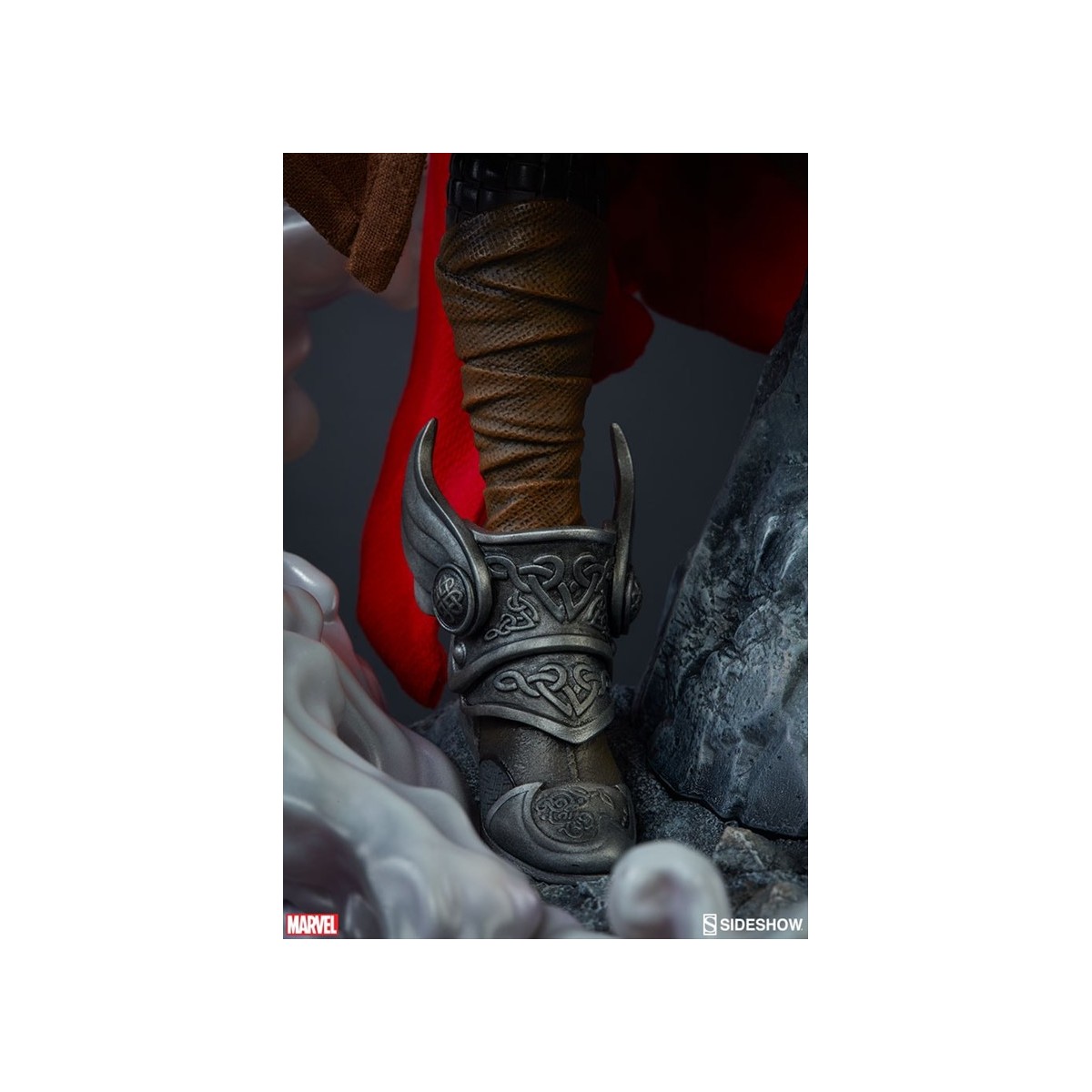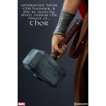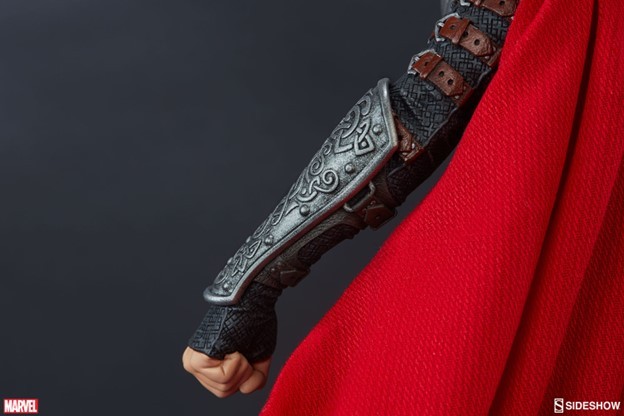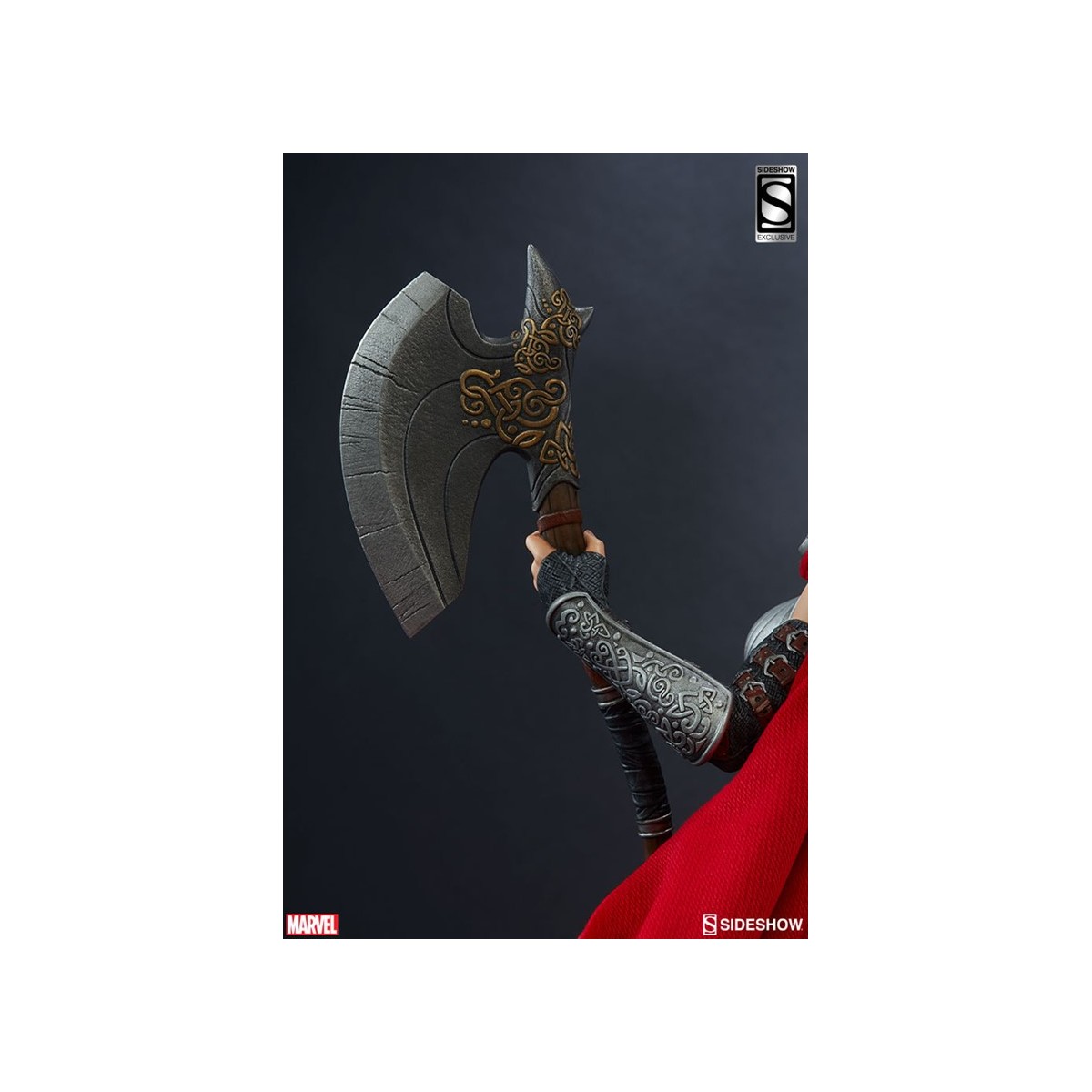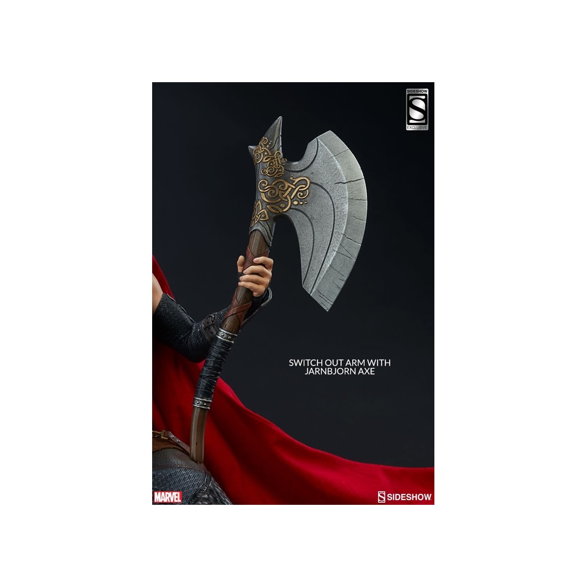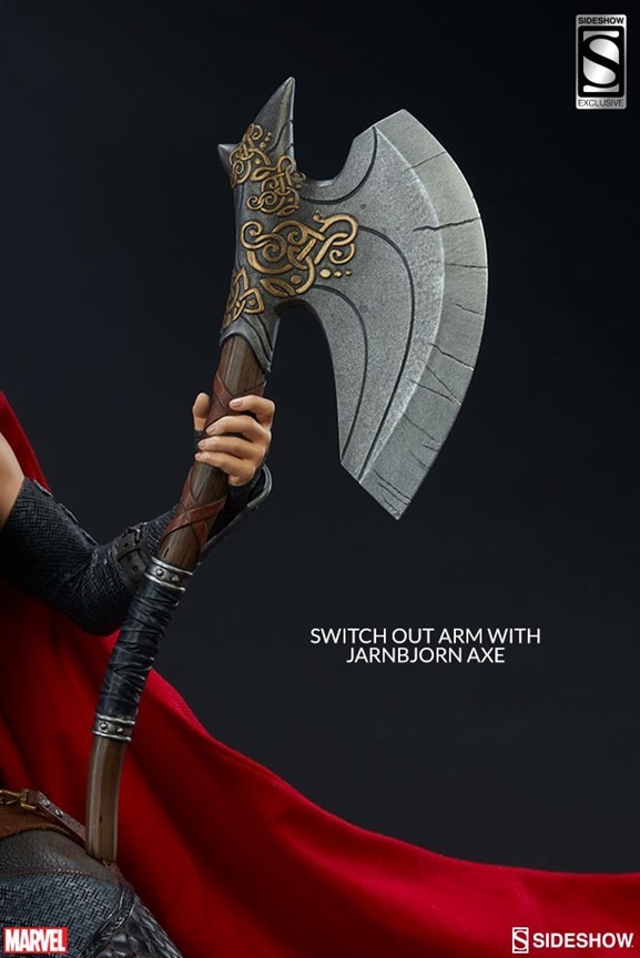 The Sideshow Exclusive variant features an alternative swap-out left arm and hand holding Jarnbjorn, the Dwarven forged Battle Axe of Thor.
