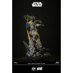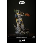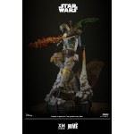 XM Studios is proud to present their first Star Wars Premium Collectible Statue, Boba Fett! With a reputation as the galaxy’s deadliest bounty hunter, Boba Fett is brought to life in an incredibly detailed 1:4 scale cold-cast porcelain format. Each painstakingly handcrafted statue stands at approximately 64.5 cm tall and every piece individually hand-painted with the highest possible finish. Featuring a dynamic action pose utilizing his jetpack to engage his targets, the innovative display options also include access to his deadly arsenal of weapons; Pistol Blaster, Carbine rifle and Flame Thrower!